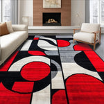 Sophia Collection Hand Carved Rug Contemporary Abstract Red Black Grey(Red)