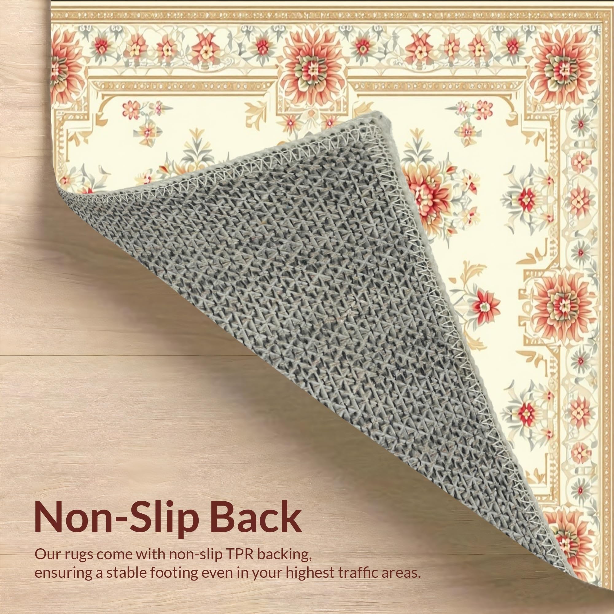 Ultra Soft Area Rug, Non Slip, Stain Resistant, Washable Area Rugs for Living Room, Bedroom, Sophisticated Area Beige and Cream Geometric Floral(Beige) Overview: