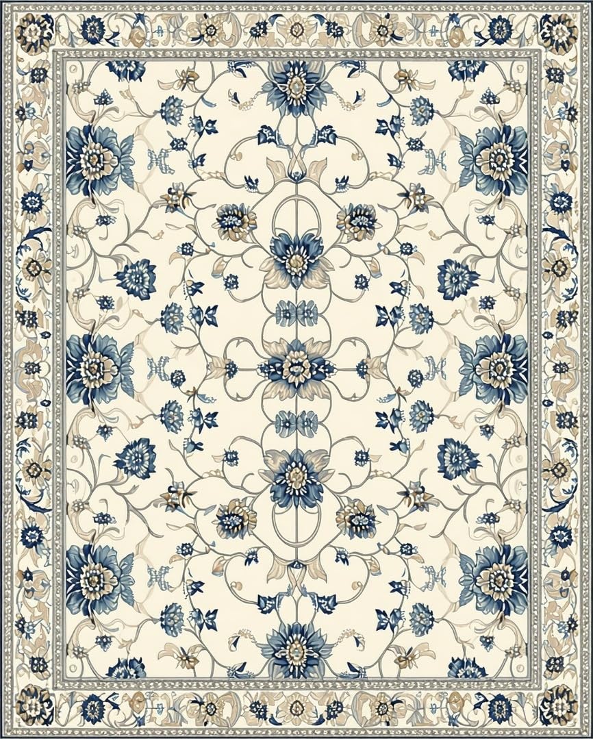 Sophisticated Area Featuring Elegant Beige and Blue Floral Designs(Beige)