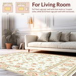 Ultra Soft Area Rug, Non Slip, Stain Resistant, Washable Area Rugs for Living Room, Bedroom, Sophisticated Area with Elegant Floral Motifs in Cream and Beige Shades(Ivory) Overview: