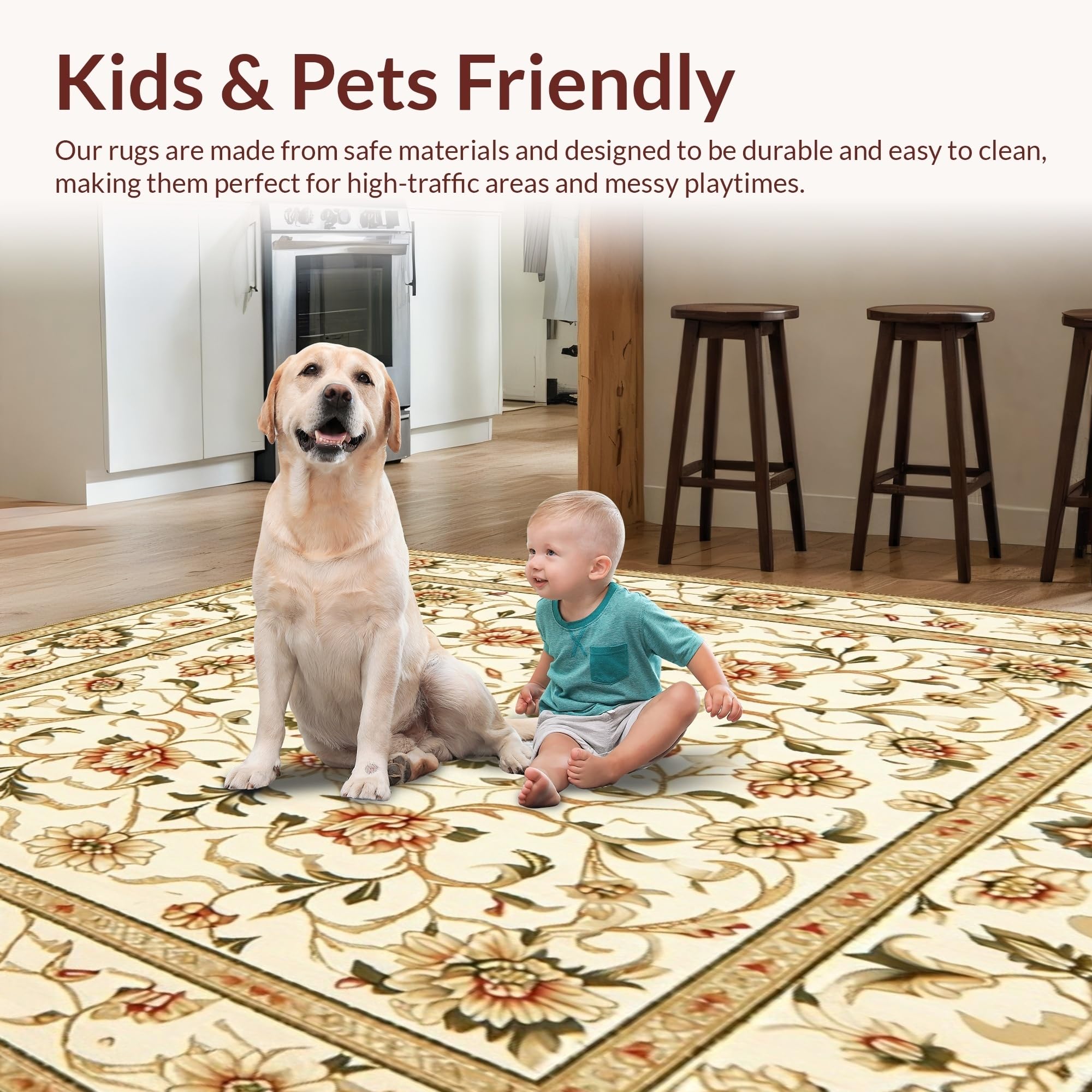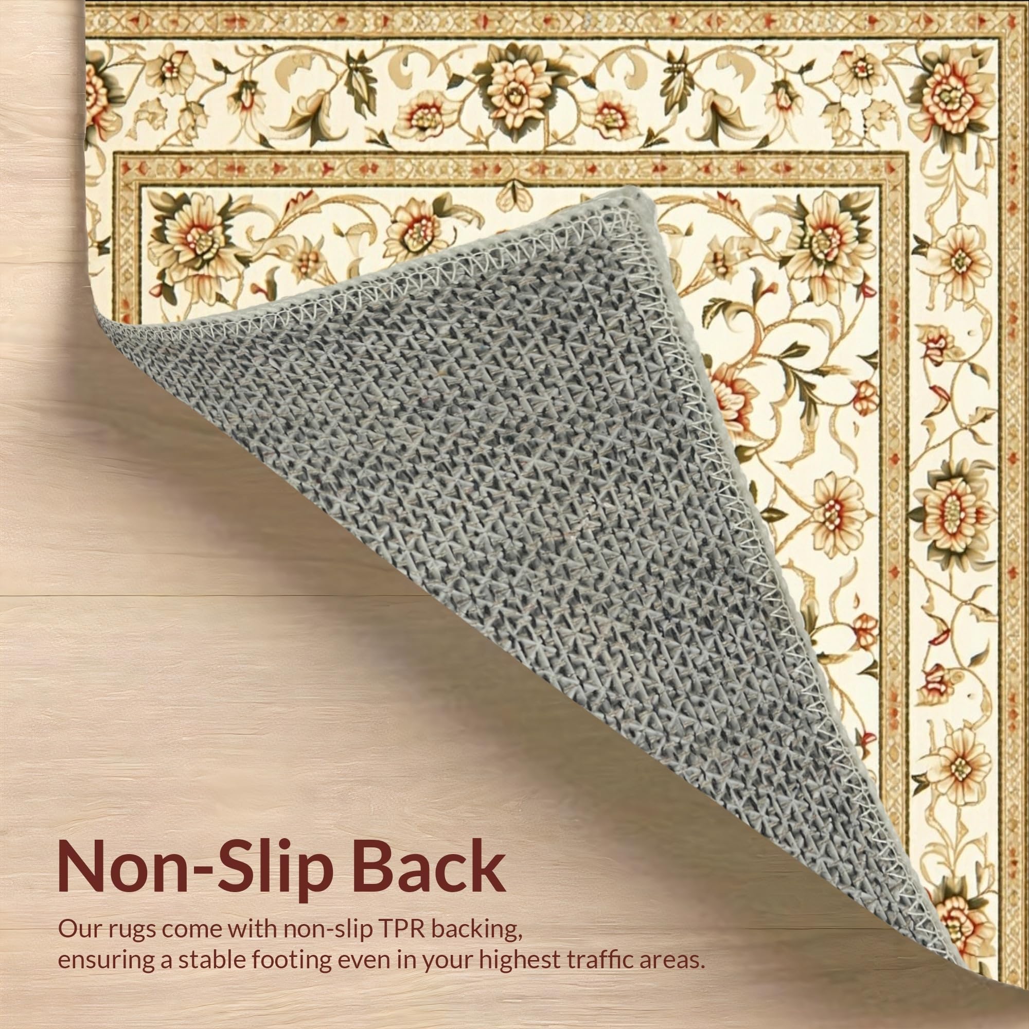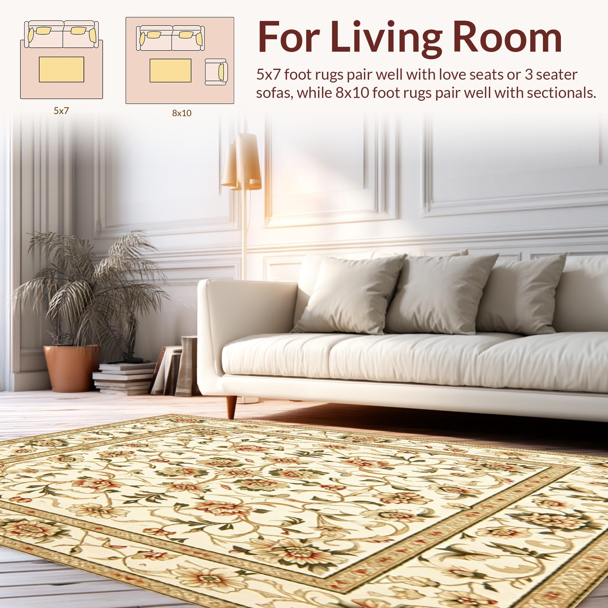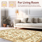 Ultra Soft Area Rug, Non Slip, Stain Resistant, Washable Area Rugs for Living Room, Bedroom, Sophisticated Area with Vintage Inspired Floral Motifs(Beige) Overview: