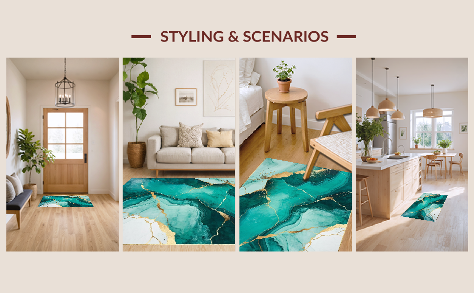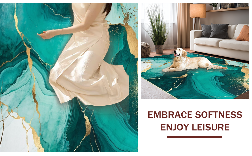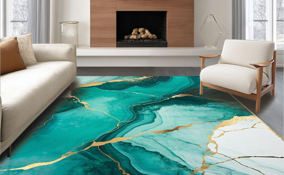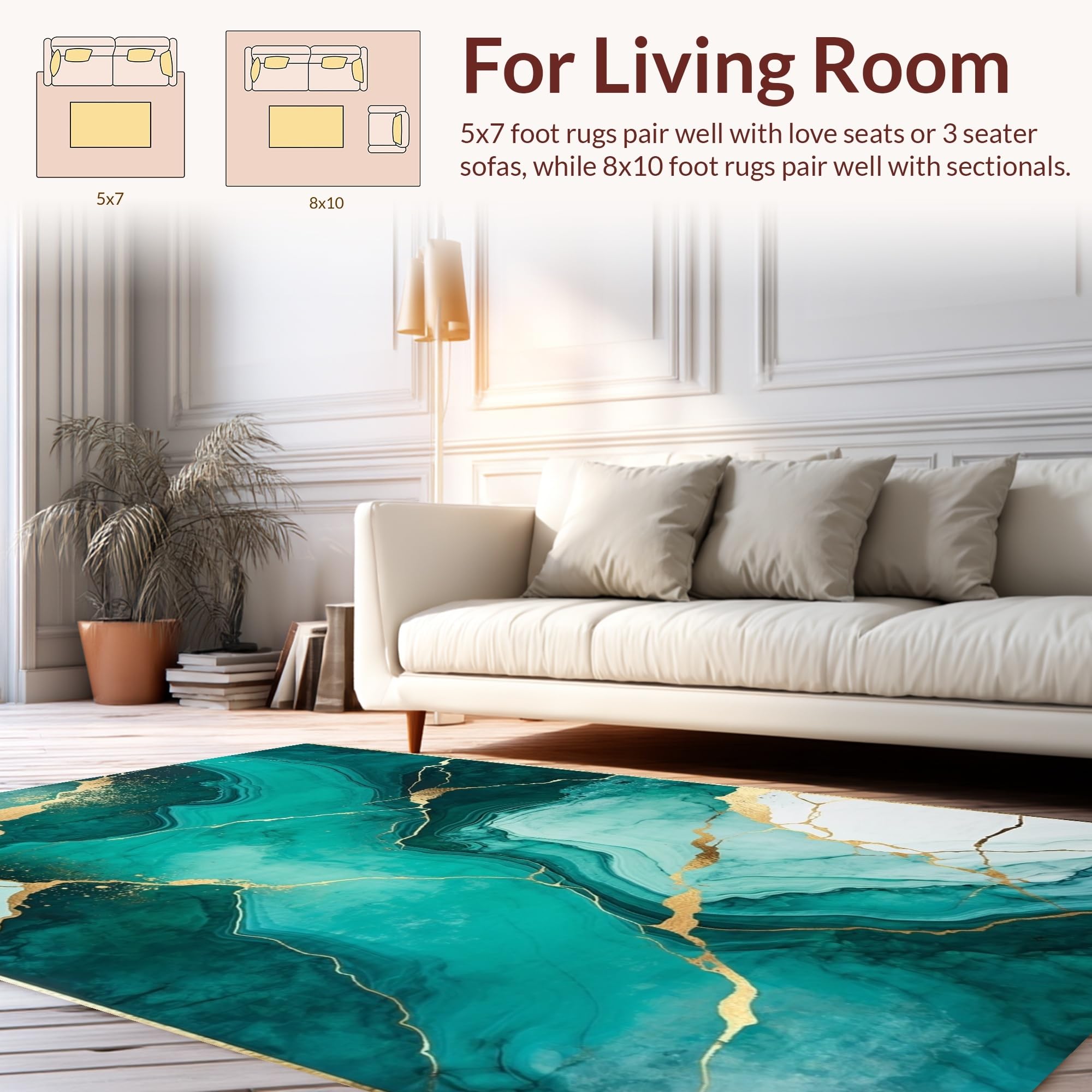 Ultra Soft Area Rug, Non Slip, Stain Resistant, Washable Area Rugs for Living Room, Bedroom, Sophisticated Artistic Textural Layers(Green) Overview: