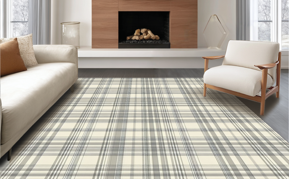 Ultra Soft Area Rug, Non Slip, Stain Resistant, Washable Area Rugs for Living Room, Bedroom, Sophisticated Beige Lattice Design(Beige) Overview: