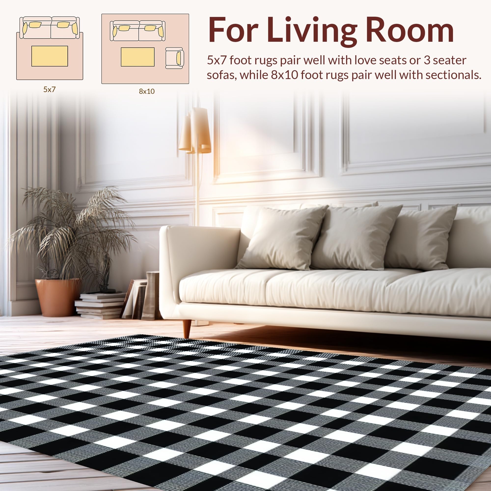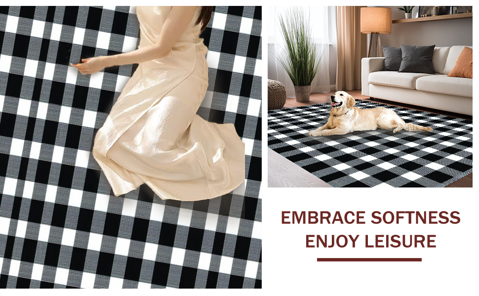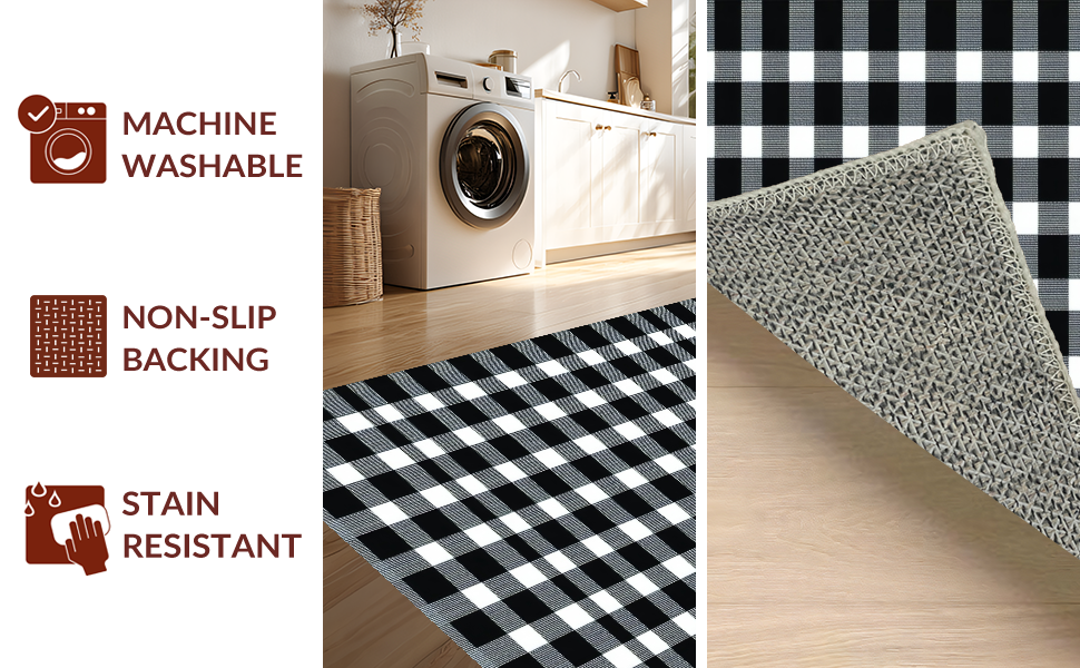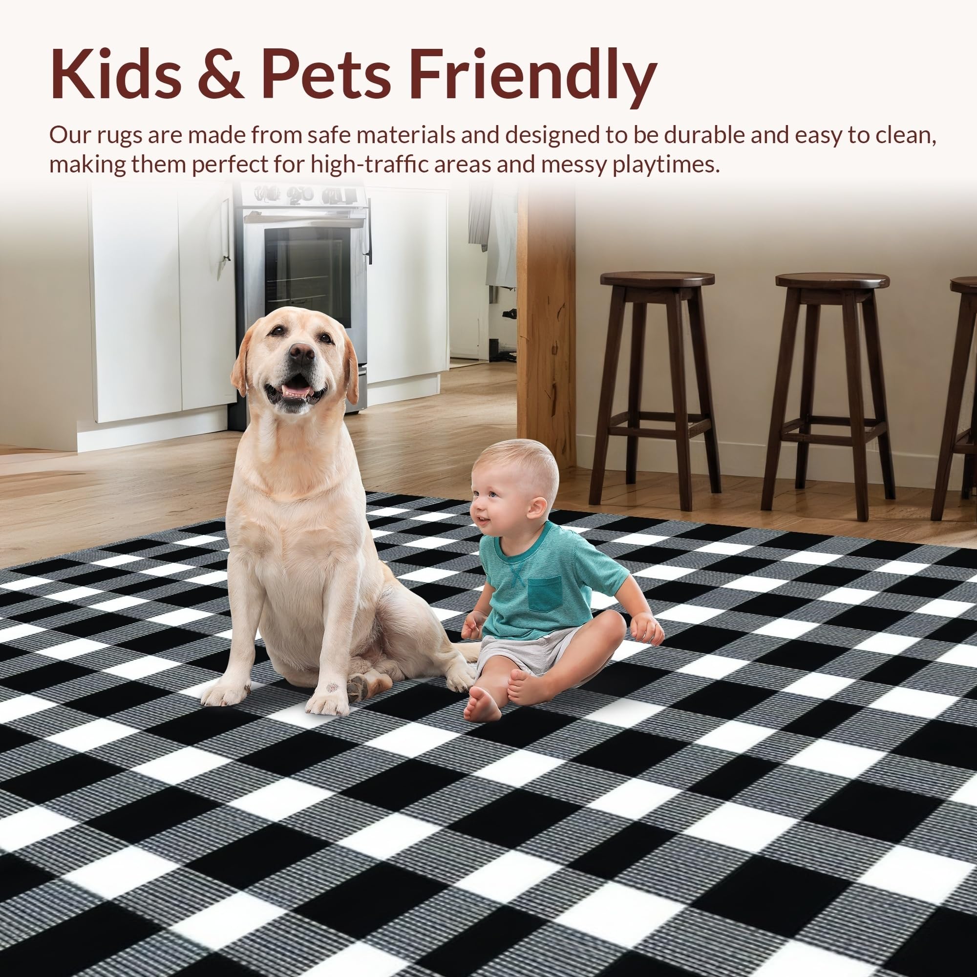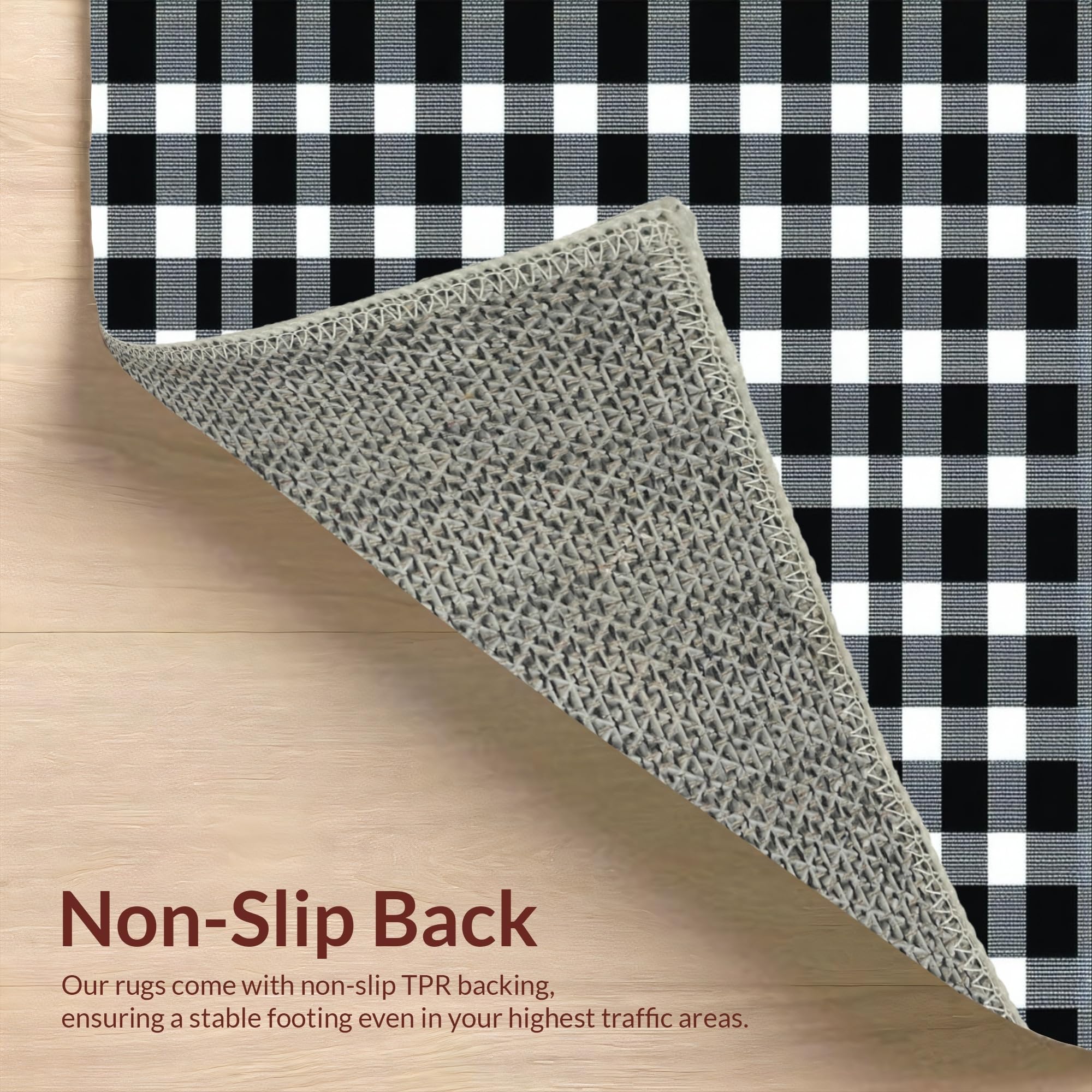 Ultra Soft Area Rug, Non Slip, Stain Resistant, Washable Area Rugs for Living Room, Bedroom, Sophisticated Black and White Tiled Look(Black) Overview: