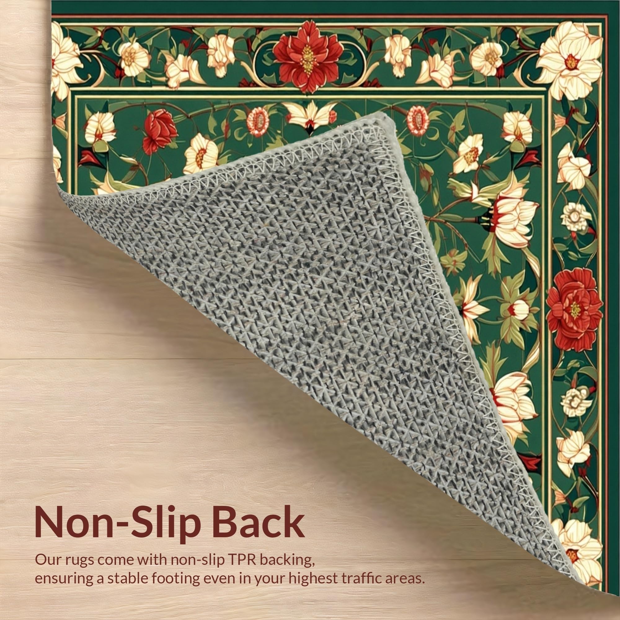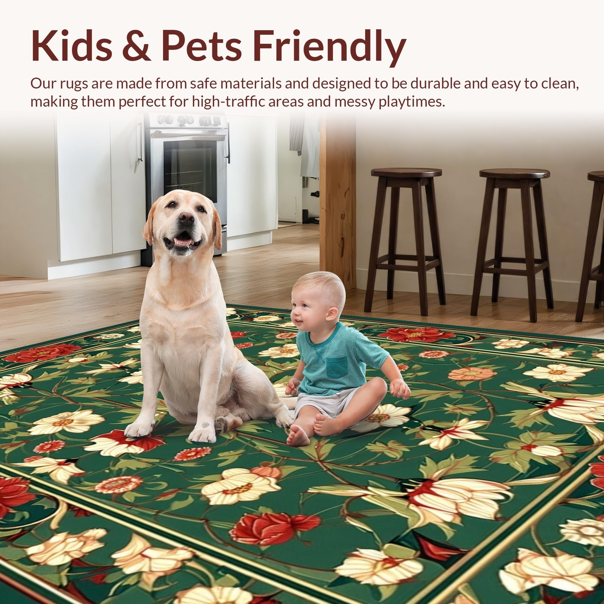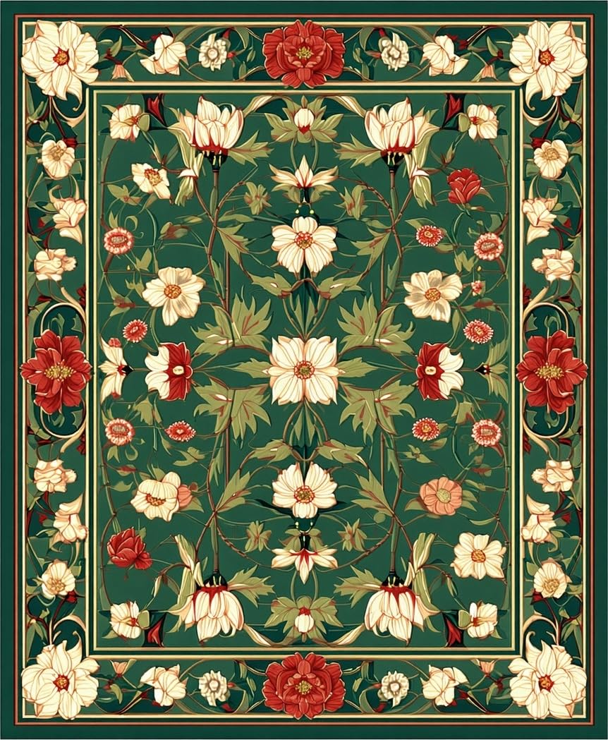 Ultra Soft Area Rug, Non Slip, Stain Resistant, Washable Area Rugs for Living Room, Bedroom, Sophisticated Classic Botanical Theme(Green) Overview: