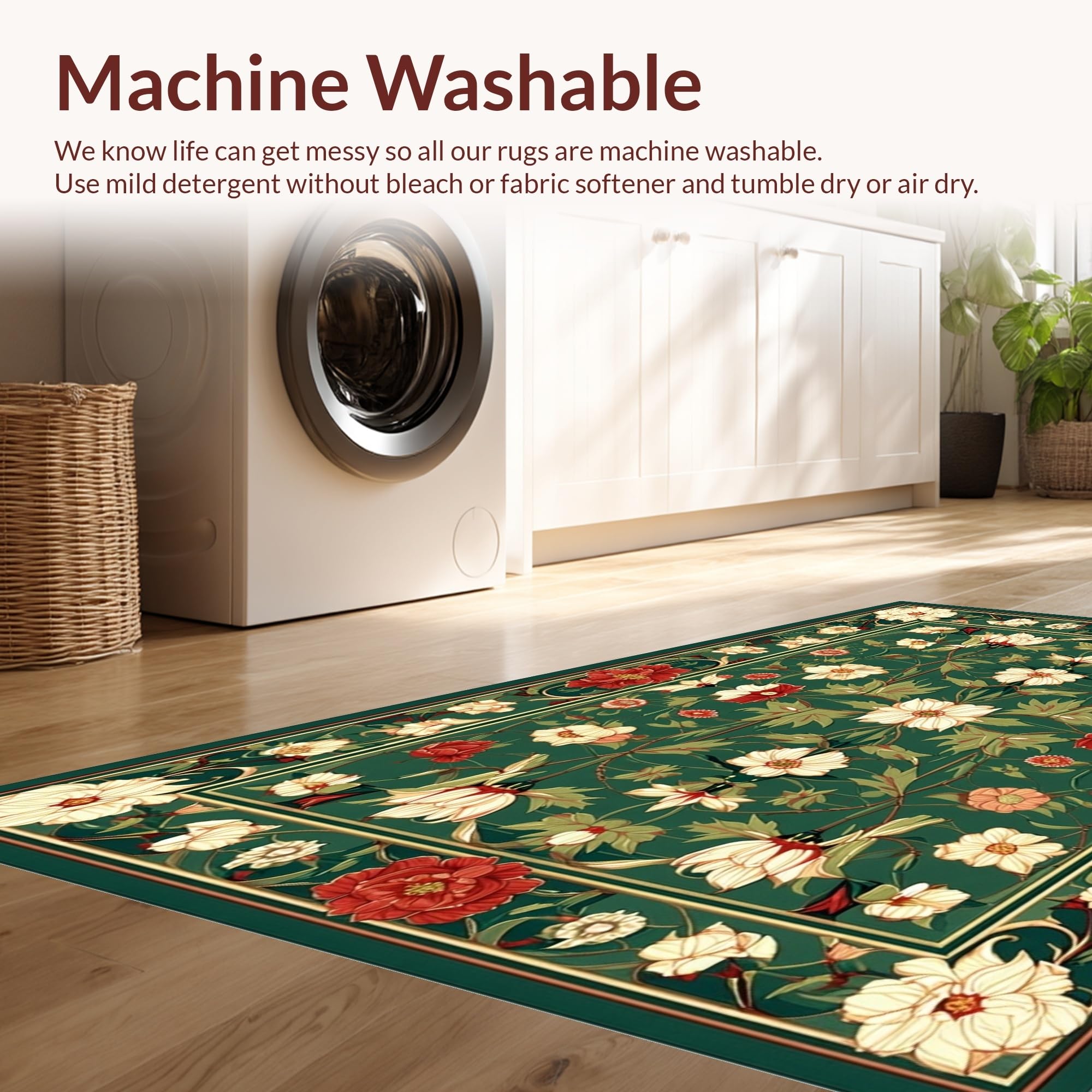 - Machine Washable: Our rugs can be easily thrown in the wash machine.