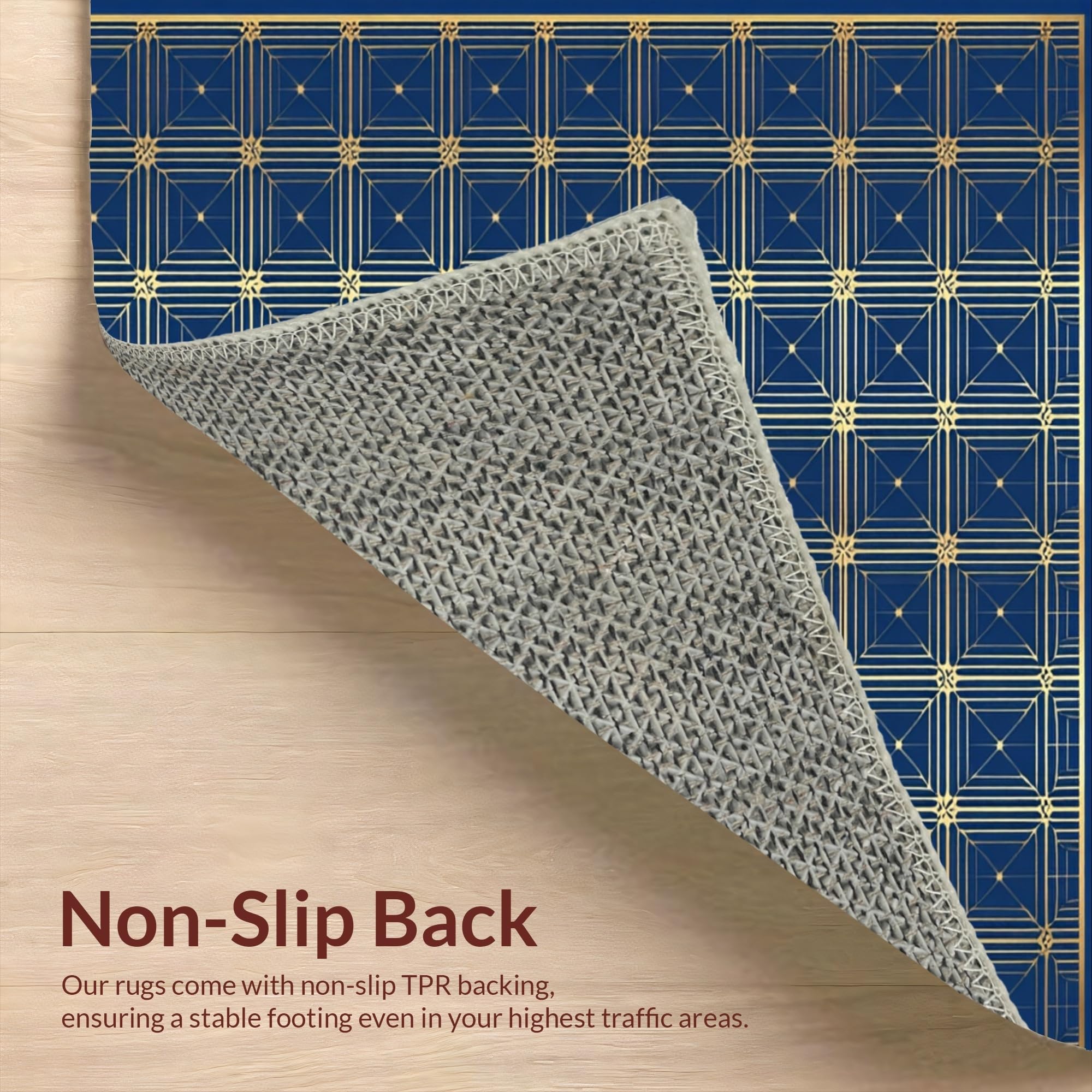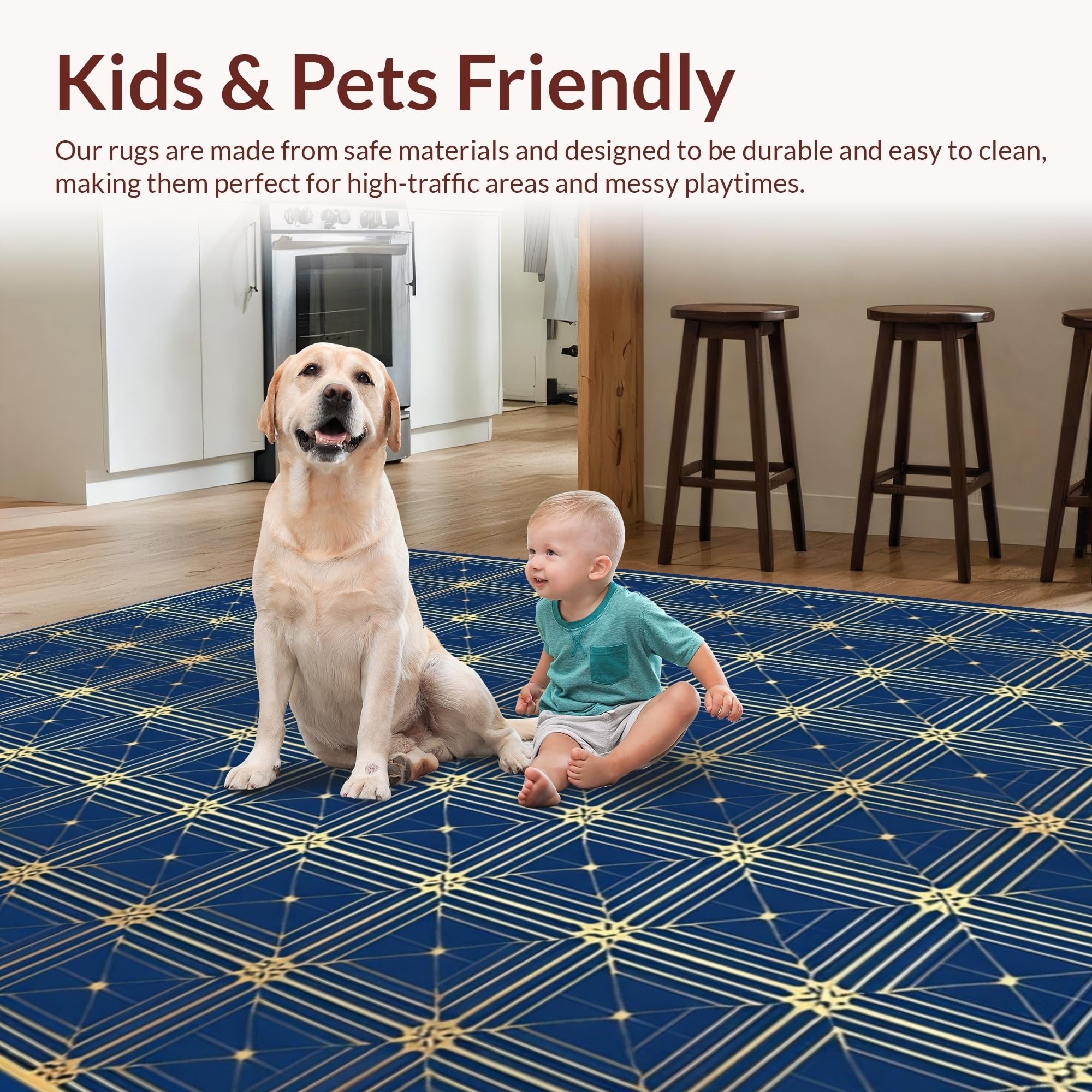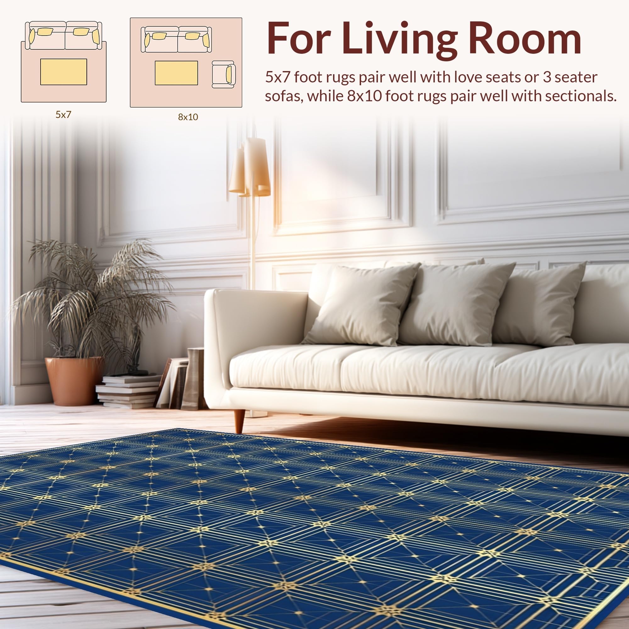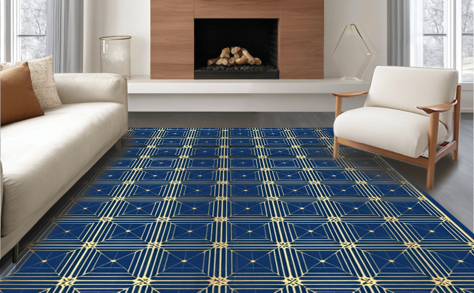 Ultra Soft Area Rug, Non Slip, Stain Resistant, Washable Area Rugs for Living Room, Bedroom, Sophisticated Color Blocked Aesthetic(Blue) Overview: