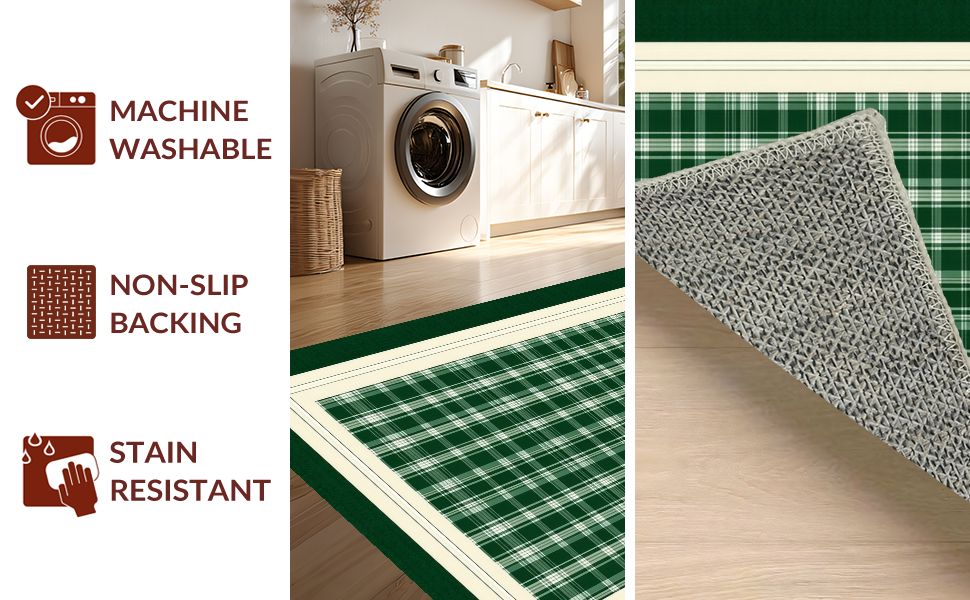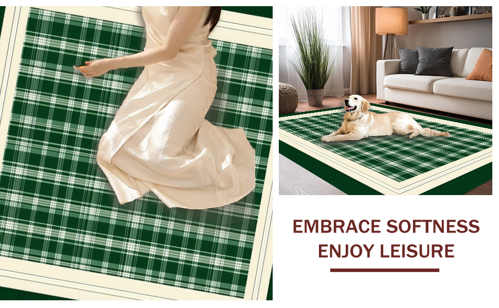Ultra Soft Area Rug, Non Slip, Stain Resistant, Washable Area Rugs for Living Room, Bedroom, Sophisticated Cream and Gray Plaid(Green) Overview: