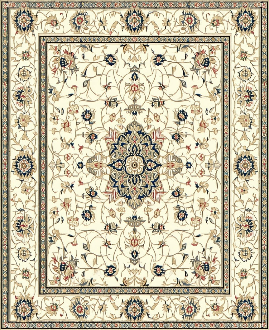 Sophisticated Cream Featuring Intricate Medallion Motif(Beige)