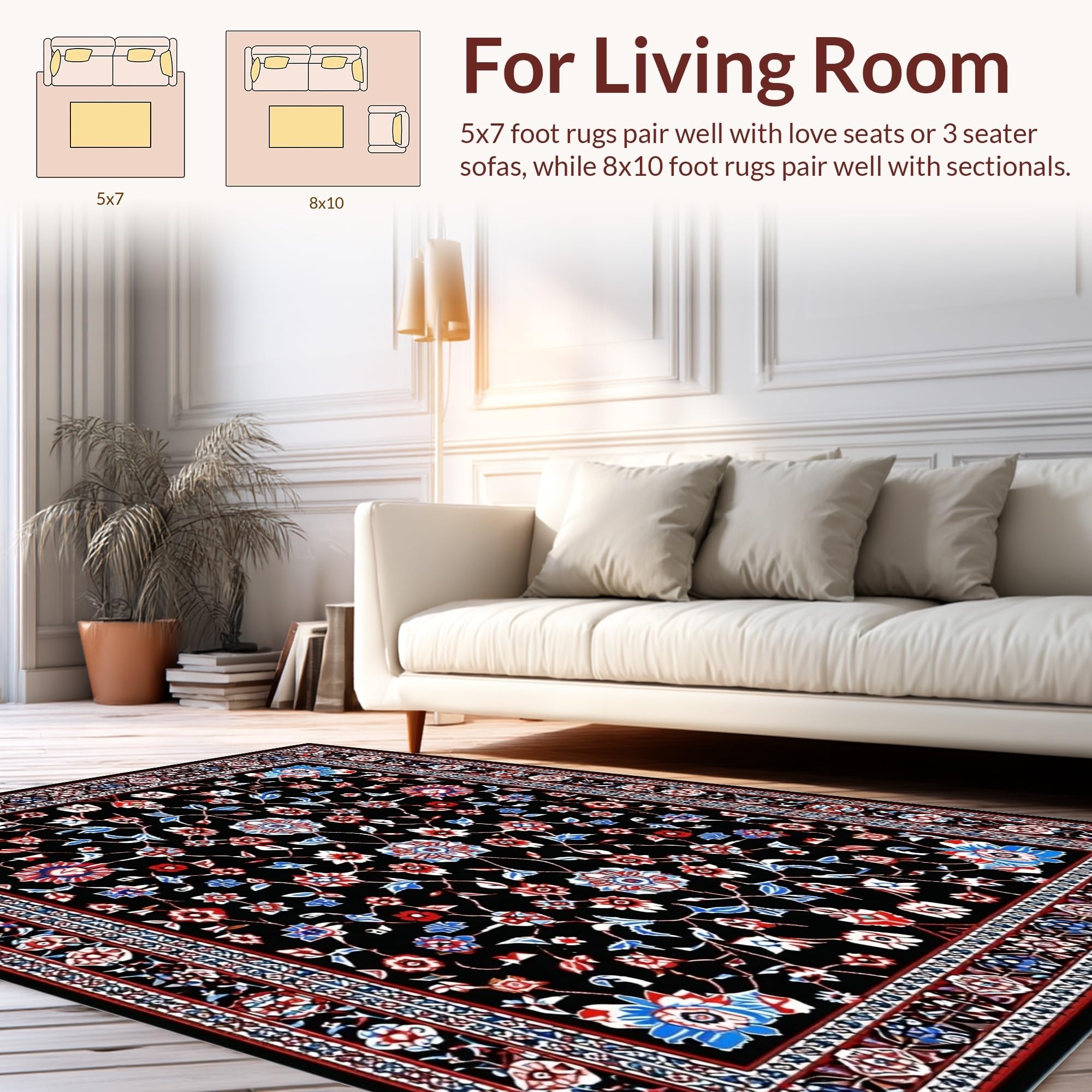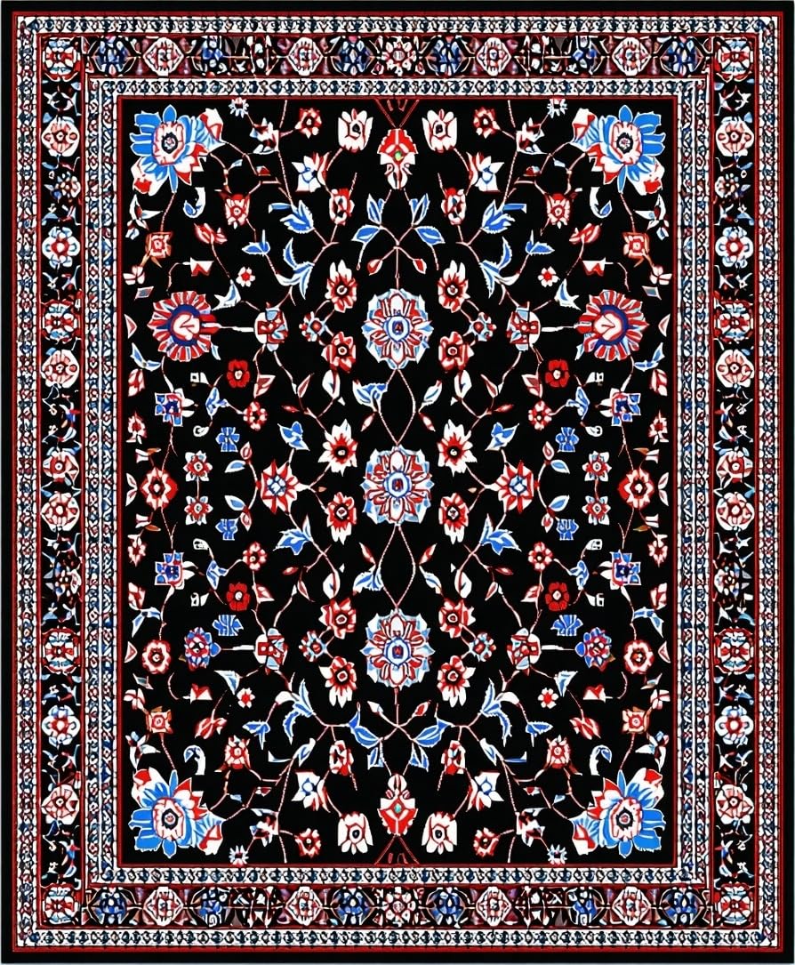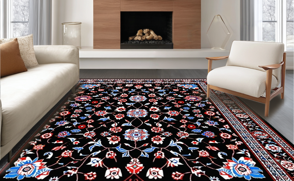 Ultra Soft Area Rug, Non Slip, Stain Resistant, Washable Area Rugs for Living Room, Bedroom, Sophisticated Dark Garden Design(Black) Overview: