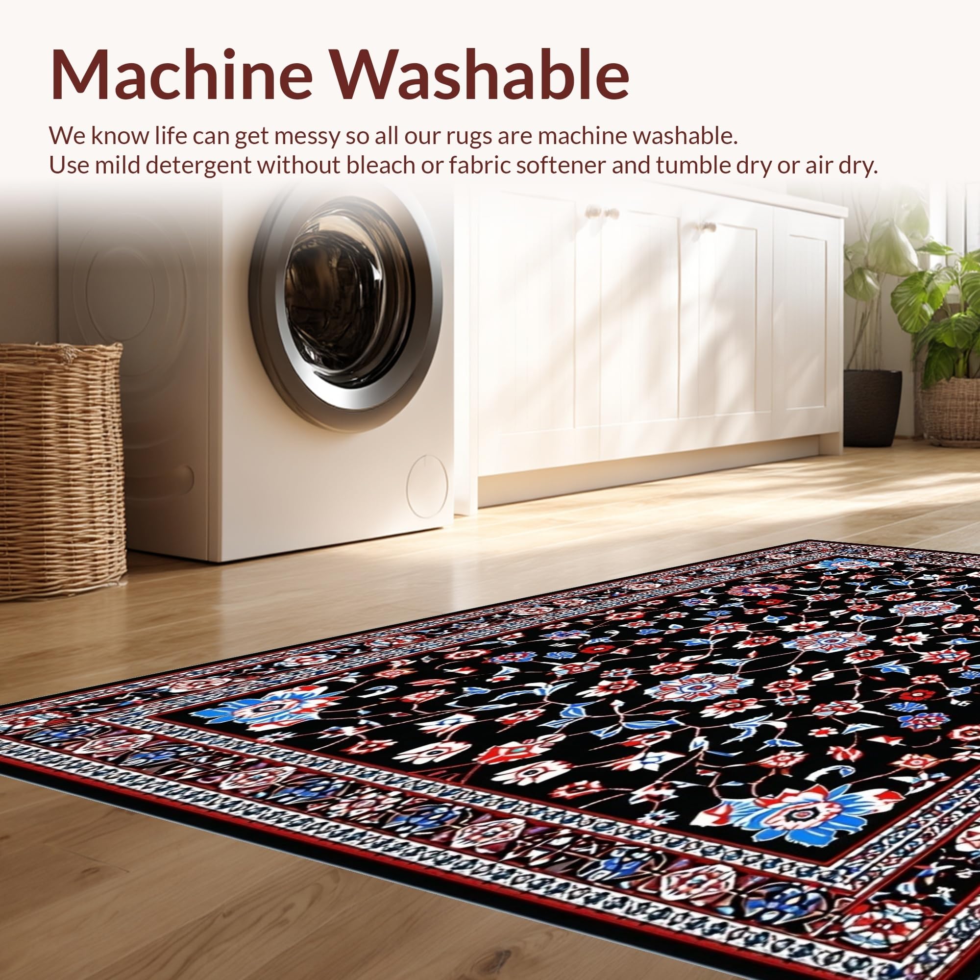 - Machine Washable: Our rugs can be easily thrown in the wash machine.