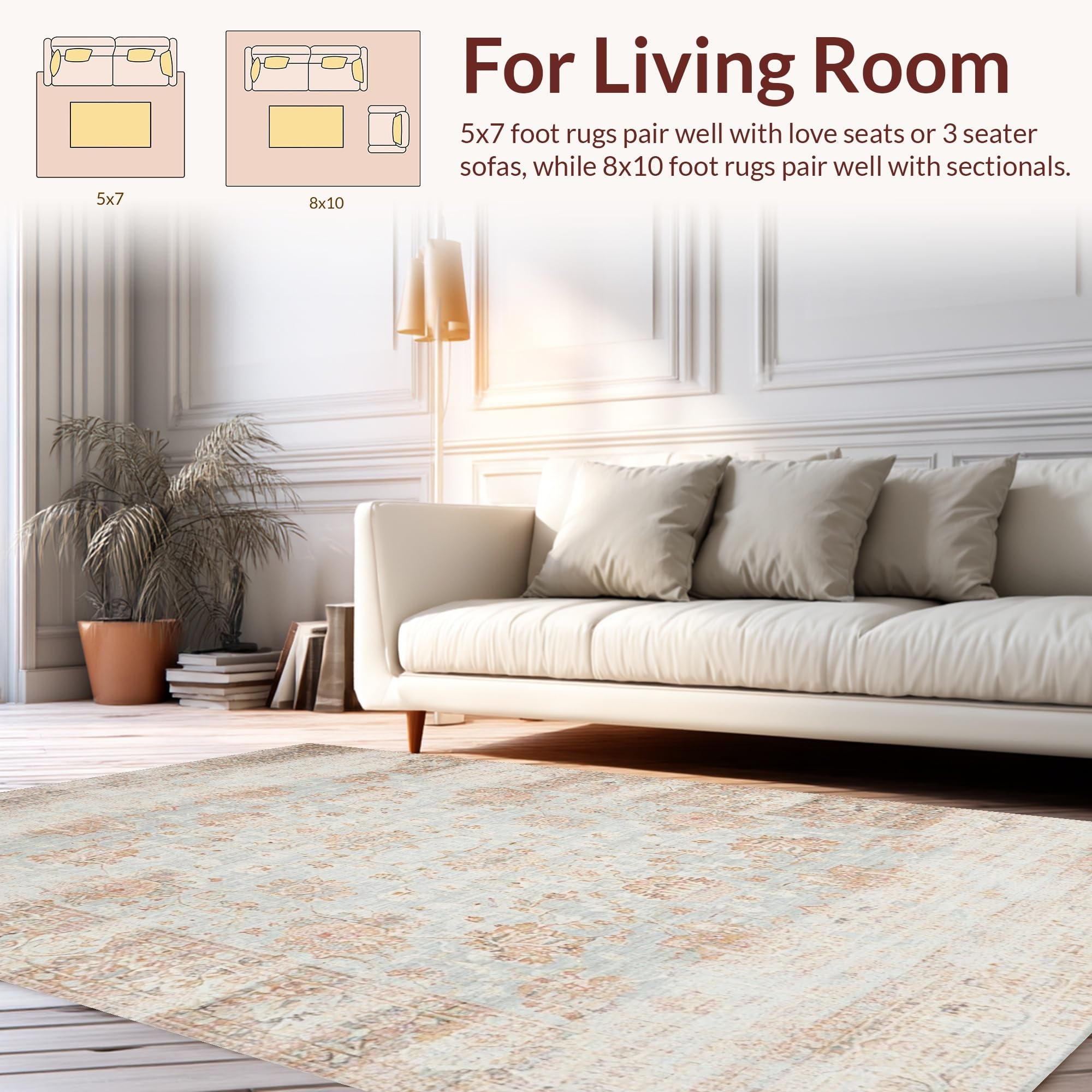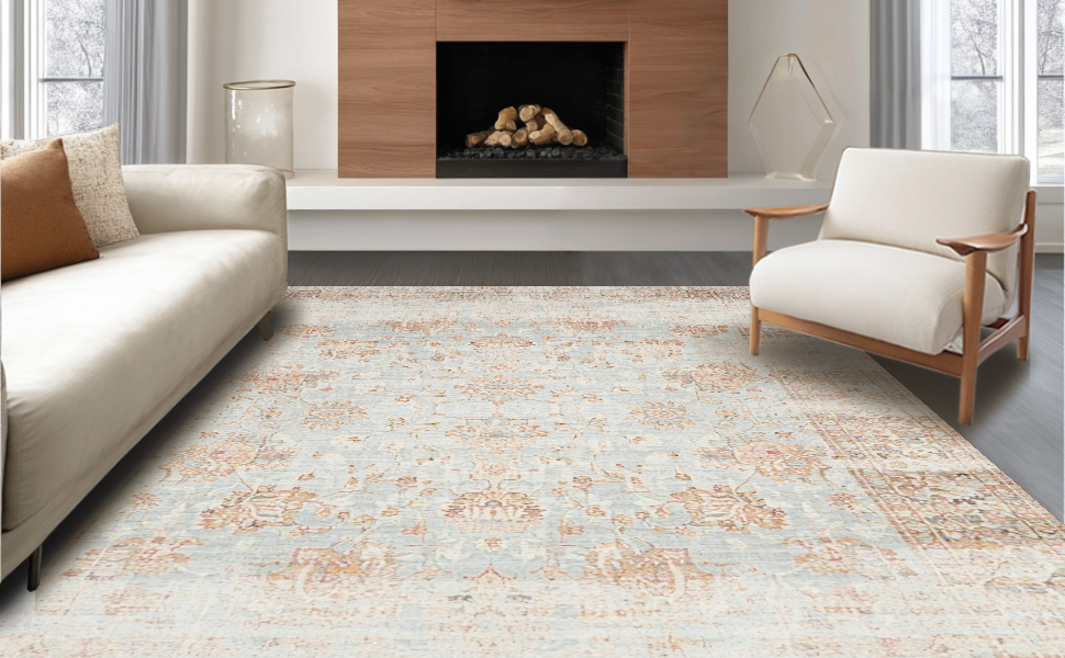 Ultra Soft Area Rug, Non Slip, Stain Resistant, Washable Area Rugs for Living Room, Bedroom, Sophisticated Earth Tone Patterns(Gray) Overview: