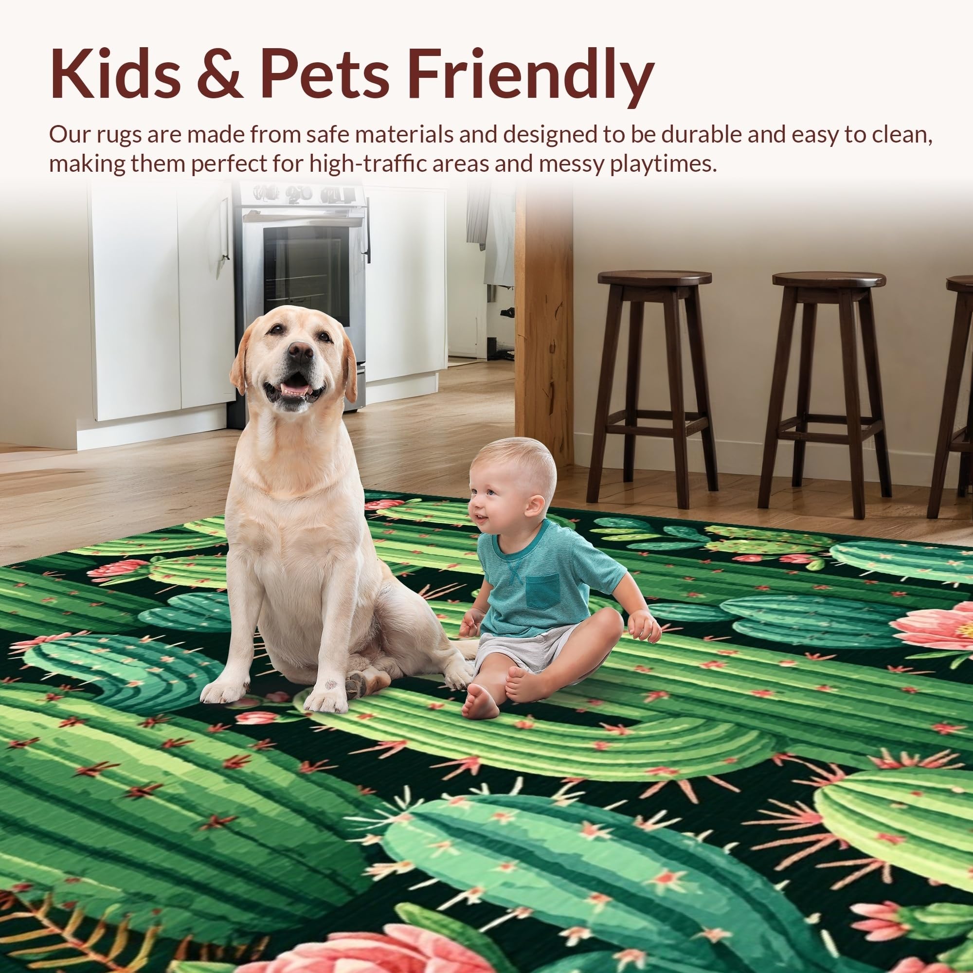 Ultra Soft Area Rug, Non Slip, Stain Resistant, Washable Area Rugs for Living Room, Bedroom, Sophisticated Earthy Floral Composition(Green) Overview: