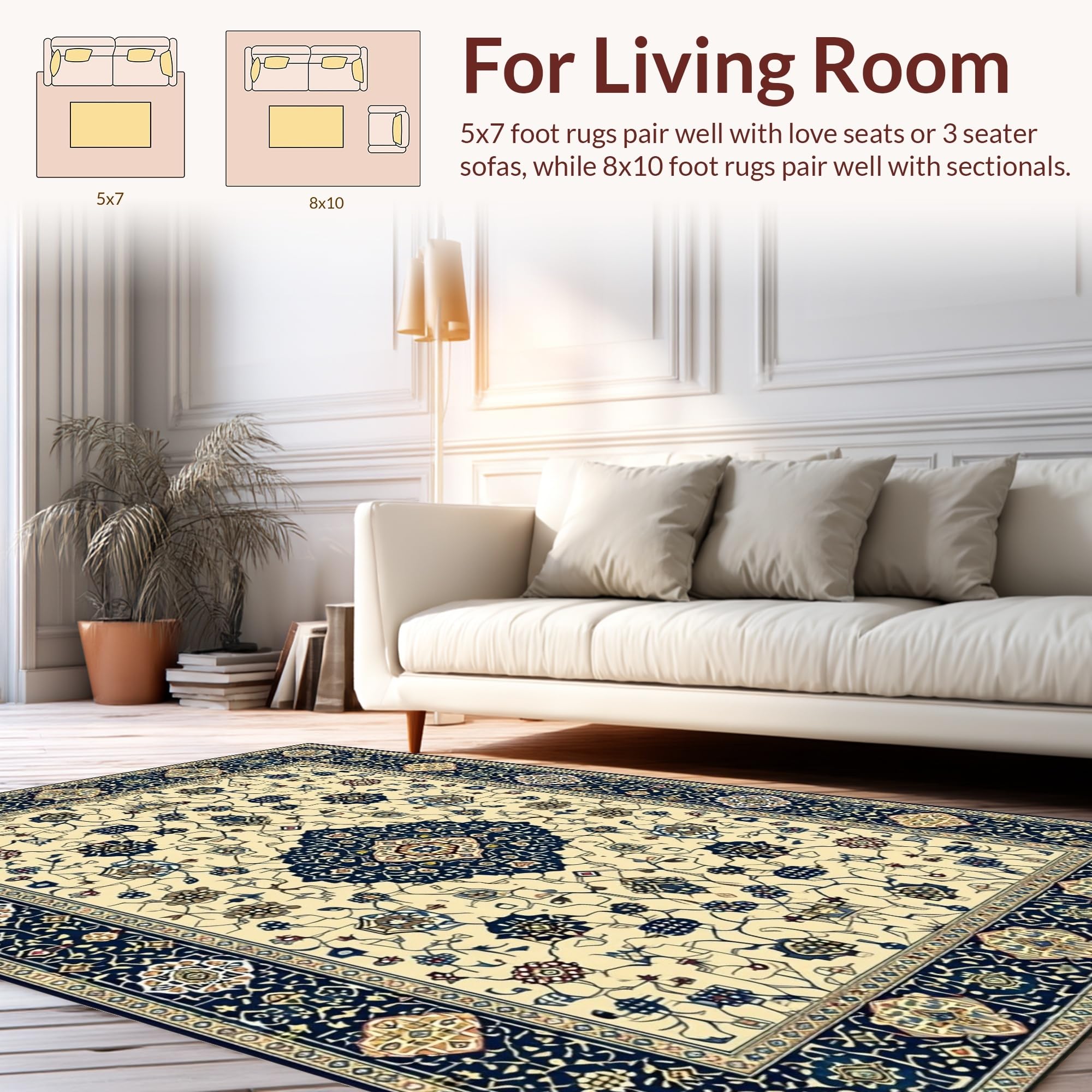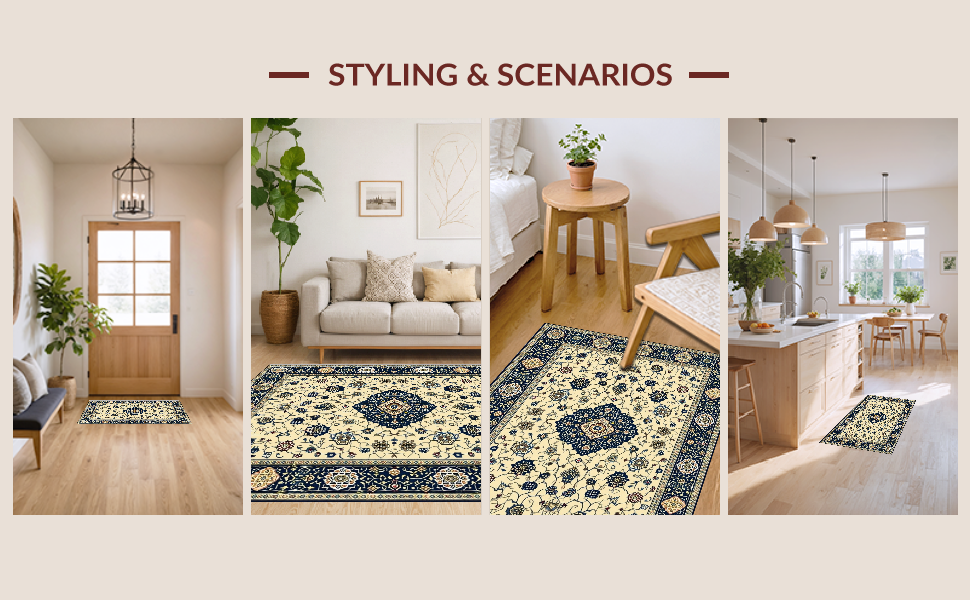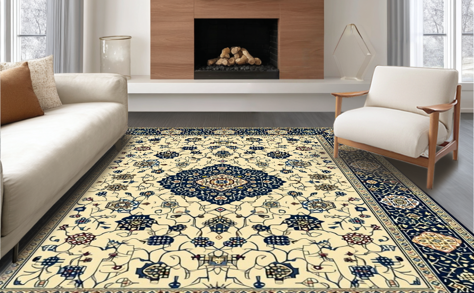 Ultra Soft Area Rug, Non Slip, Stain Resistant, Washable Area Rugs for Living Room, Bedroom, Sophisticated Earthy Hues Pattern(Beige) Overview: