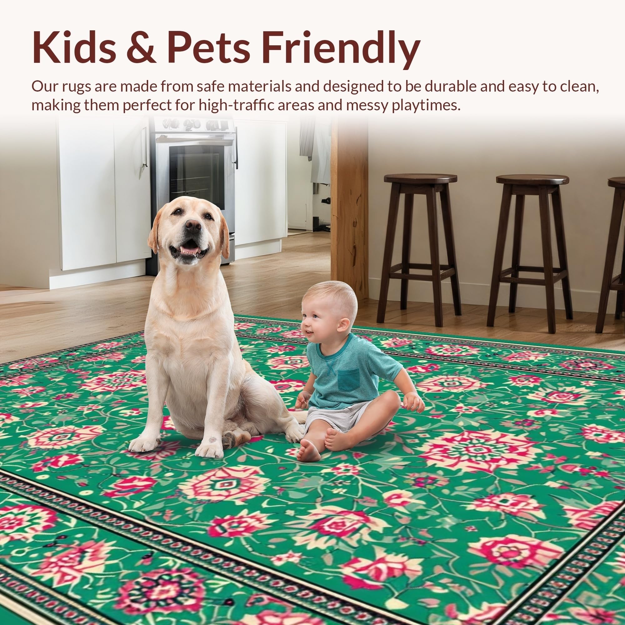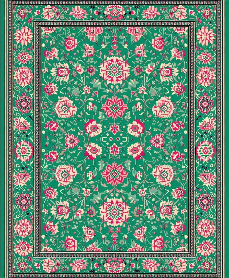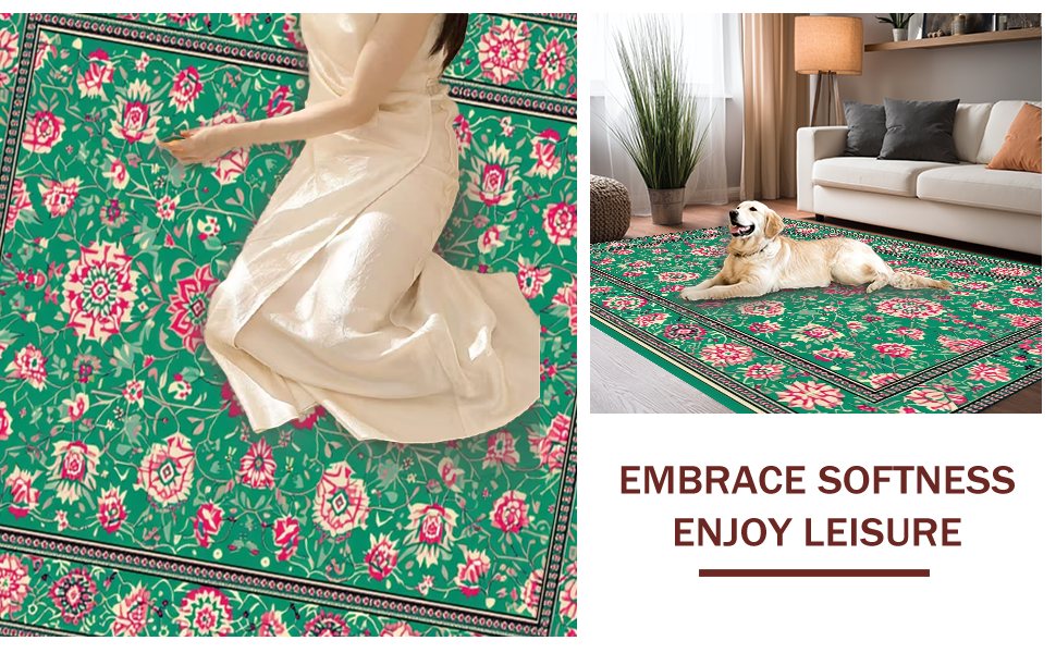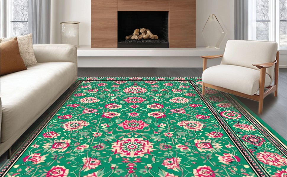 Ultra Soft Area Rug, Non Slip, Stain Resistant, Washable Area Rugs for Living Room, Bedroom, Sophisticated Elegant Tiled Pattern(Green) Overview: