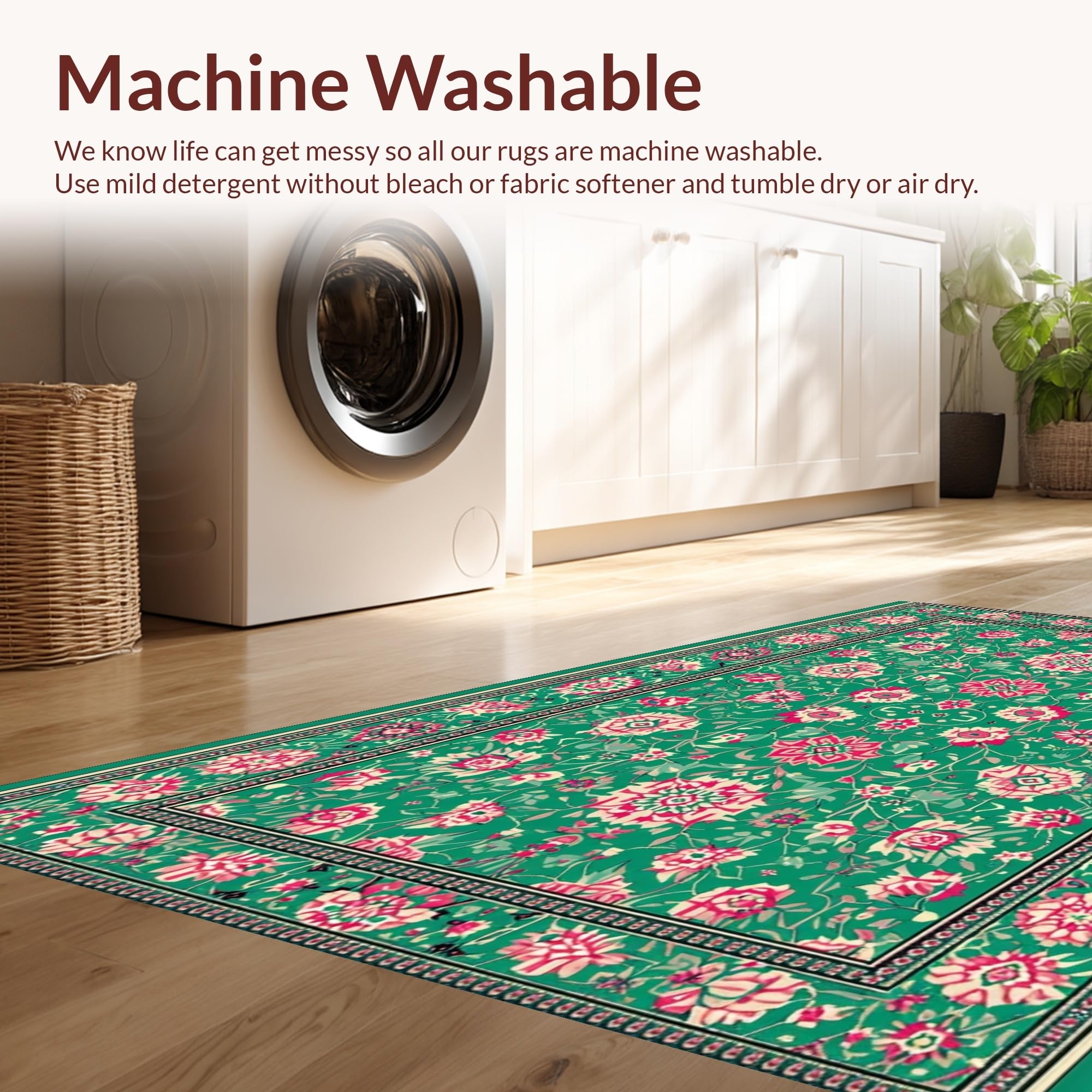 - Machine Washable: Our rugs can be easily thrown in the wash machine.