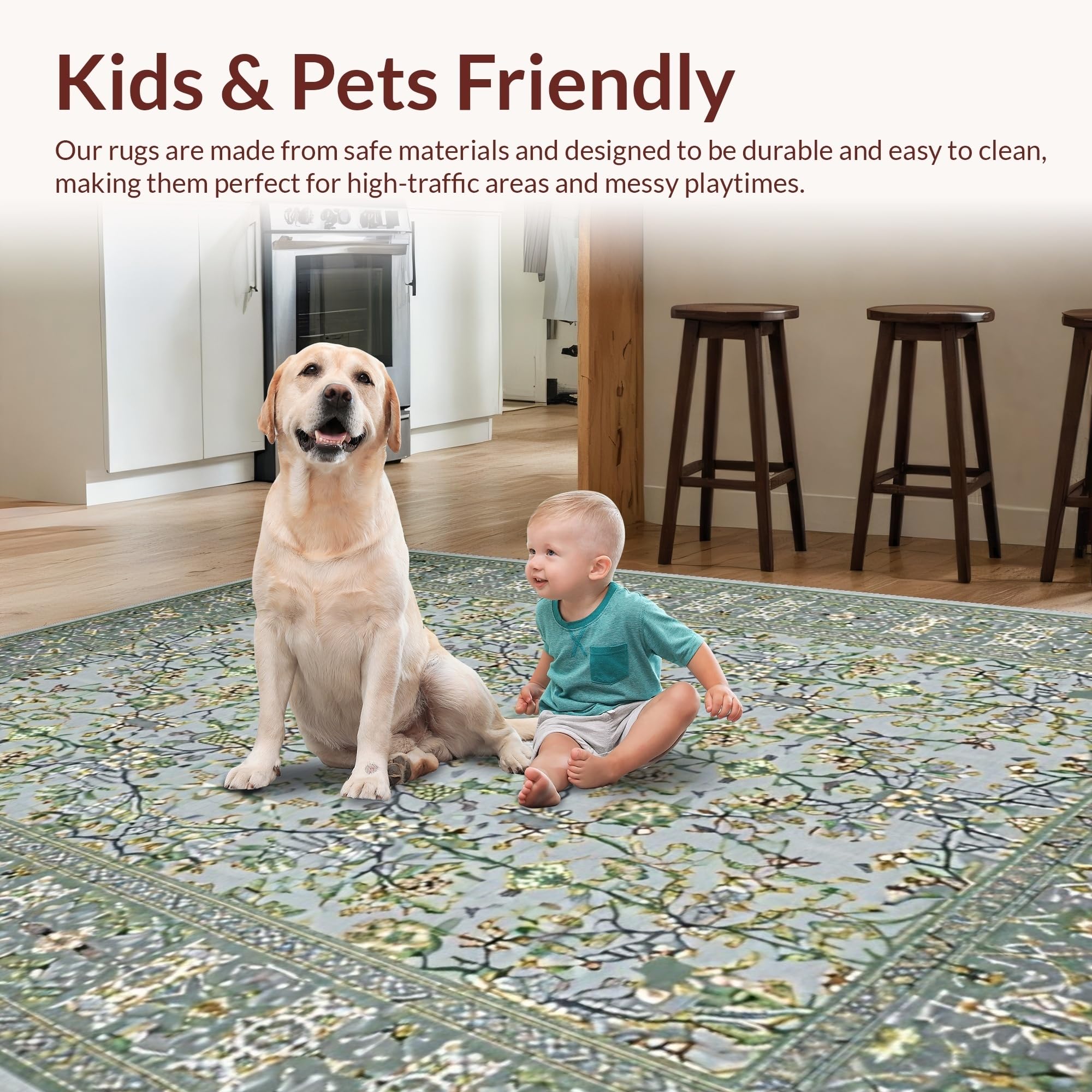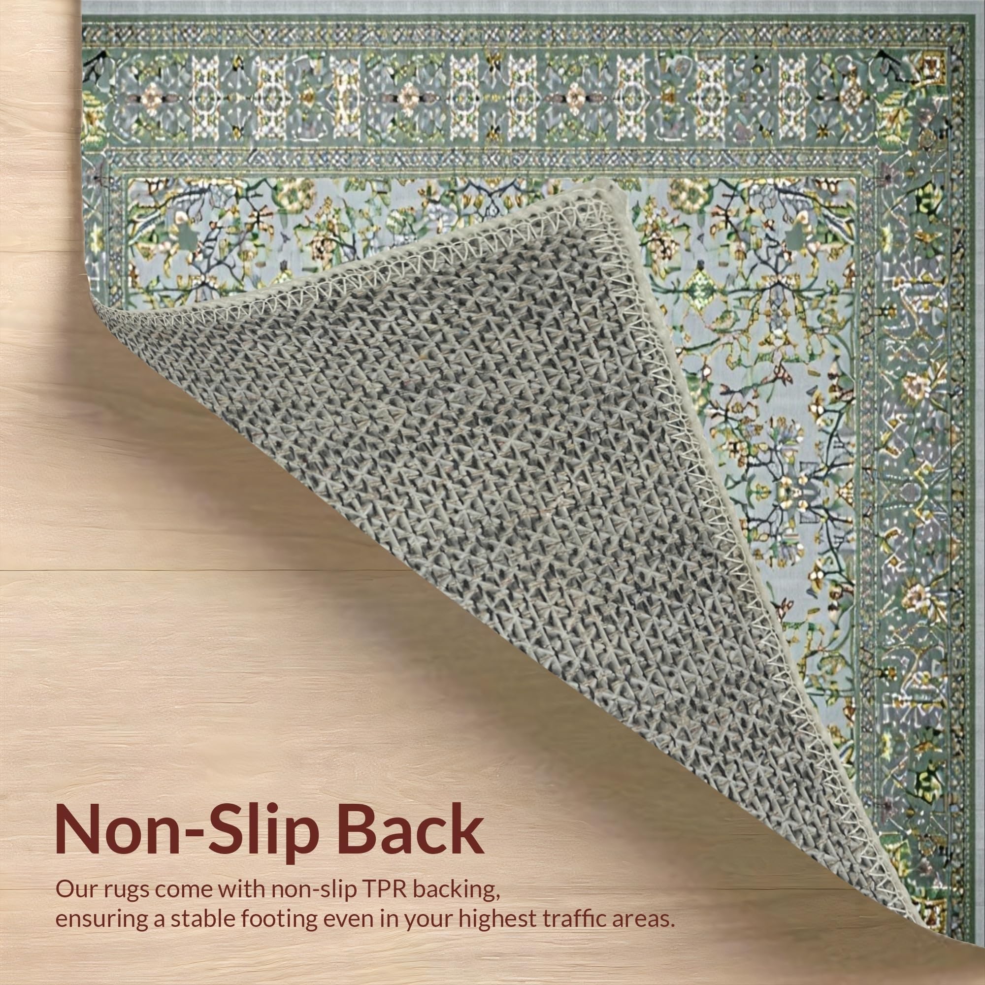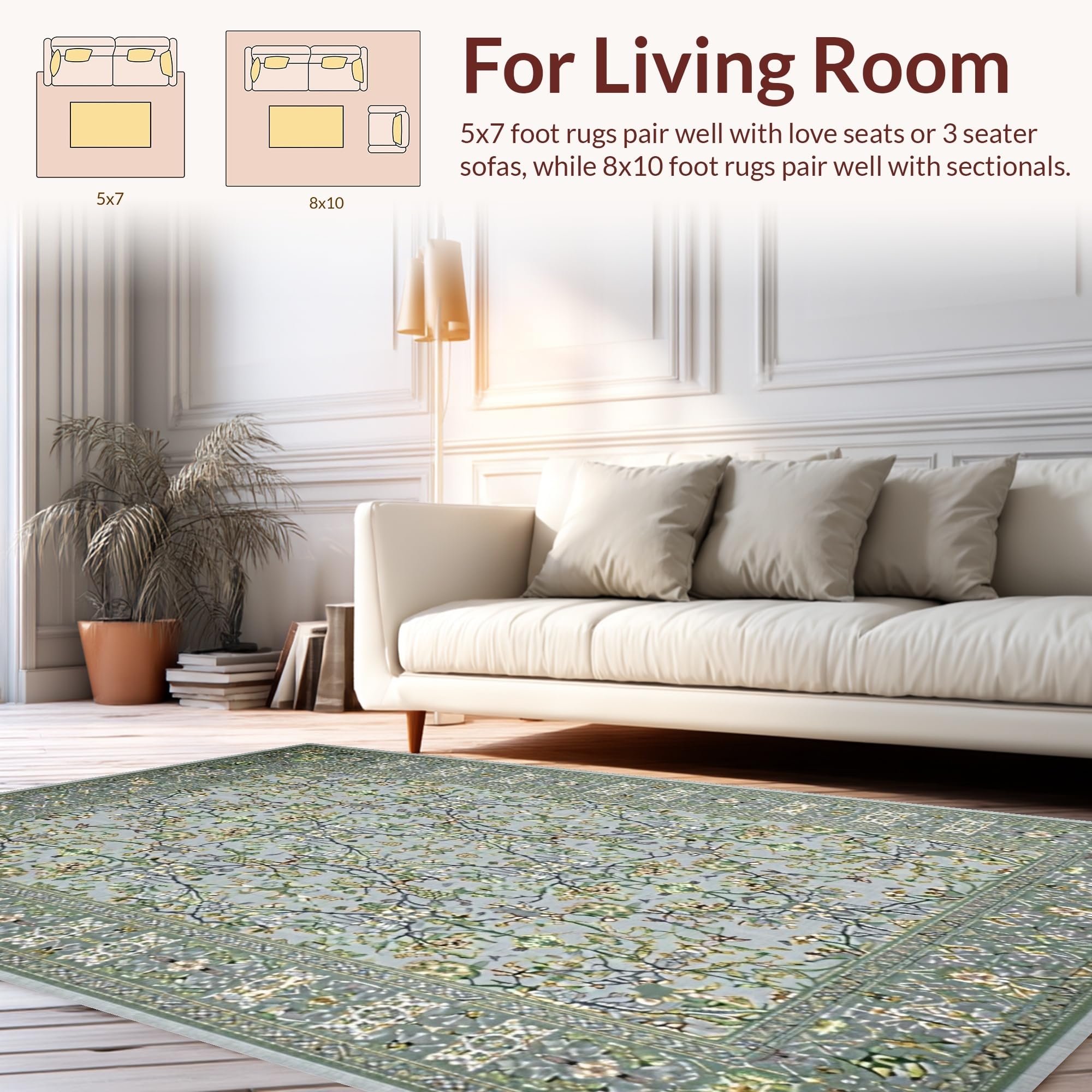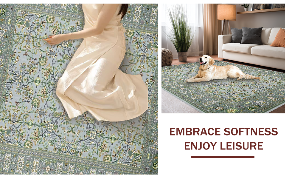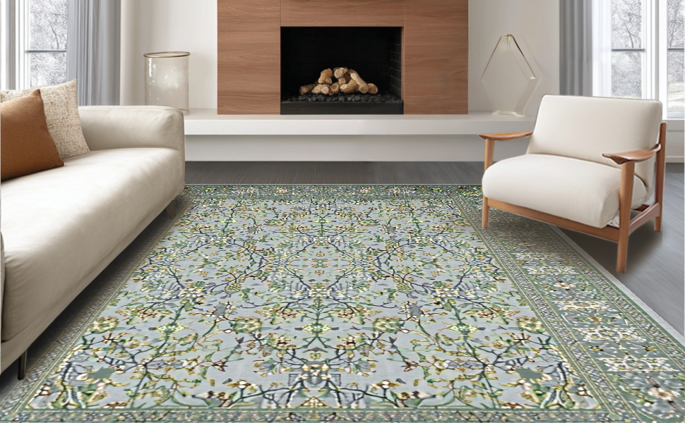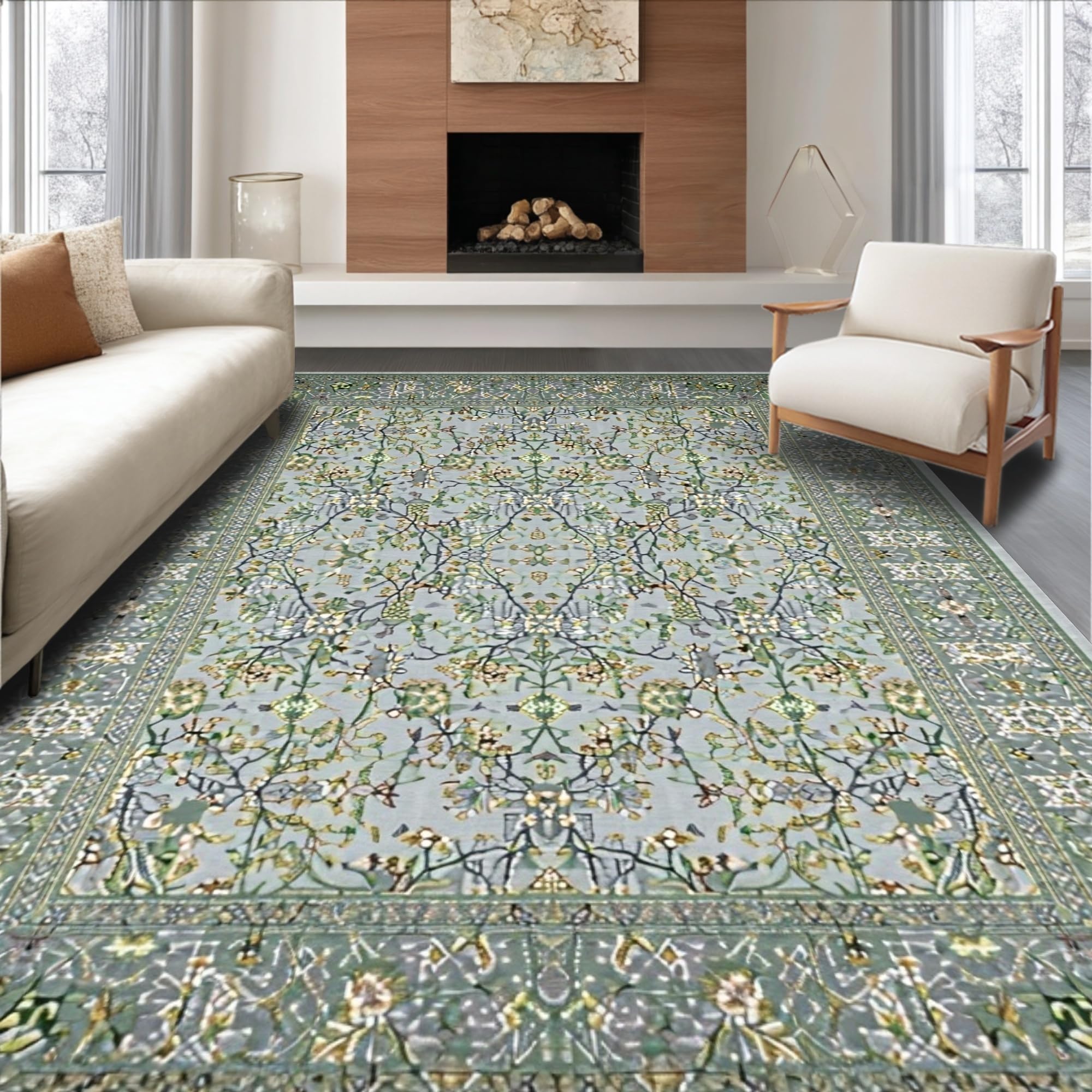 Ultra Soft Area Rug, Non Slip, Stain Resistant, Washable Area Rugs for Living Room, Bedroom, Sophisticated Ethnic Floral Arrangement(Gray) Overview: