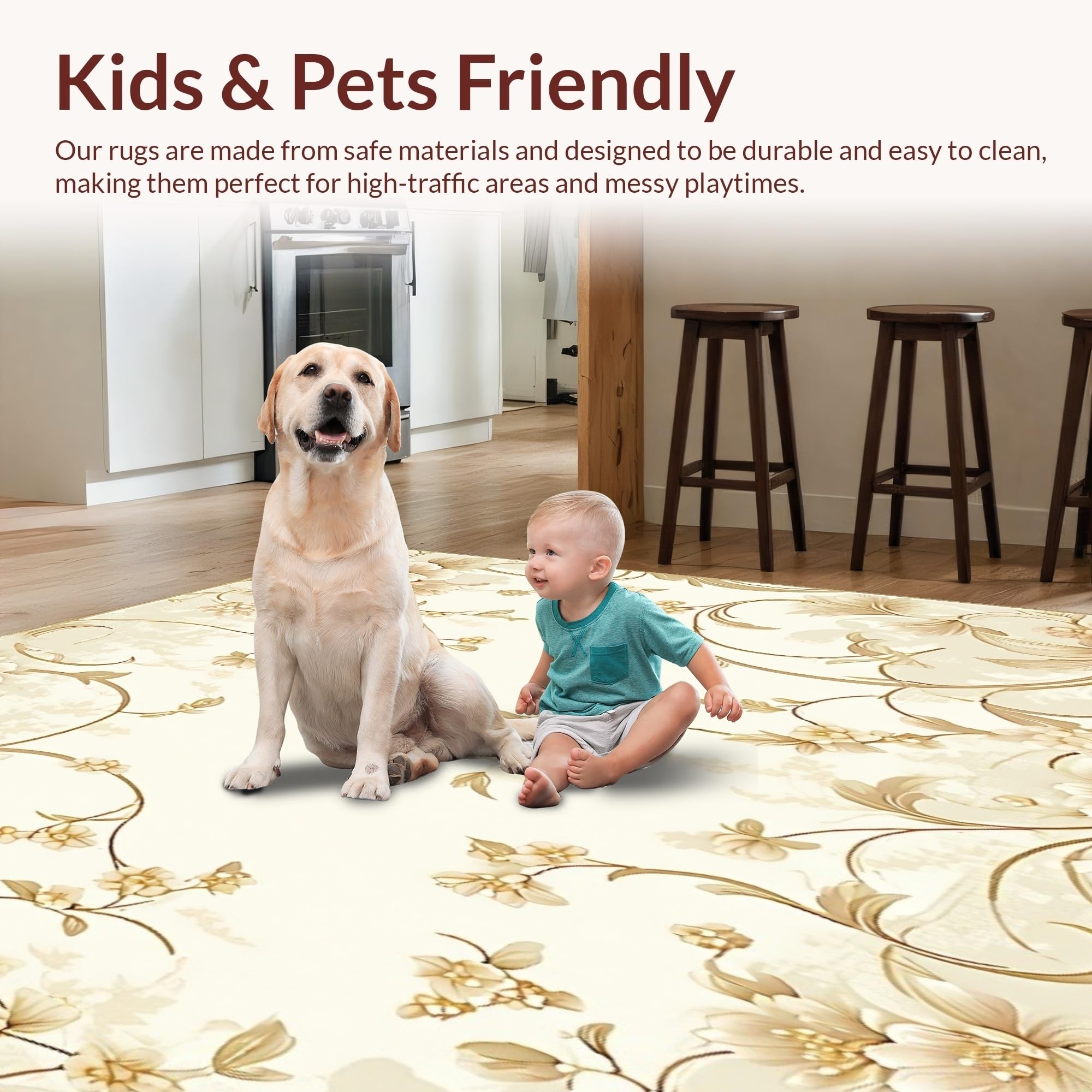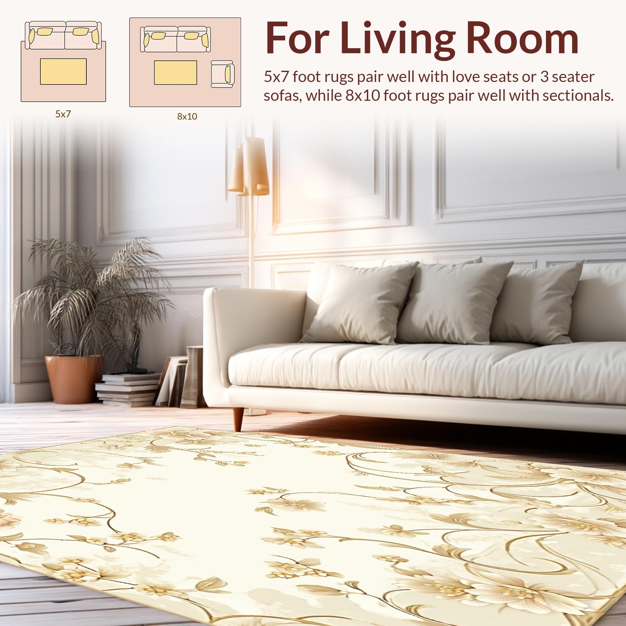 Ultra Soft Area Rug, Non Slip, Stain Resistant, Washable Area Rugs for Living Room, Bedroom, Sophisticated Floral Featuring Non Slip Backing for Elegant Spaces(Beige) Overview: