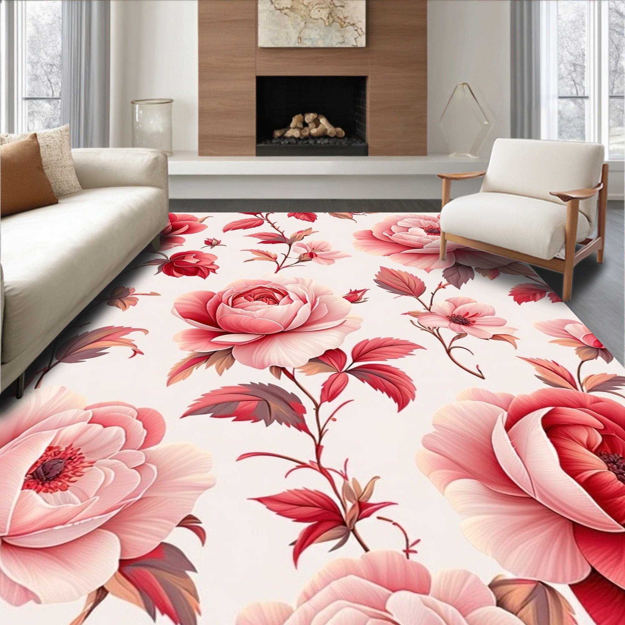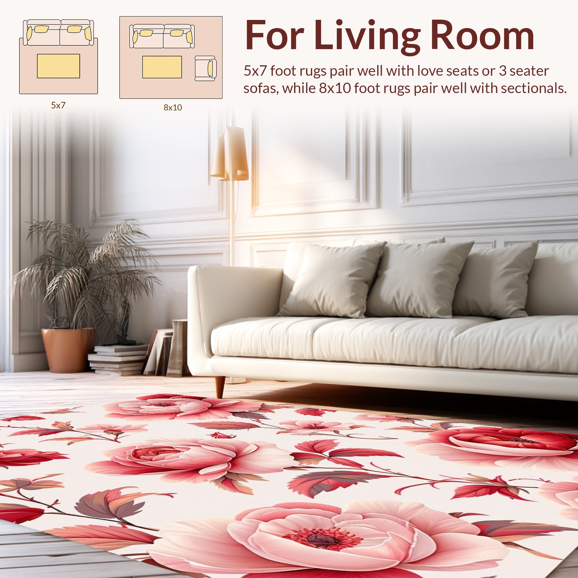 Flatwoven High Traffic Area Rug, Sophisticated Garden Inspired Décor, Non Slip, Stain Resistant, Washable Area Rugs for Living Room, Bedroom (Red) Overview: