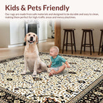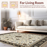 Ultra Soft Area Rug, Non Slip, Stain Resistant, Washable Area Rugs for Living Room, Bedroom, Sophisticated Geometric Area with Cream and Brown Floral Accents(White) Overview: