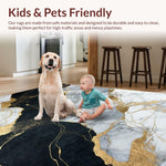 Ultra Soft Area Rug, Non Slip, Stain Resistant, Washable Area Rugs for Living Room, Bedroom, Sophisticated Geometric Gold Accents(White) Overview: