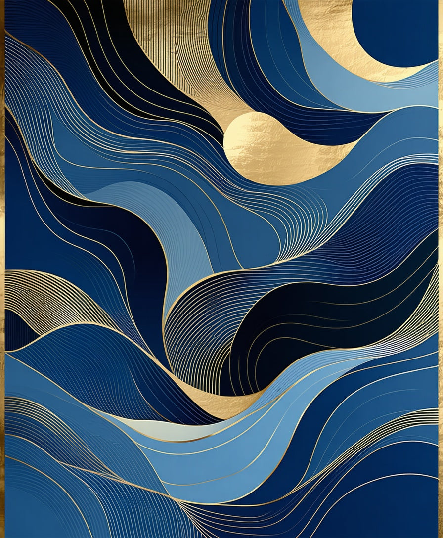 Sophisticated Gold Accented Swirl Design(Blue)