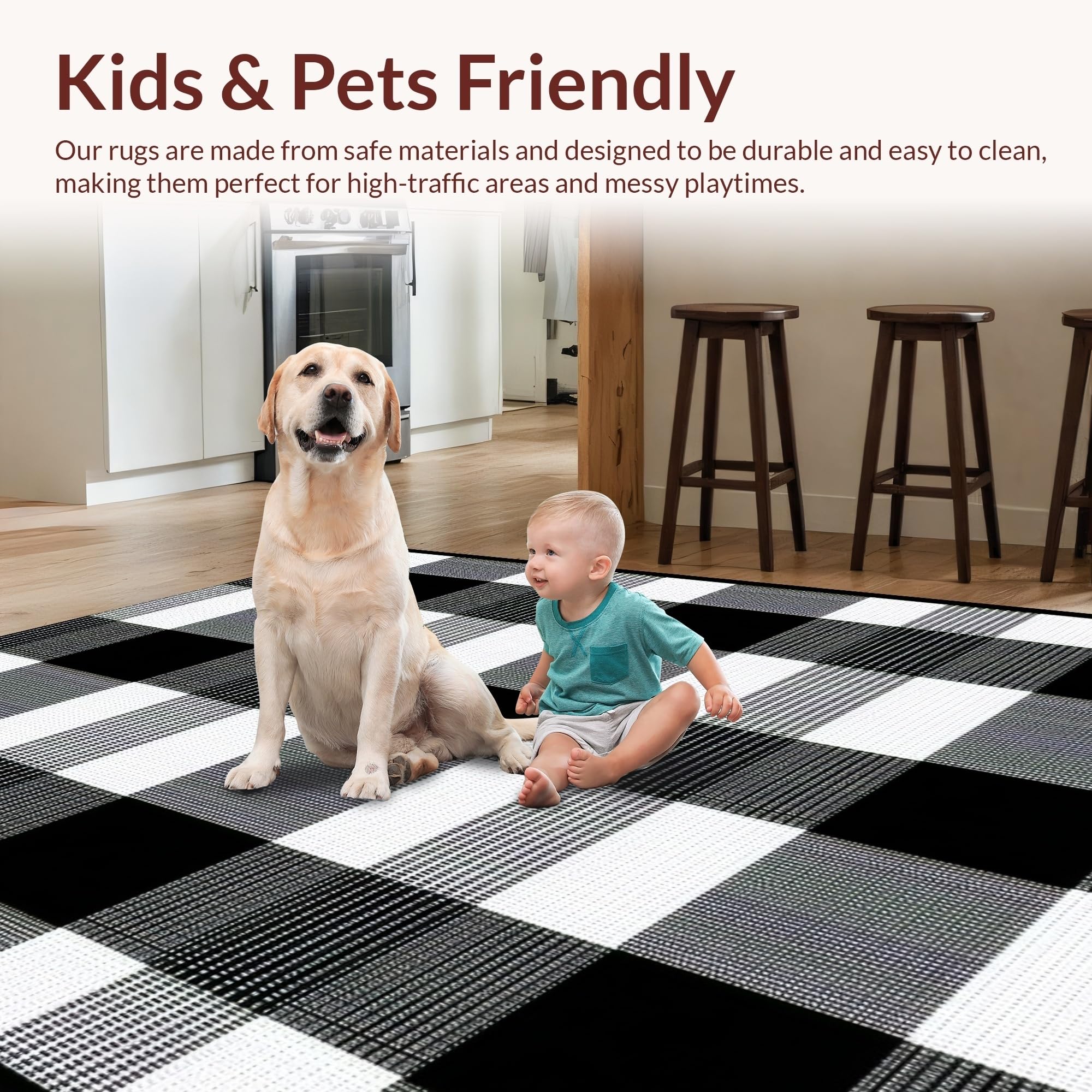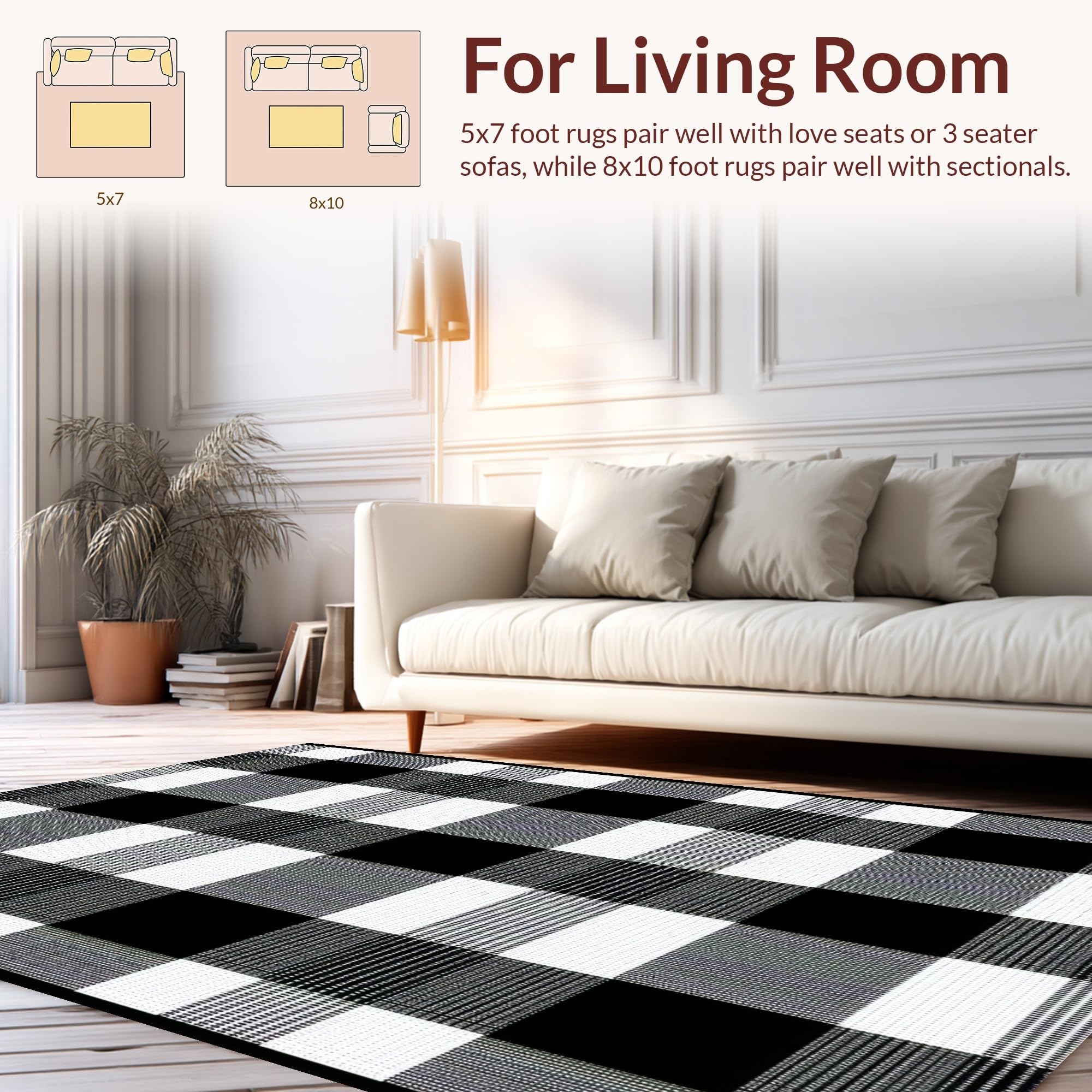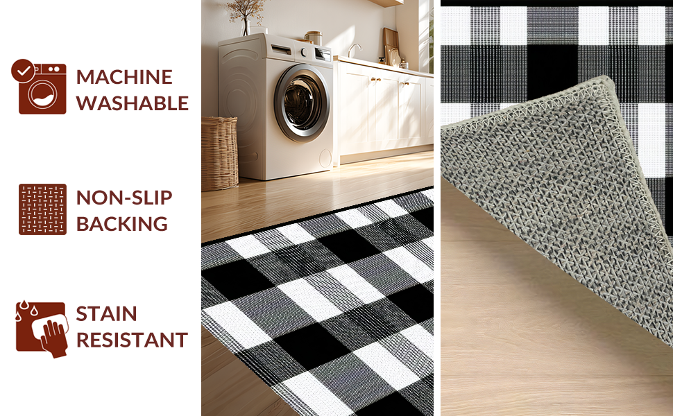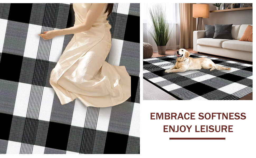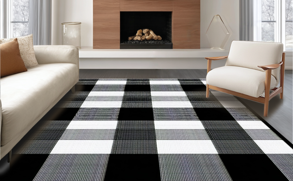 Ultra Soft Area Rug, Non Slip, Stain Resistant, Washable Area Rugs for Living Room, Bedroom, Sophisticated Graphical Plaid Element(Black) Overview:
