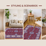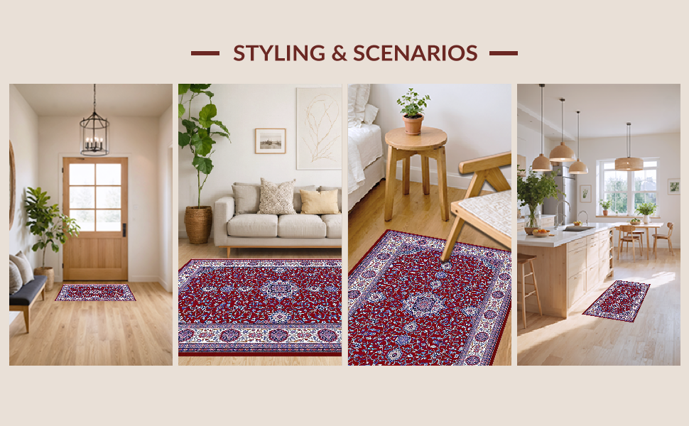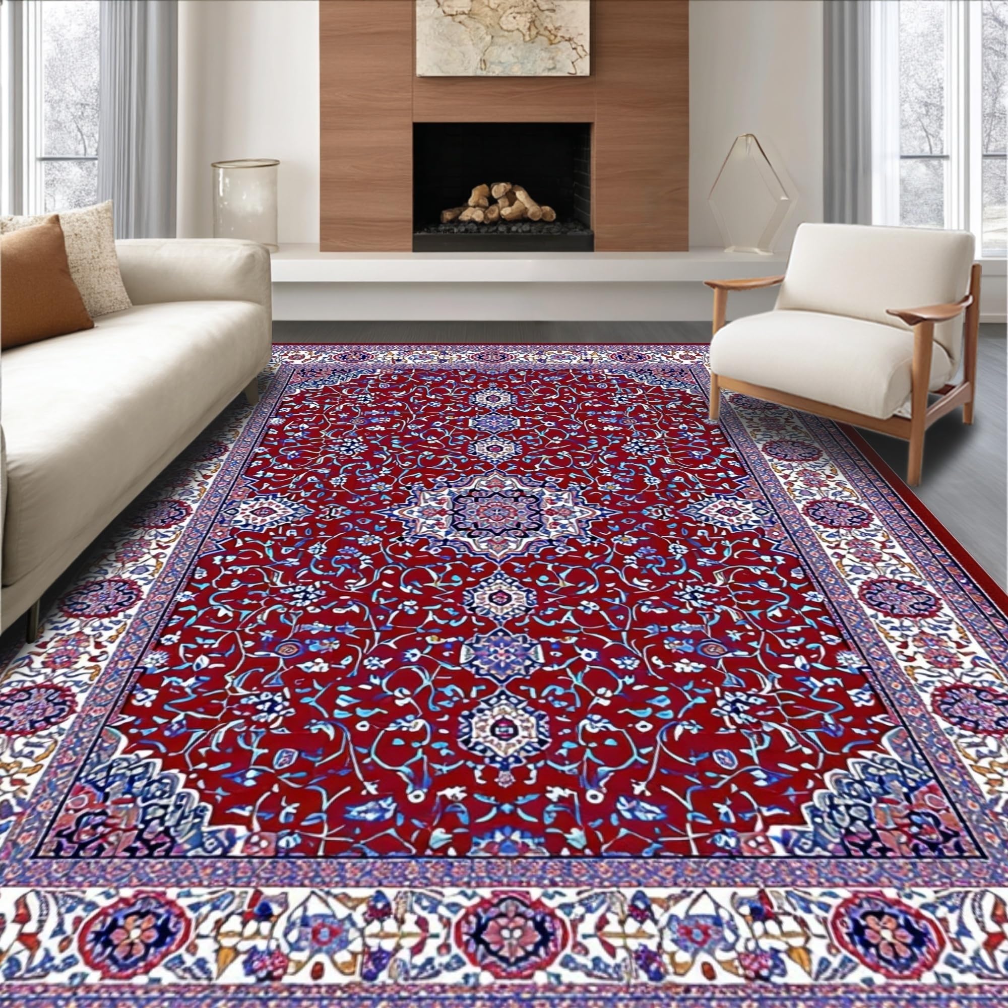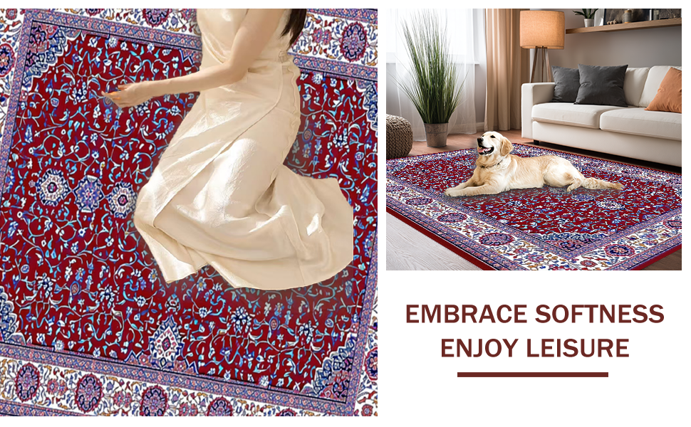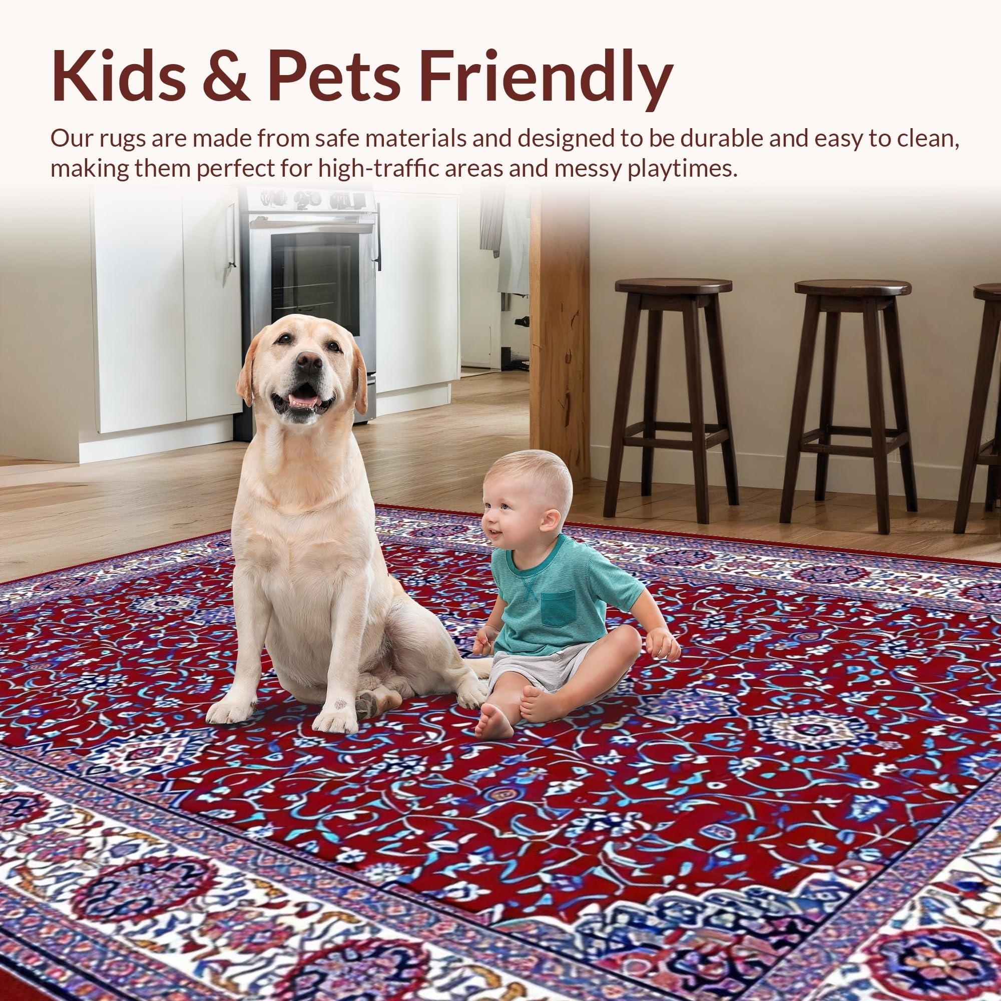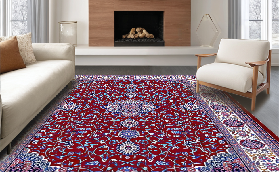 Ultra Soft Area Rug, Non Slip, Stain Resistant, Washable Area Rugs for Living Room, Bedroom, Sophisticated Lattice Floral Motif(Red) Overview:
