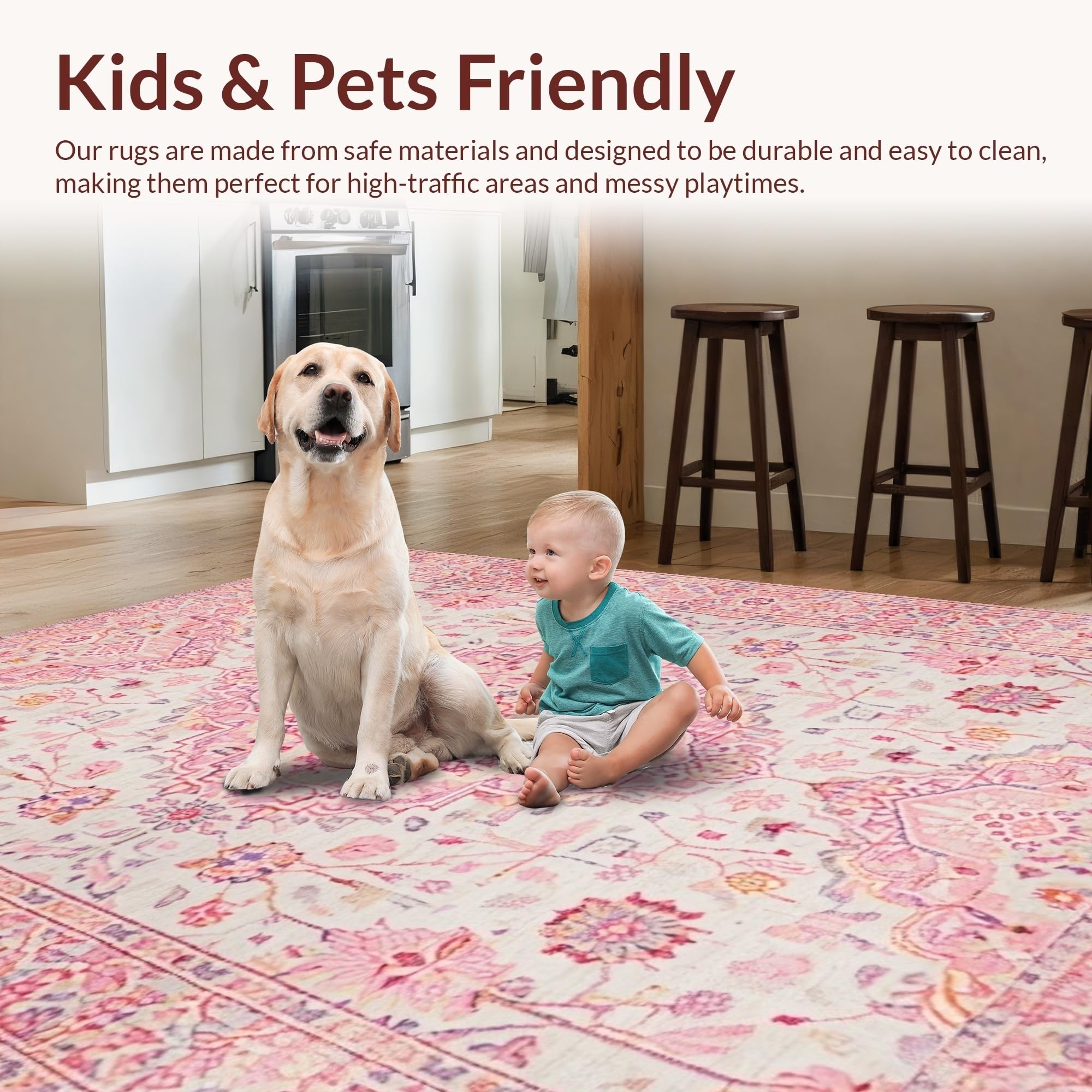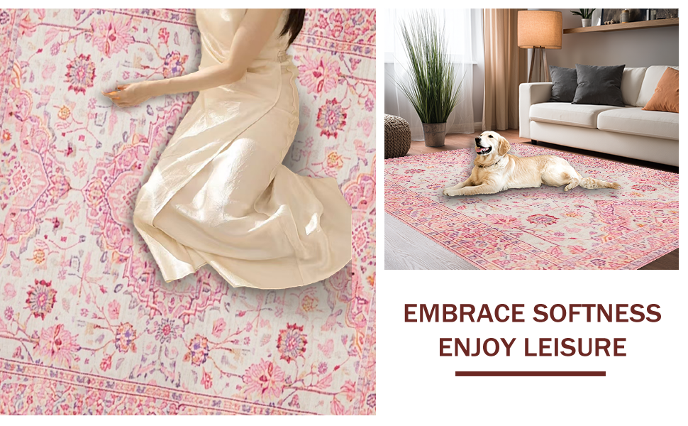 Ultra Soft Area Rug, Non Slip, Stain Resistant, Washable Area Rugs for Living Room, Bedroom, Sophisticated Light Pink Elegance(Pink) Overview: