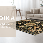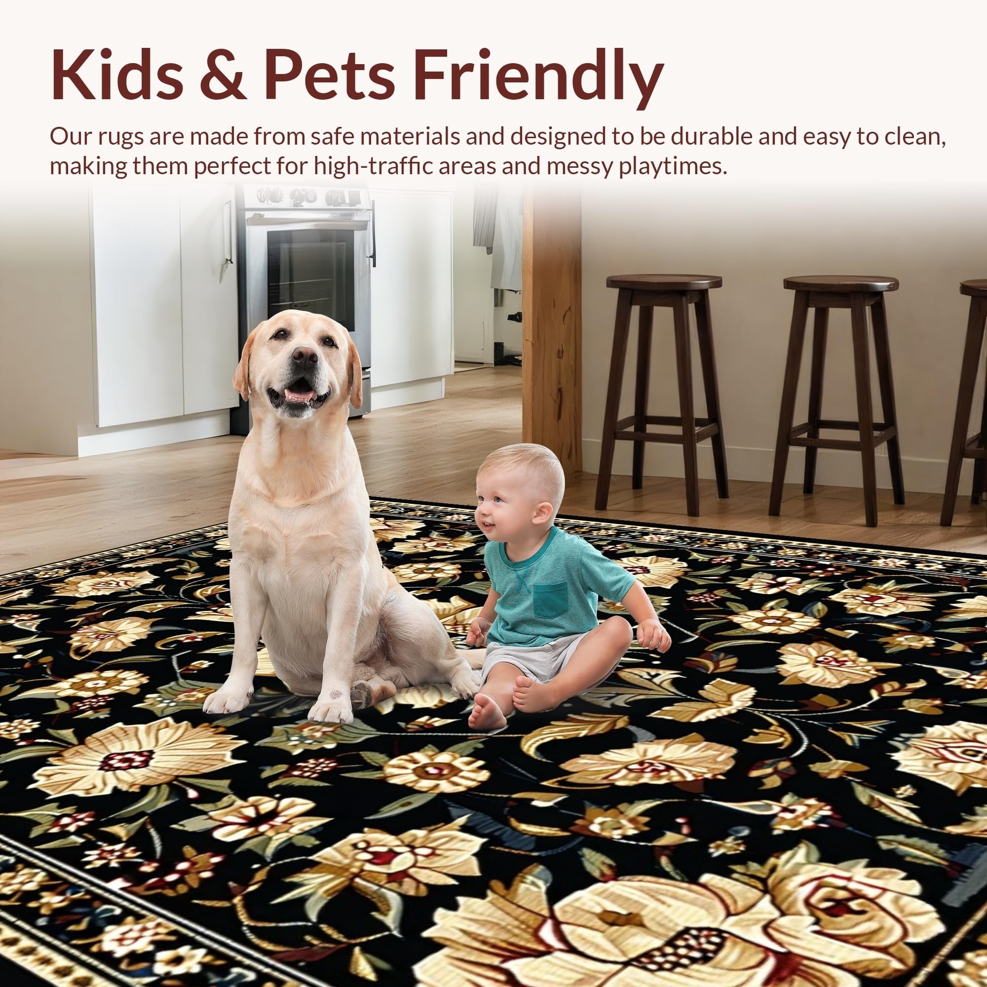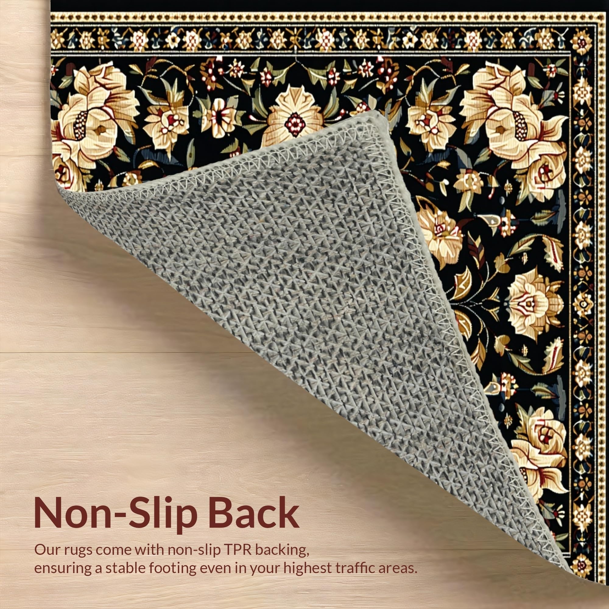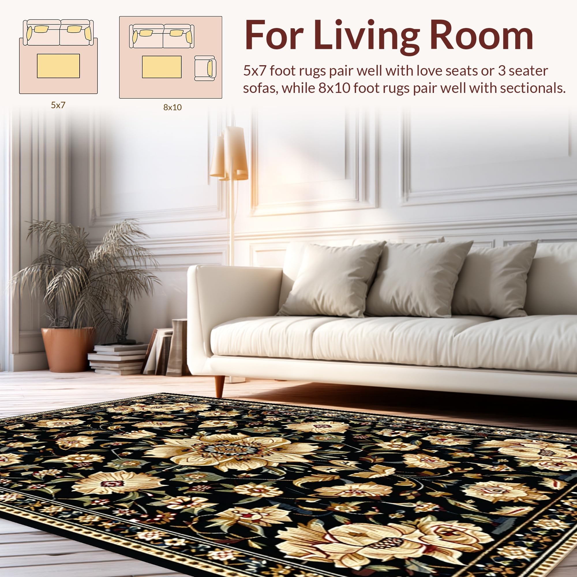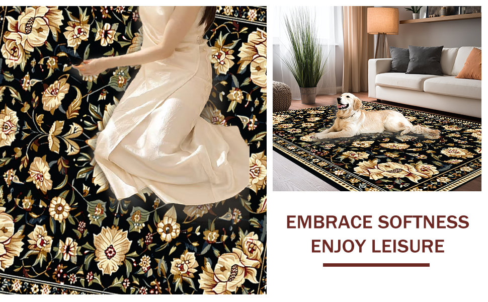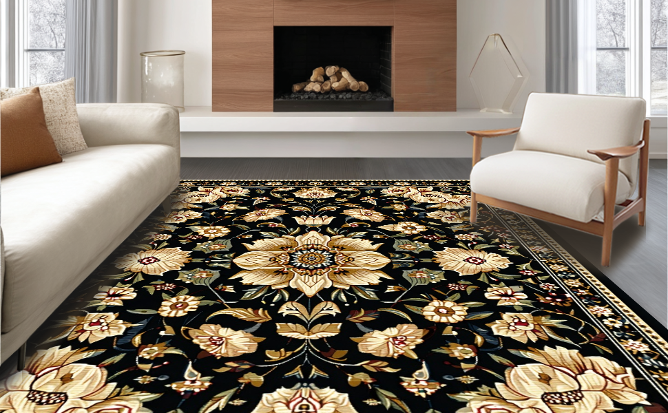Ultra Soft Area Rug, Non Slip, Stain Resistant, Washable Area Rugs for Living Room, Bedroom, Sophisticated Low-Key Petal Artwork(Black) Overview: