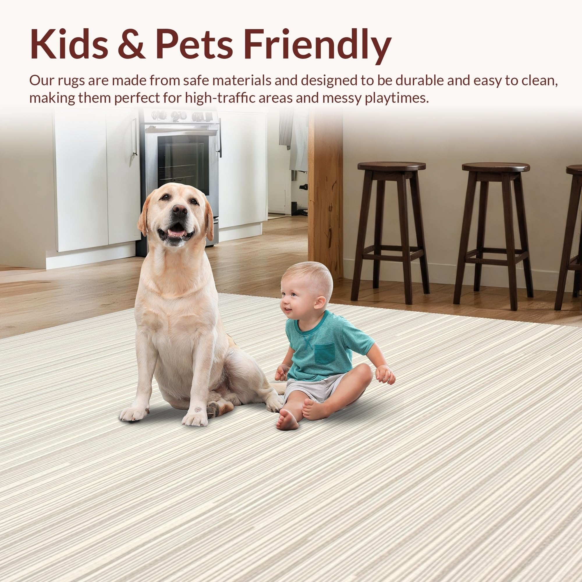 Ultra Soft Area Rug, Non Slip, Stain Resistant, Washable Area Rugs for Living Room, Bedroom, Sophisticated Modern Striped Appeal(Beige) Overview: