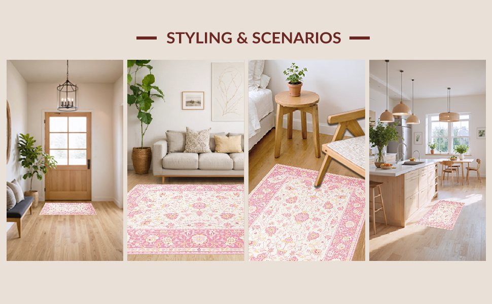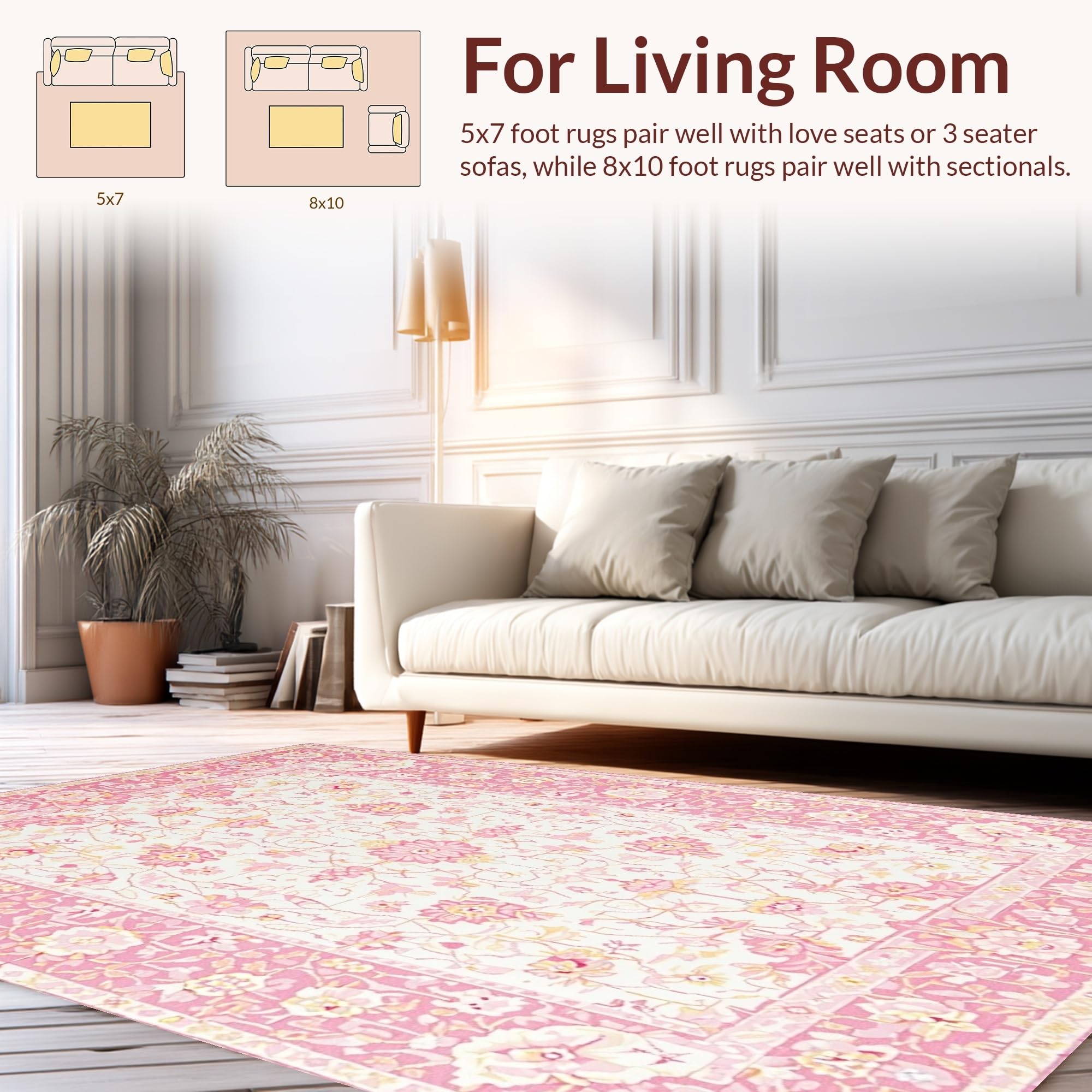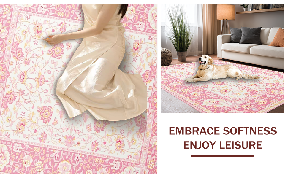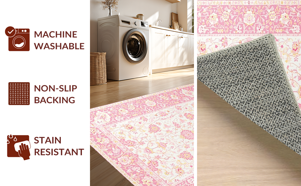 Ultra Soft Area Rug, Non Slip, Stain Resistant, Washable Area Rugs for Living Room, Bedroom, Sophisticated Modern Trellis Arrangement(Pink) Overview:
