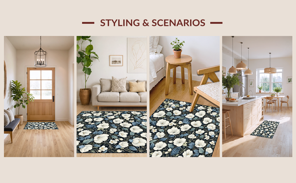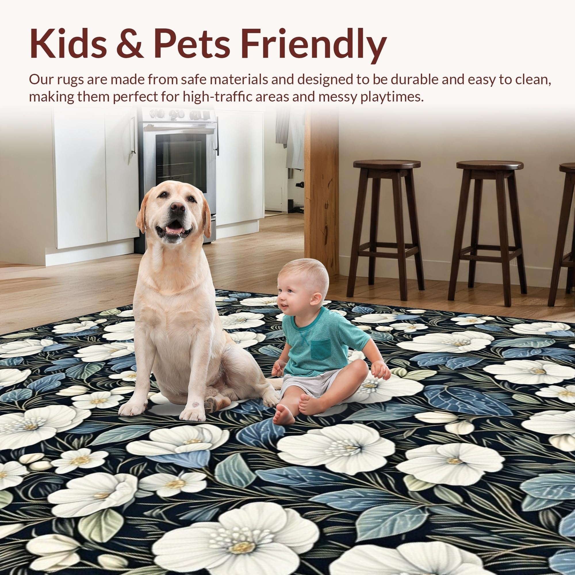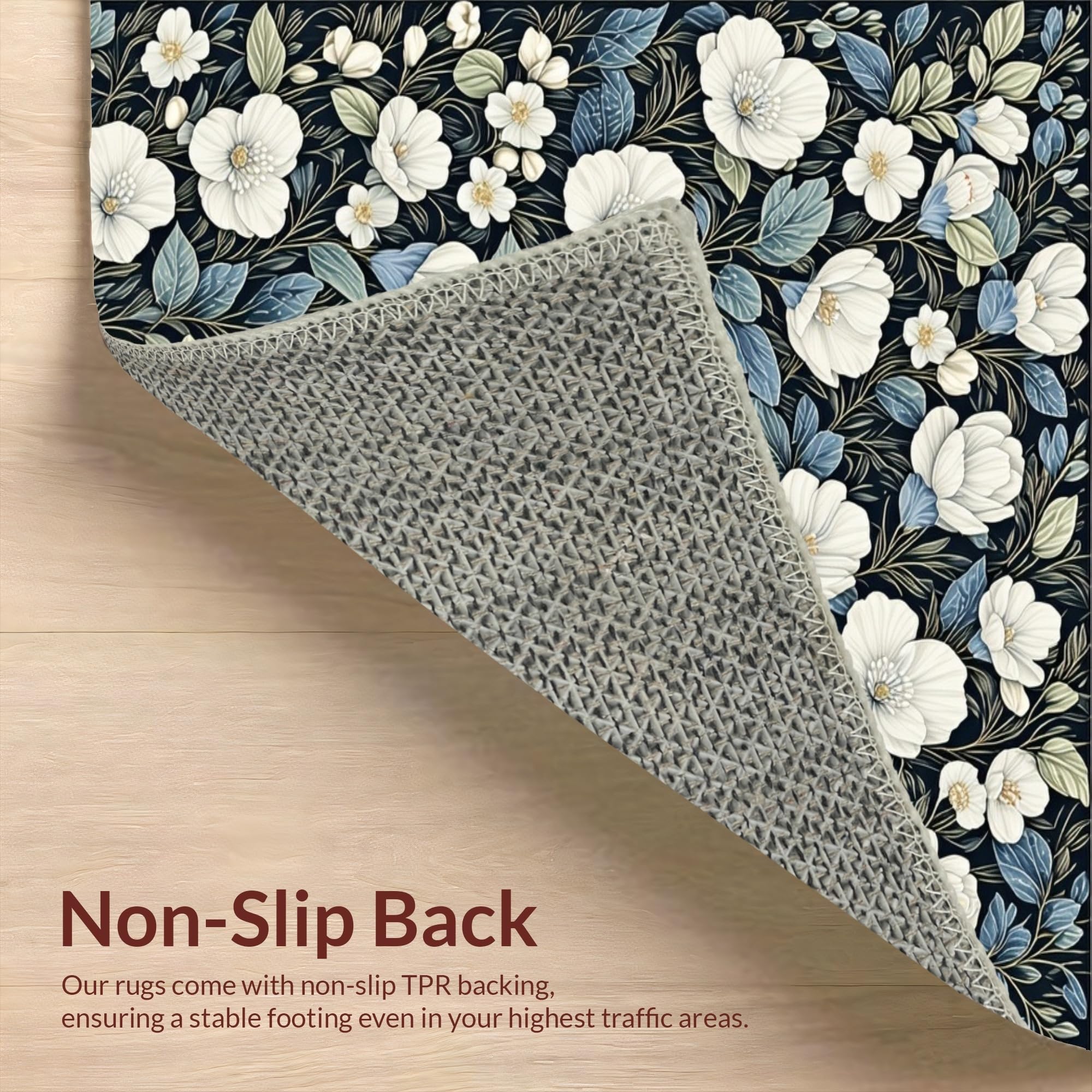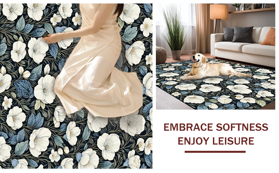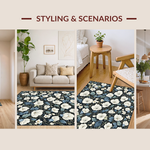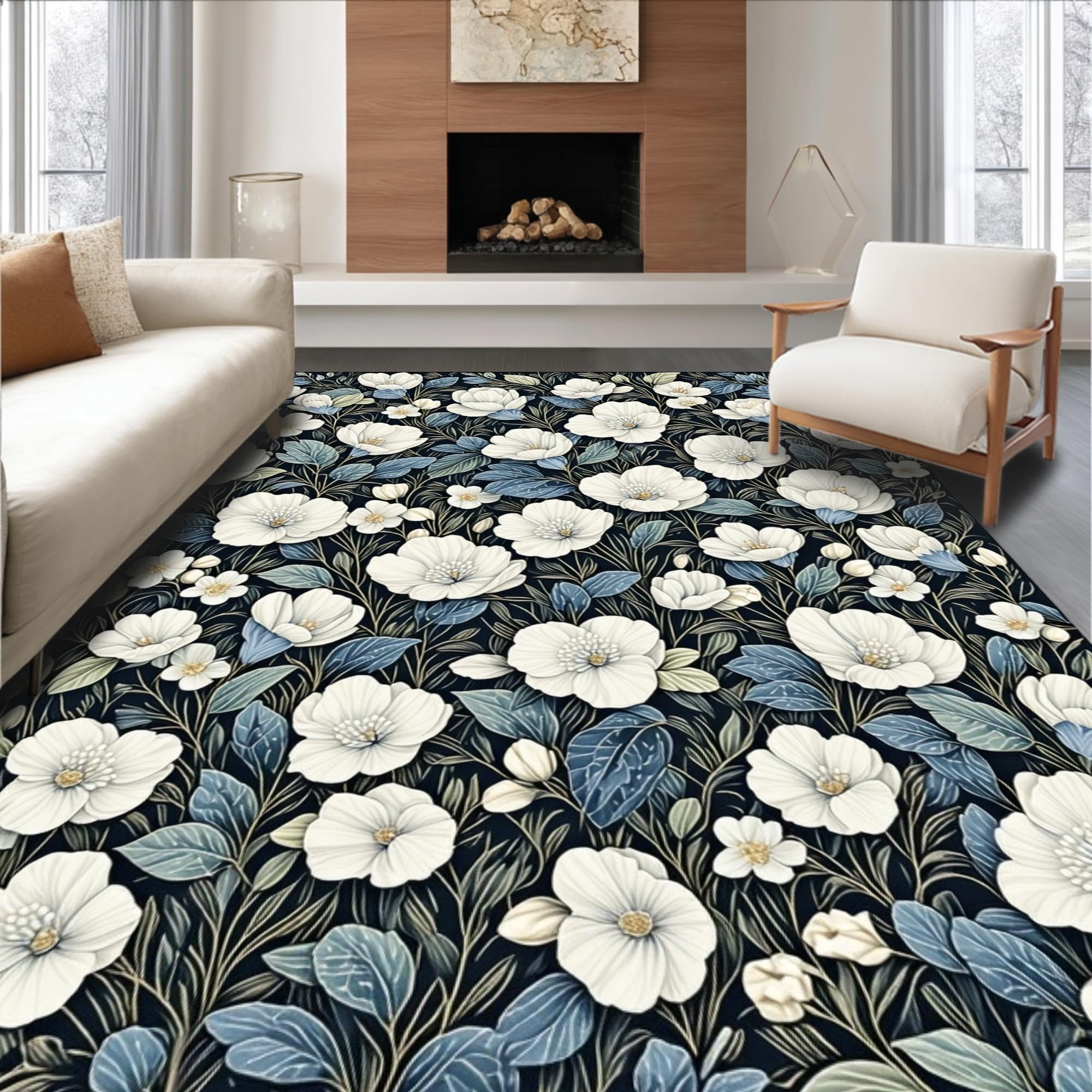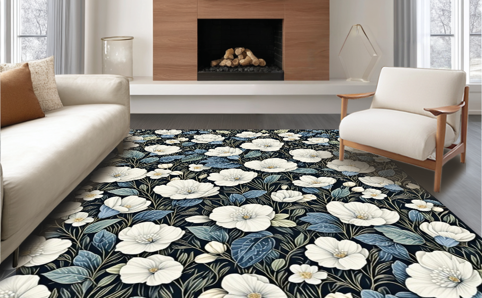 Ultra Soft Area Rug, Non Slip, Stain Resistant, Washable Area Rugs for Living Room, Bedroom, Sophisticated Monochrome Floral Touch(White) Overview: