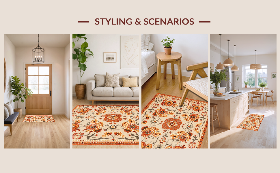 Ultra Soft Area Rug, Non Slip, Stain Resistant, Washable Area Rugs for Living Room, Bedroom, Sophisticated Multicolor Curved Design(Beige) Overview: