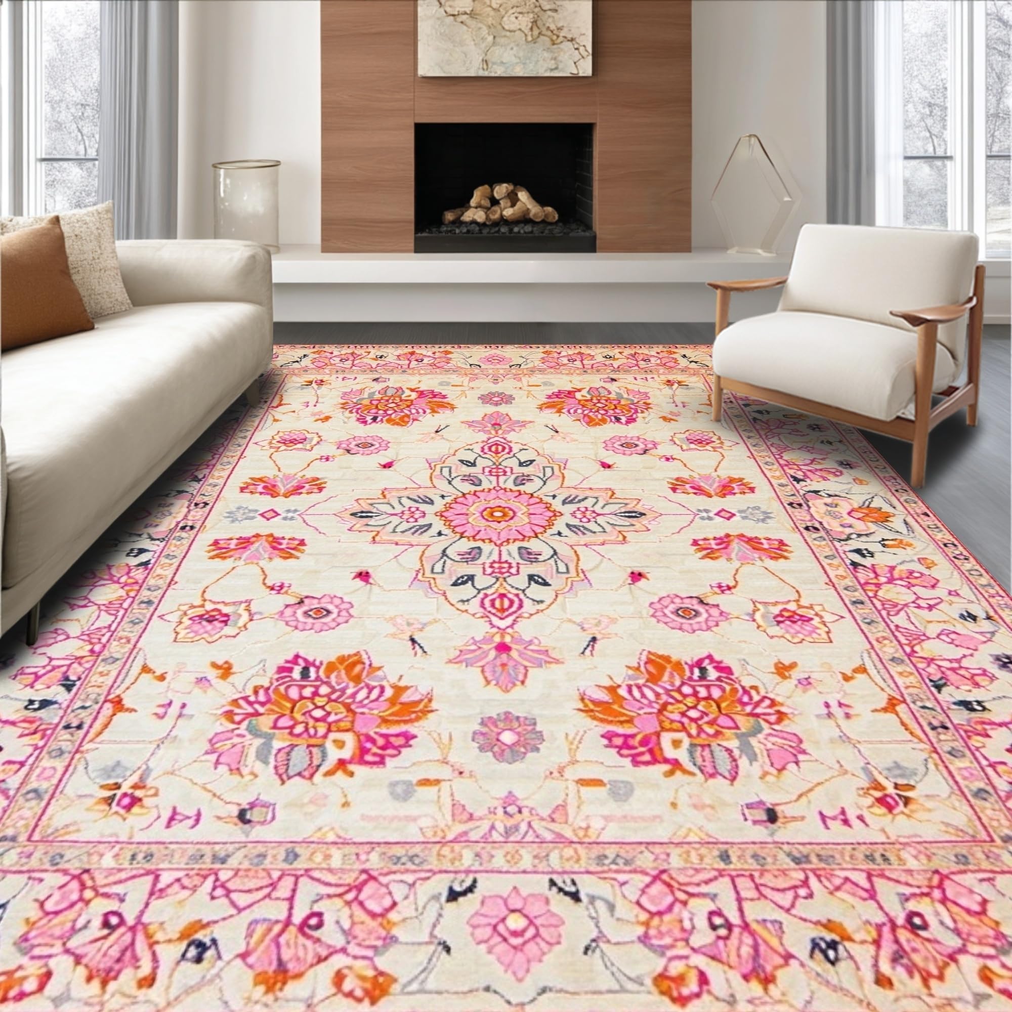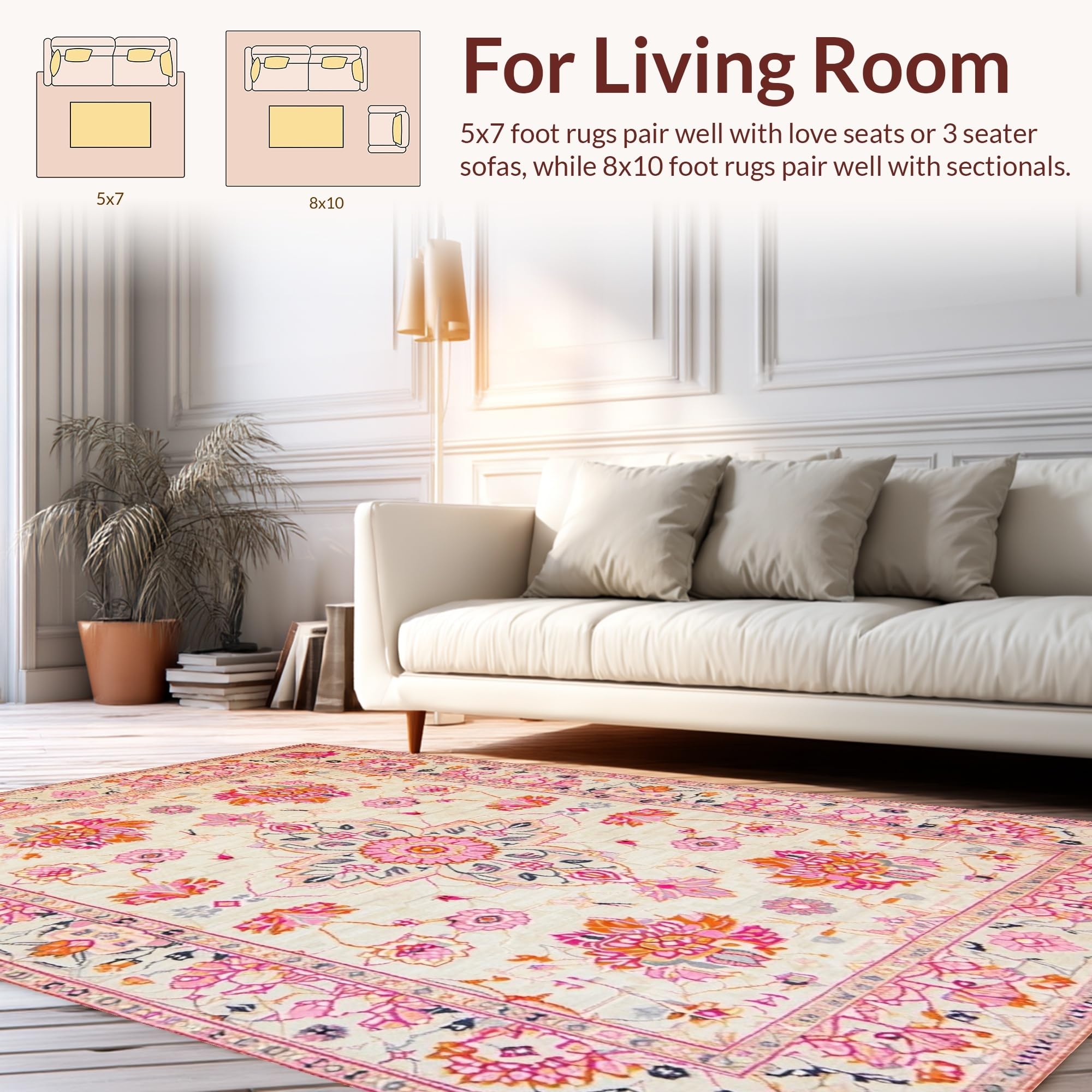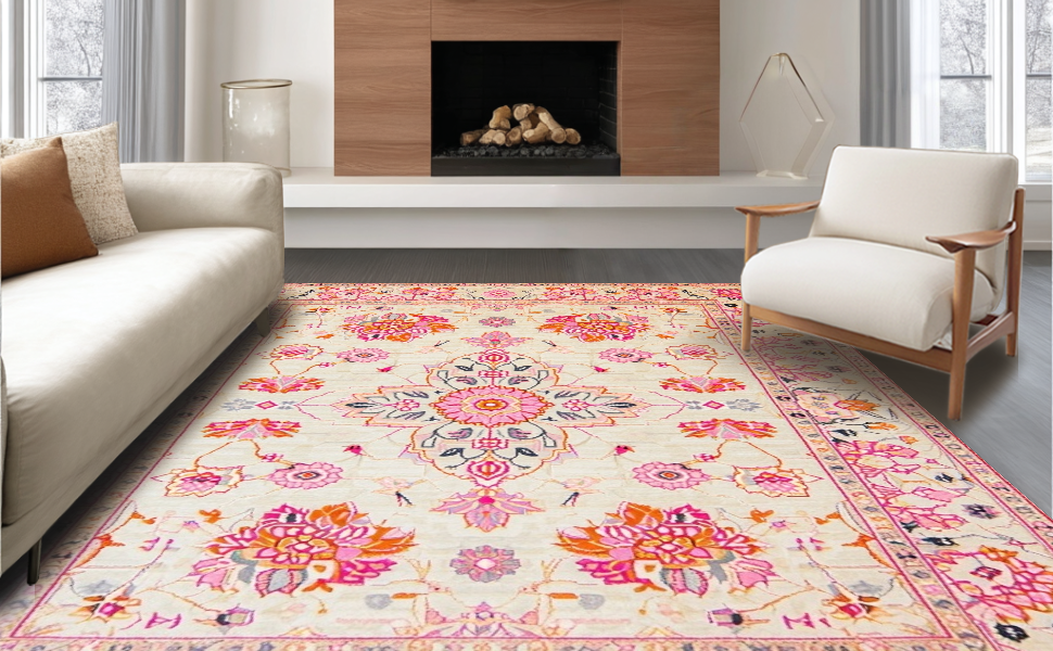 Ultra Soft Area Rug, Non Slip, Stain Resistant, Washable Area Rugs for Living Room, Bedroom, Sophisticated Neutral Floral Fusion(Ivory) Overview: