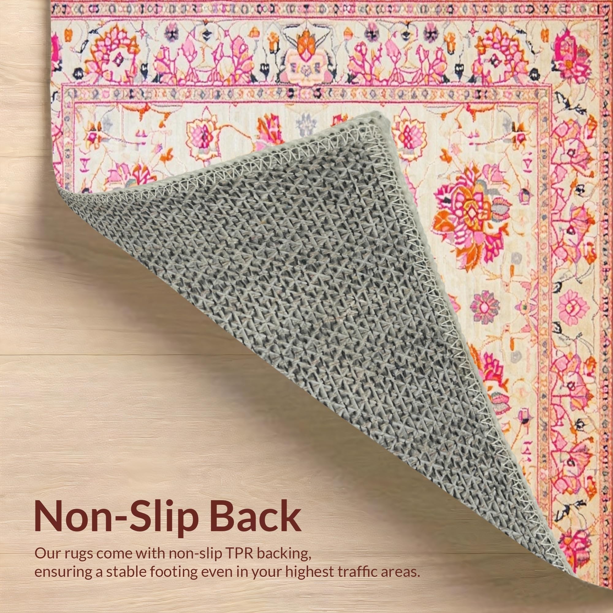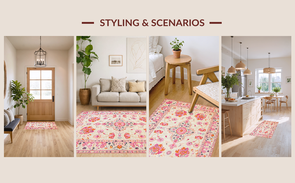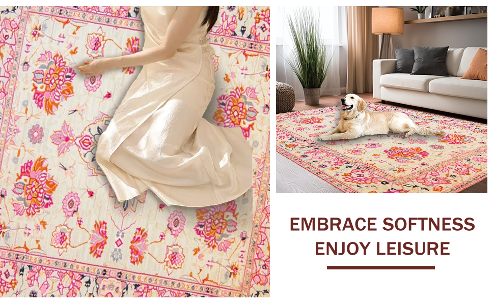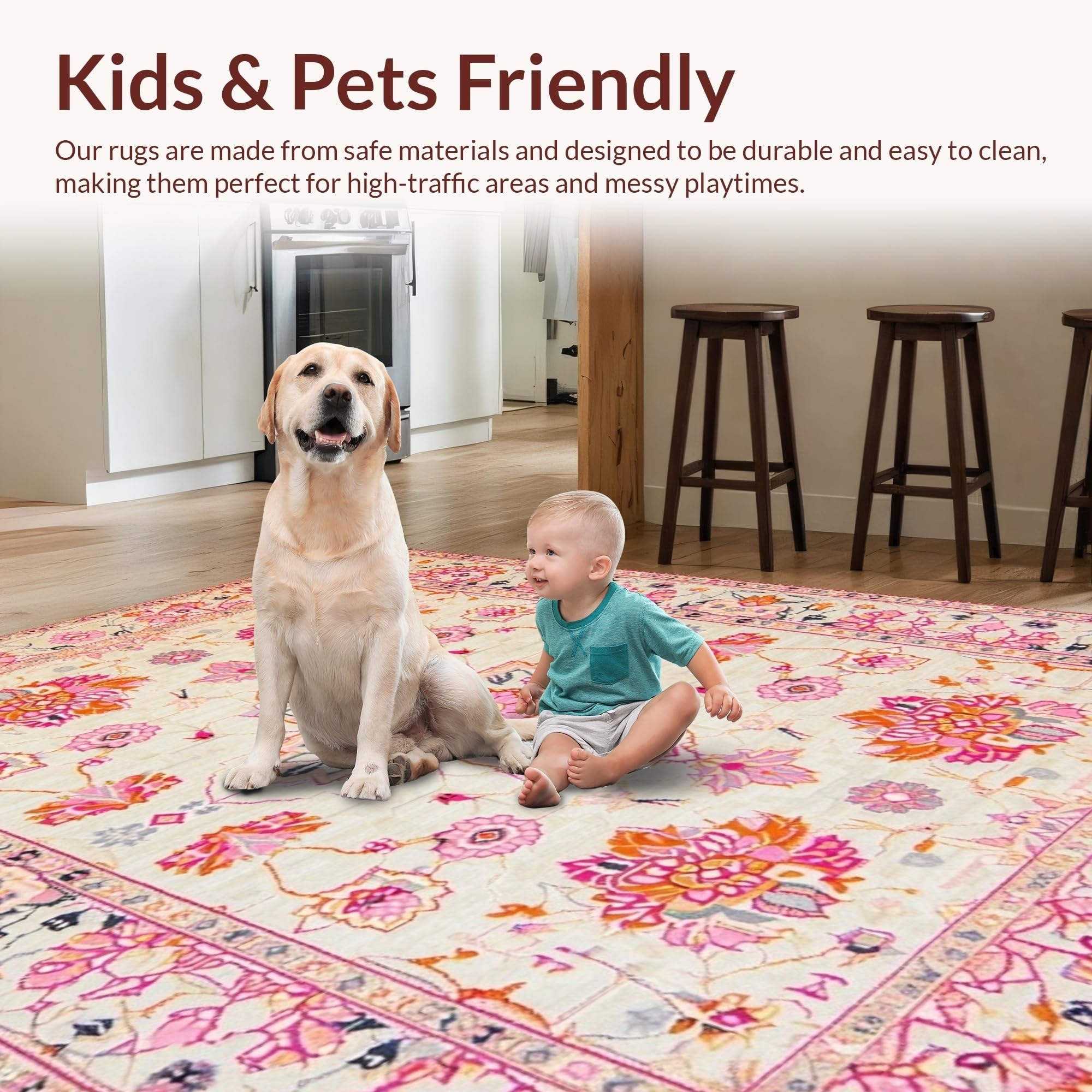 Ultra Soft Area Rug, Non Slip, Stain Resistant, Washable Area Rugs for Living Room, Bedroom, Sophisticated Neutral Floral Fusion(Ivory) Overview: