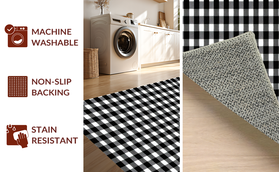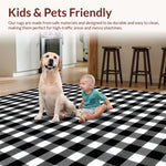Ultra Soft Area Rug, Non Slip, Stain Resistant, Washable Area Rugs for Living Room, Bedroom, Sophisticated Neutral Tiled Design(Black) Overview: