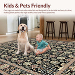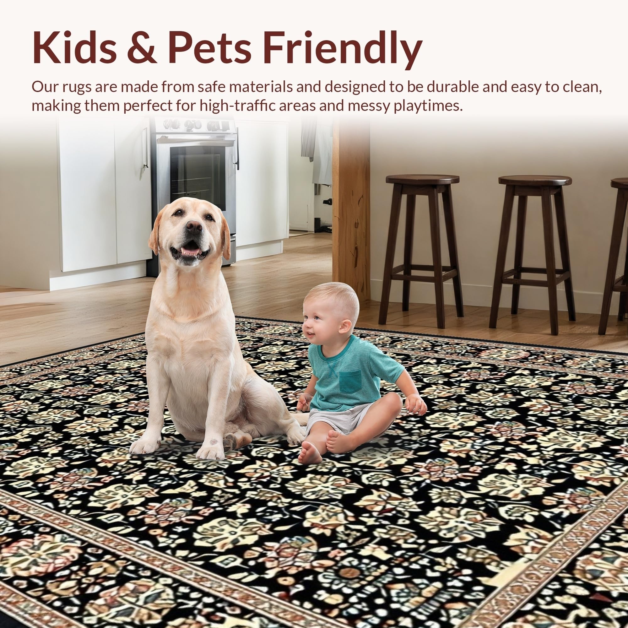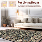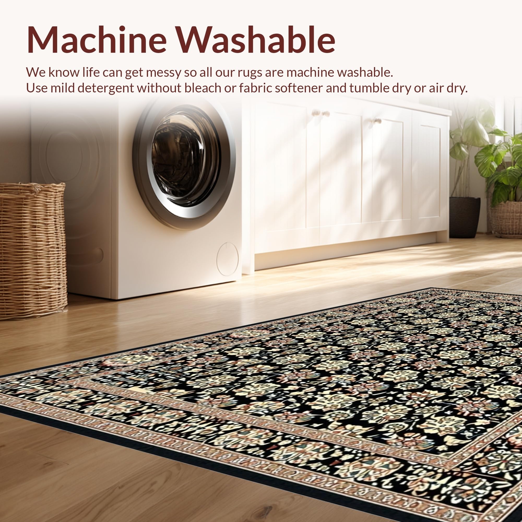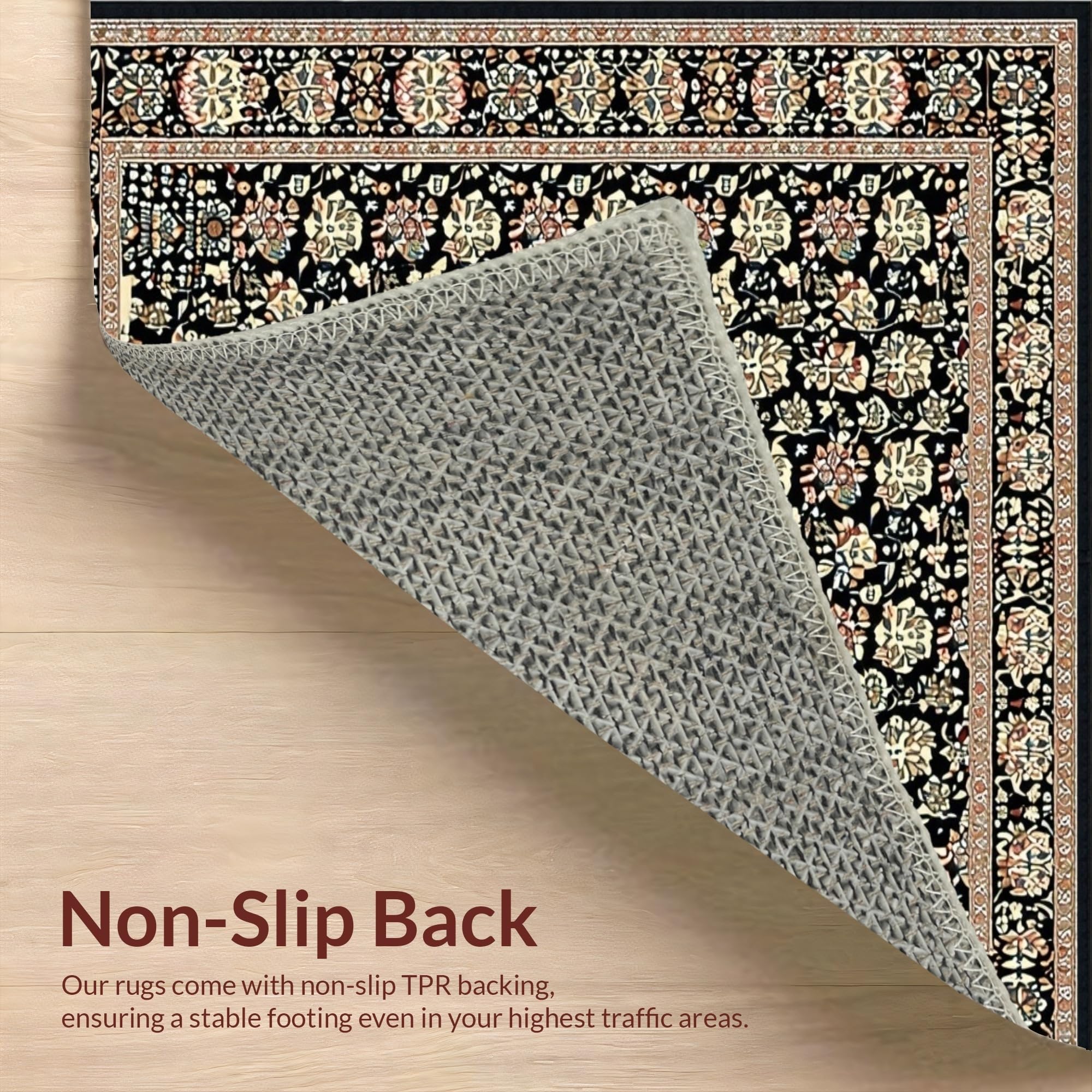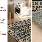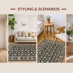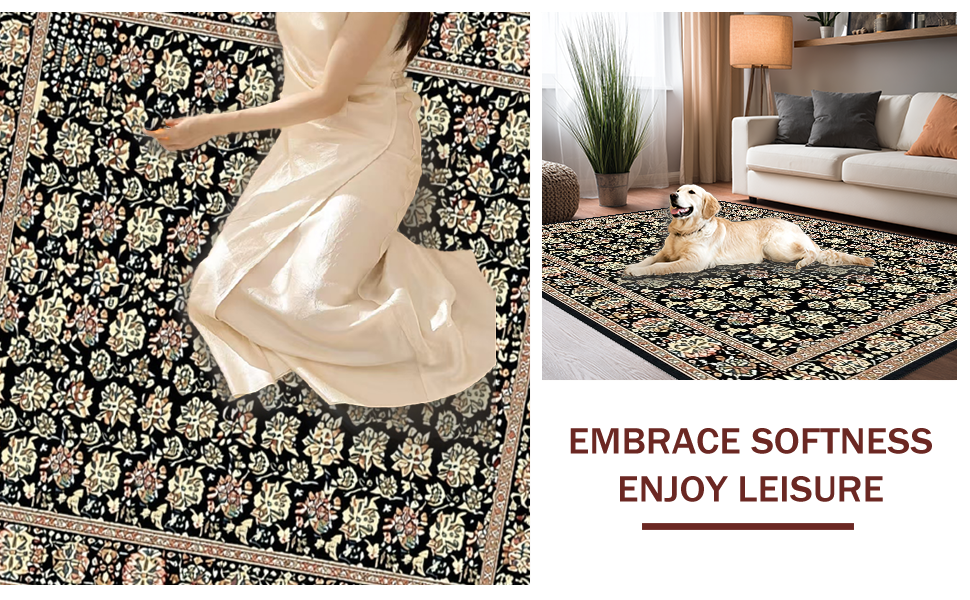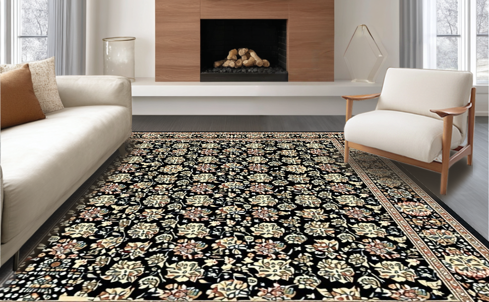 Ultra Soft Area Rug, Non Slip, Stain Resistant, Washable Area Rugs for Living Room, Bedroom, Sophisticated Neutral Toned Blooms(Black) Overview: