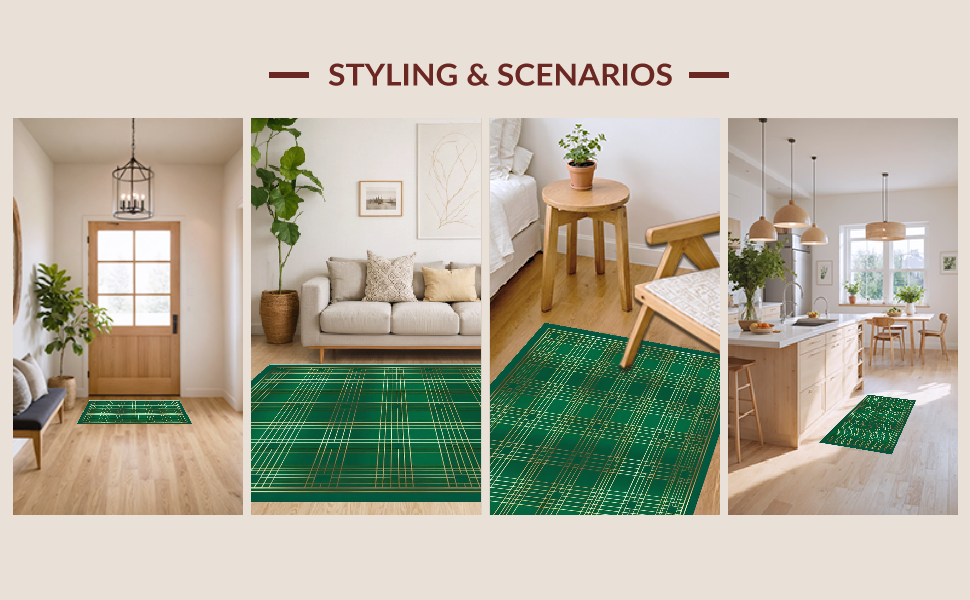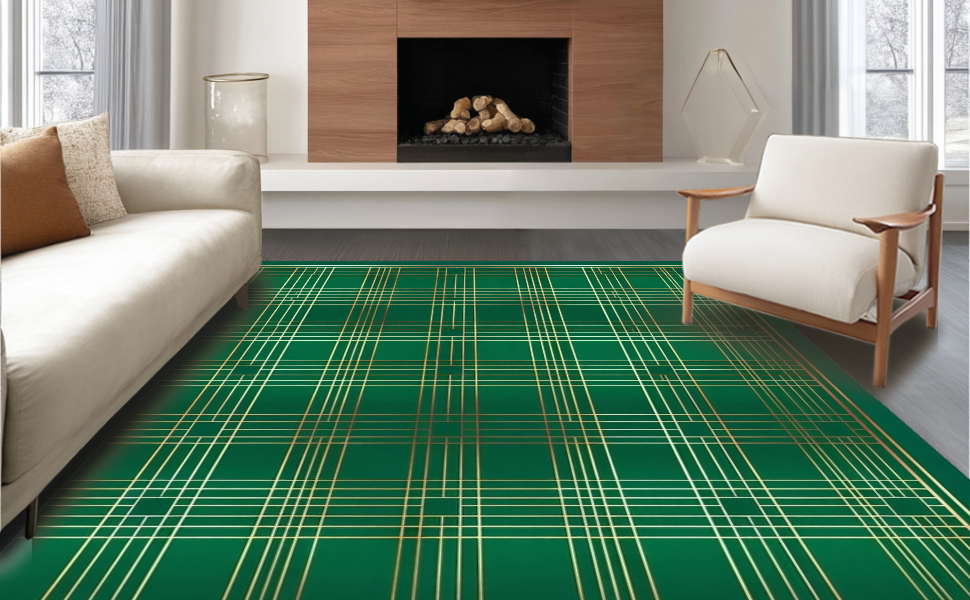 Ultra Soft Area Rug, Non Slip, Stain Resistant, Washable Area Rugs for Living Room, Bedroom, Sophisticated Ogee Pattern Play(Green) Overview:
