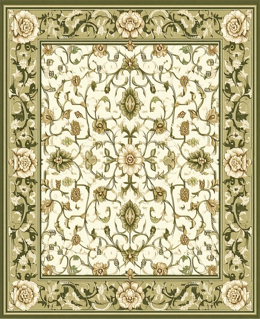Sophisticated Olive with Detailed Scrollwork and Floral Motifs(Beige)