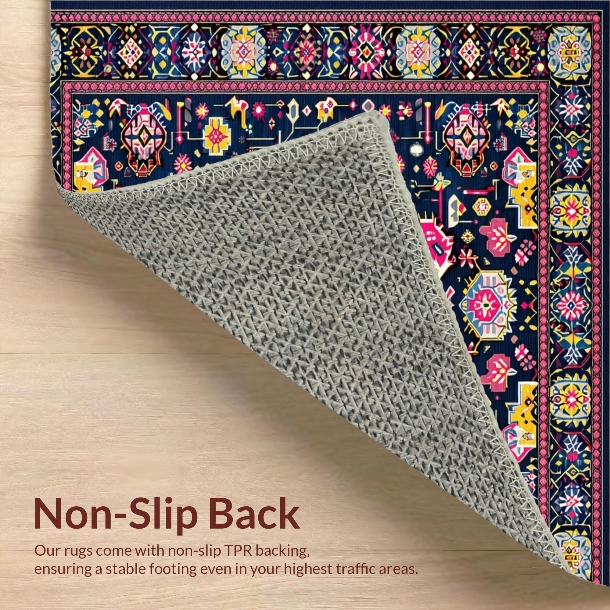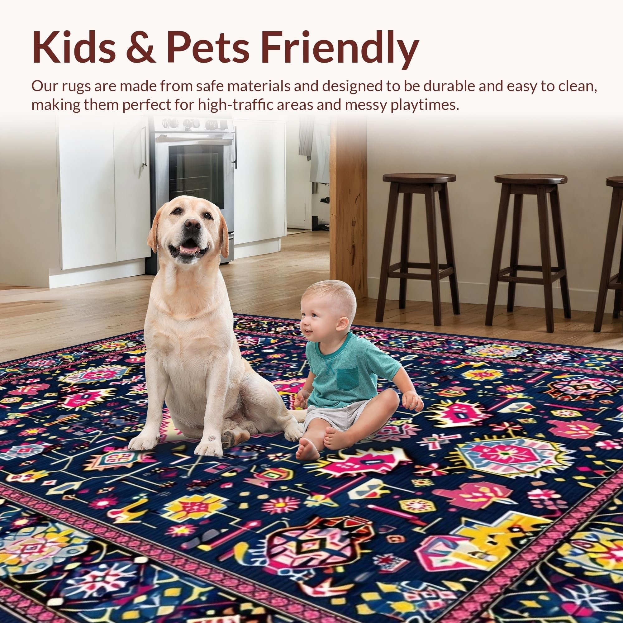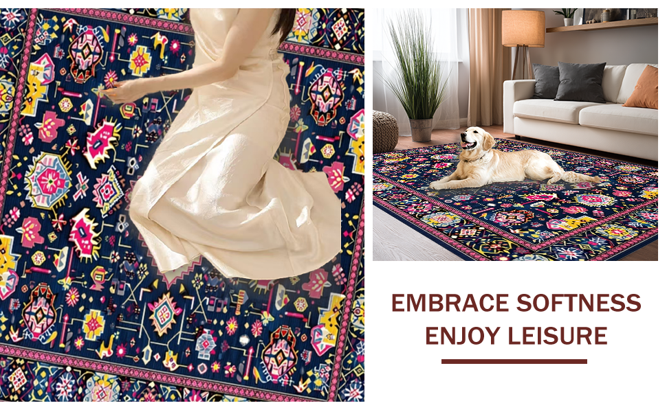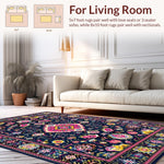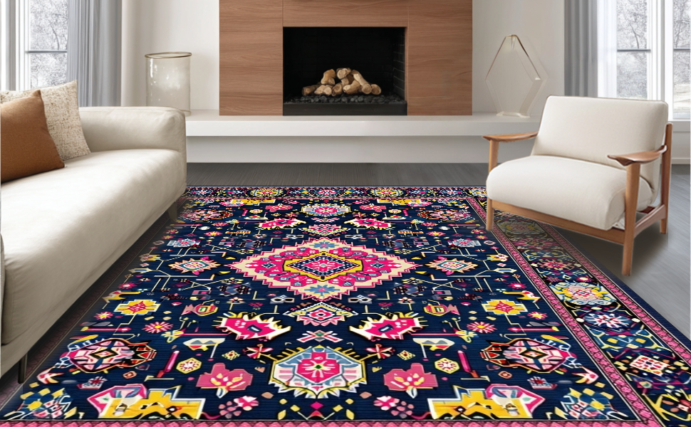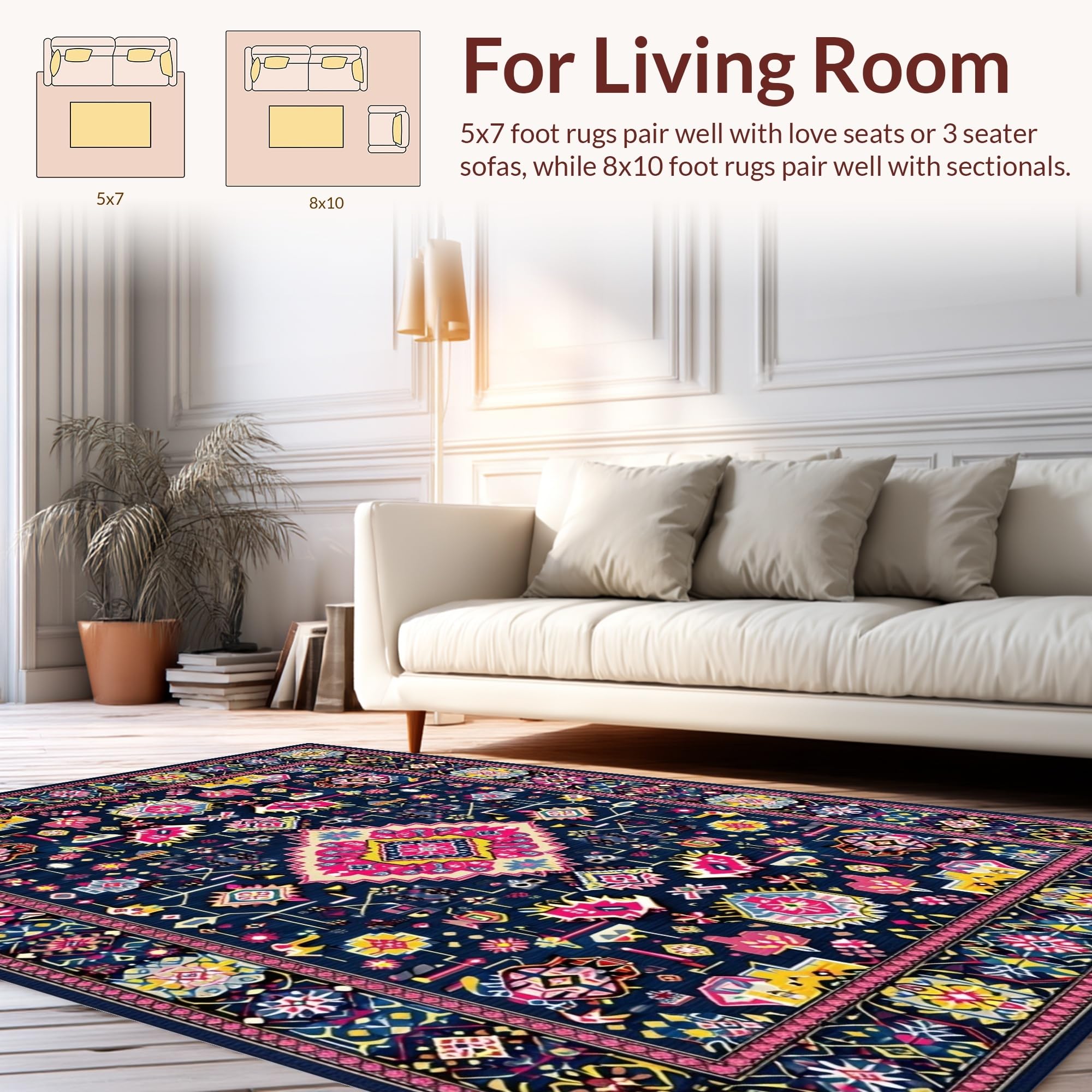 Ultra Soft Area Rug, Non Slip, Stain Resistant, Washable Area Rugs for Living Room, Bedroom, Sophisticated Oushak Inspired Aesthetic(Blue) Overview: