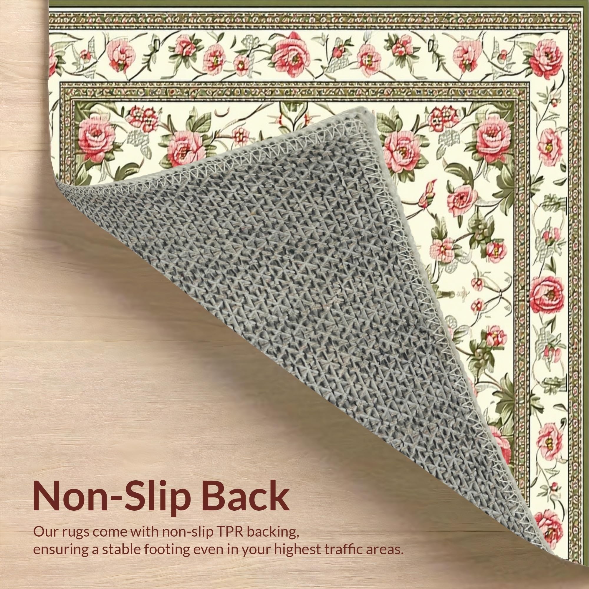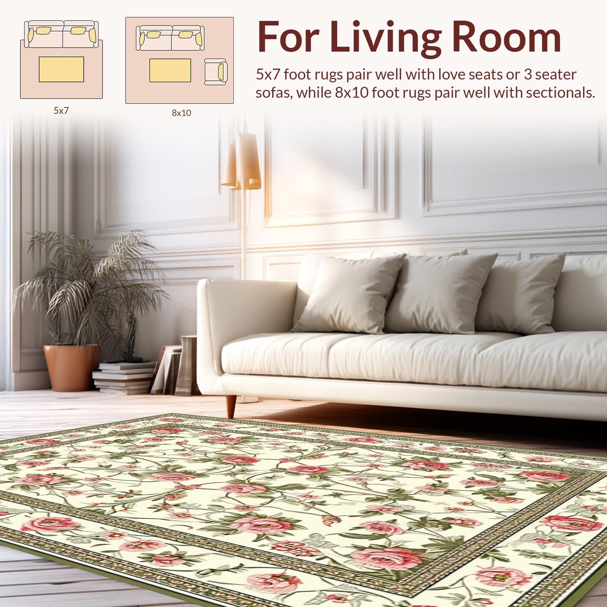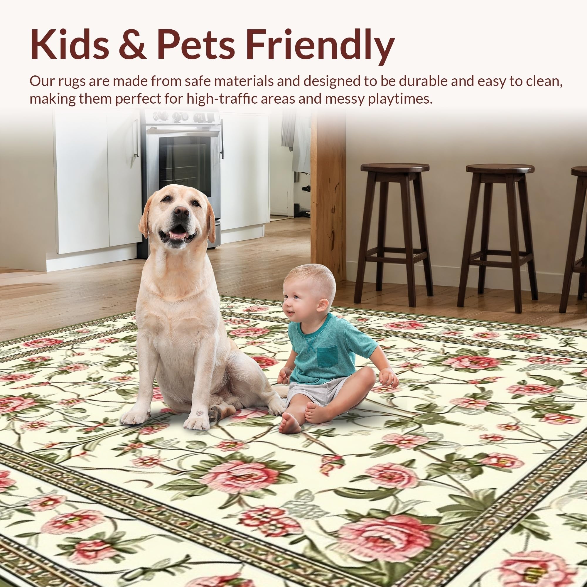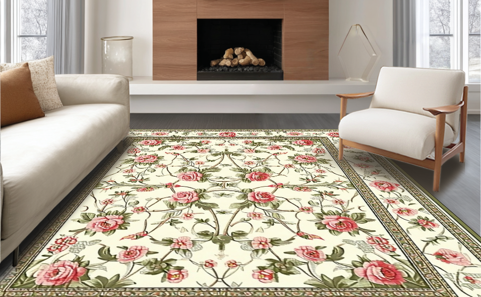 Ultra Soft Area Rug, Non Slip, Stain Resistant, Washable Area Rugs for Living Room, Bedroom, Sophisticated Pastel Bloom Composition(Beige) Overview: