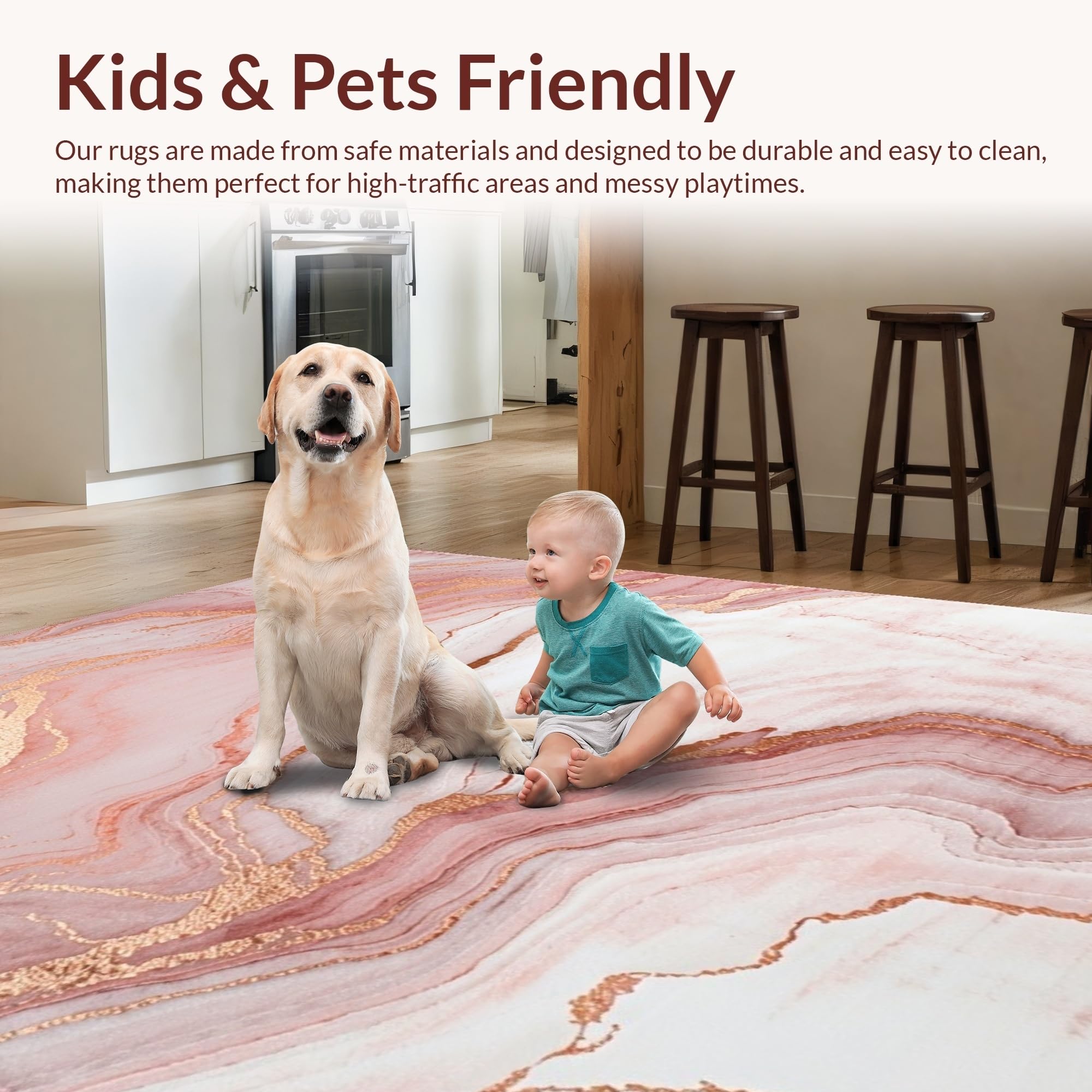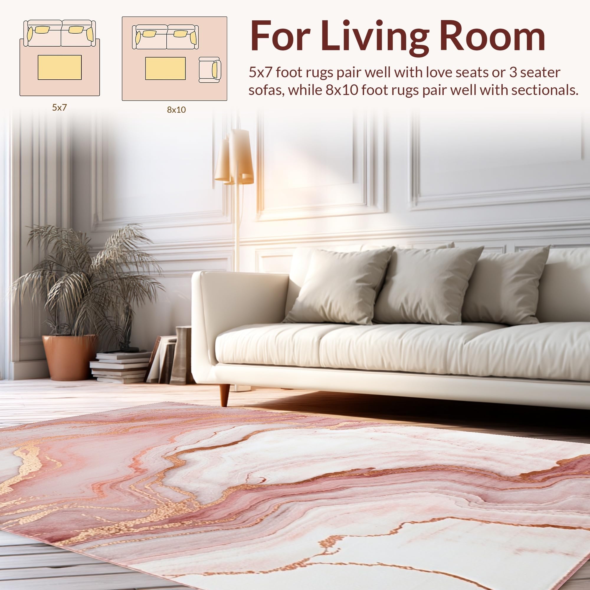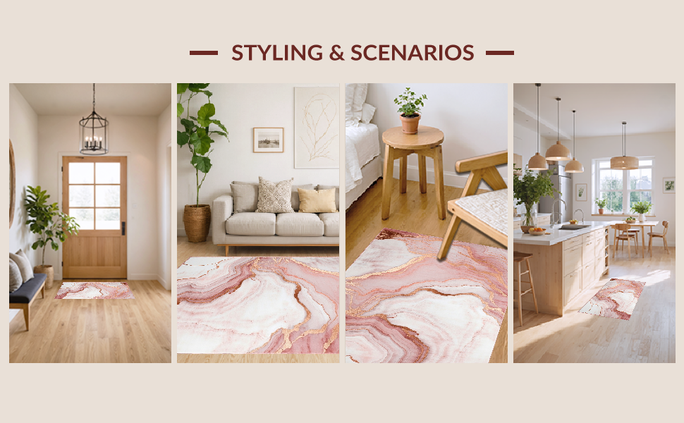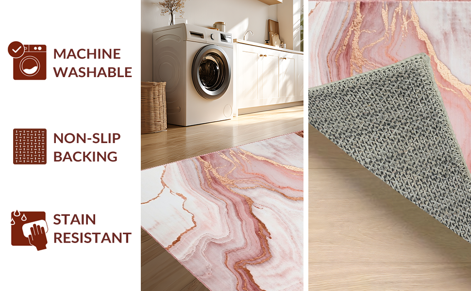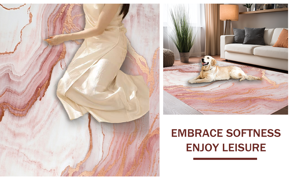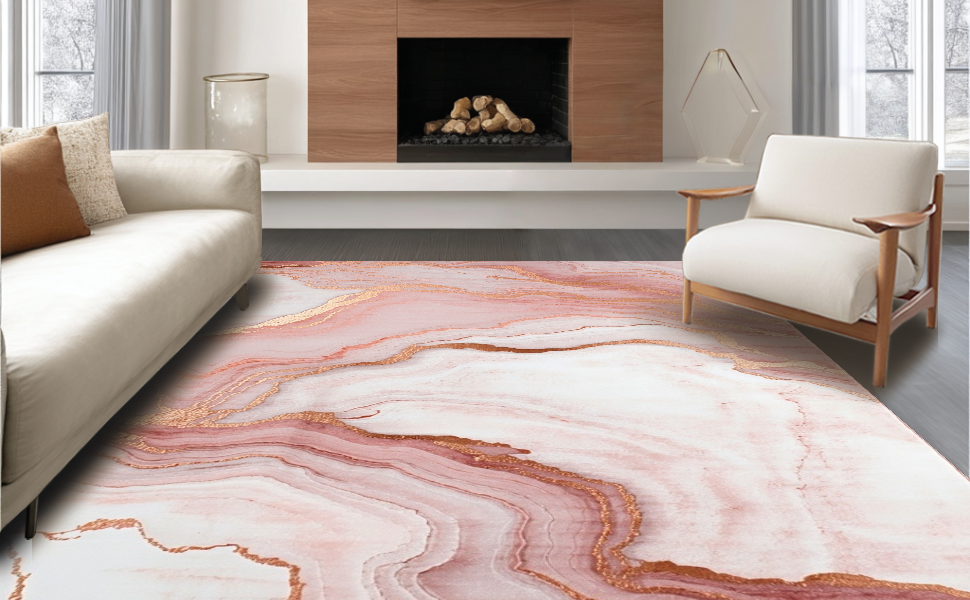 Ultra Soft Area Rug, Non Slip, Stain Resistant, Washable Area Rugs for Living Room, Bedroom, Sophisticated Pink and Gold Aesthetics(Pink) Overview:
