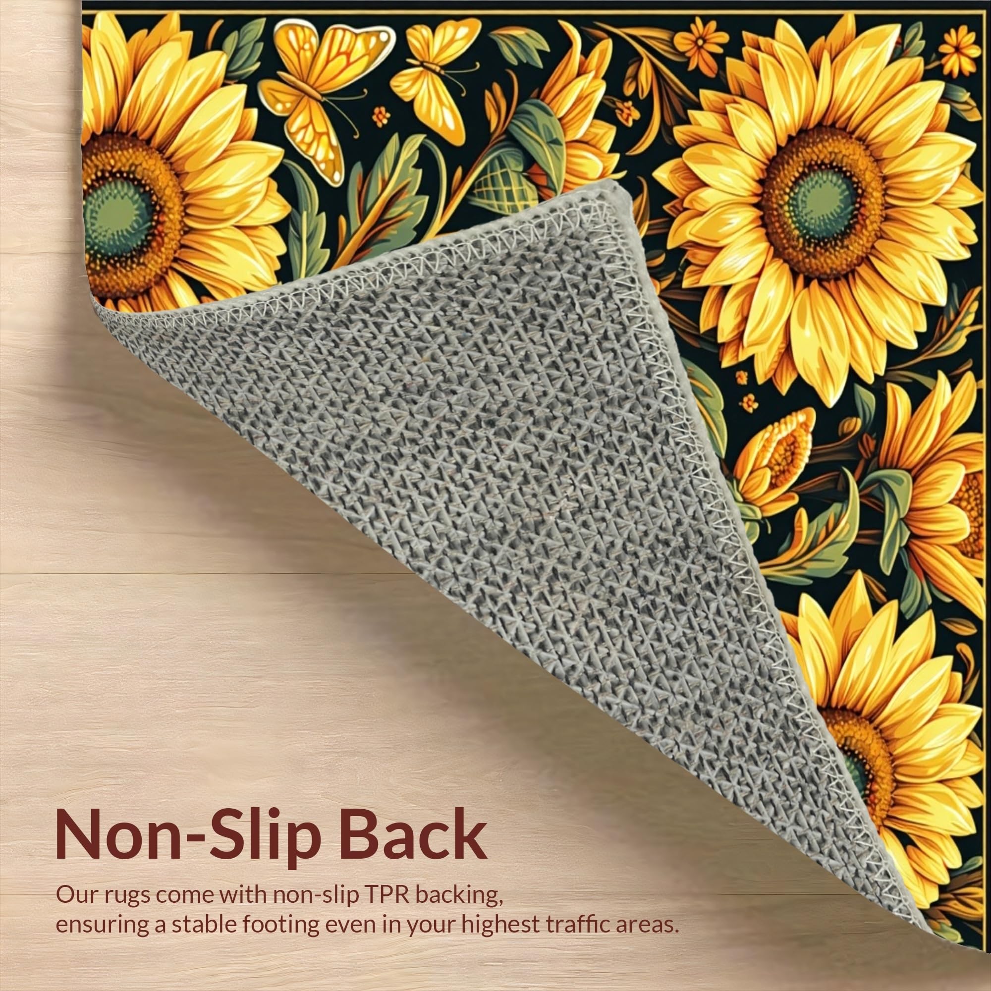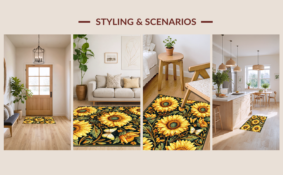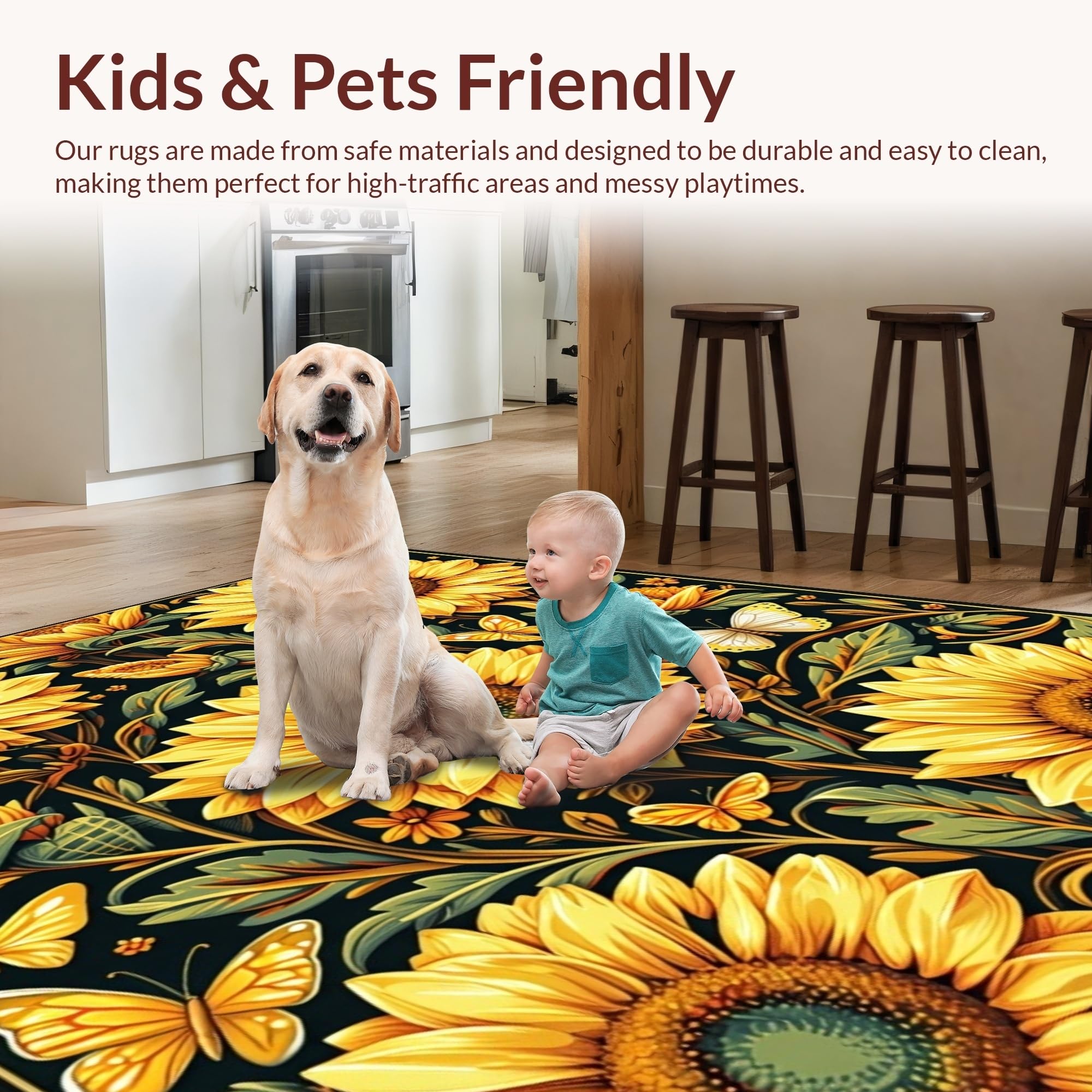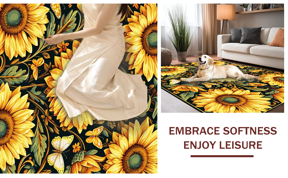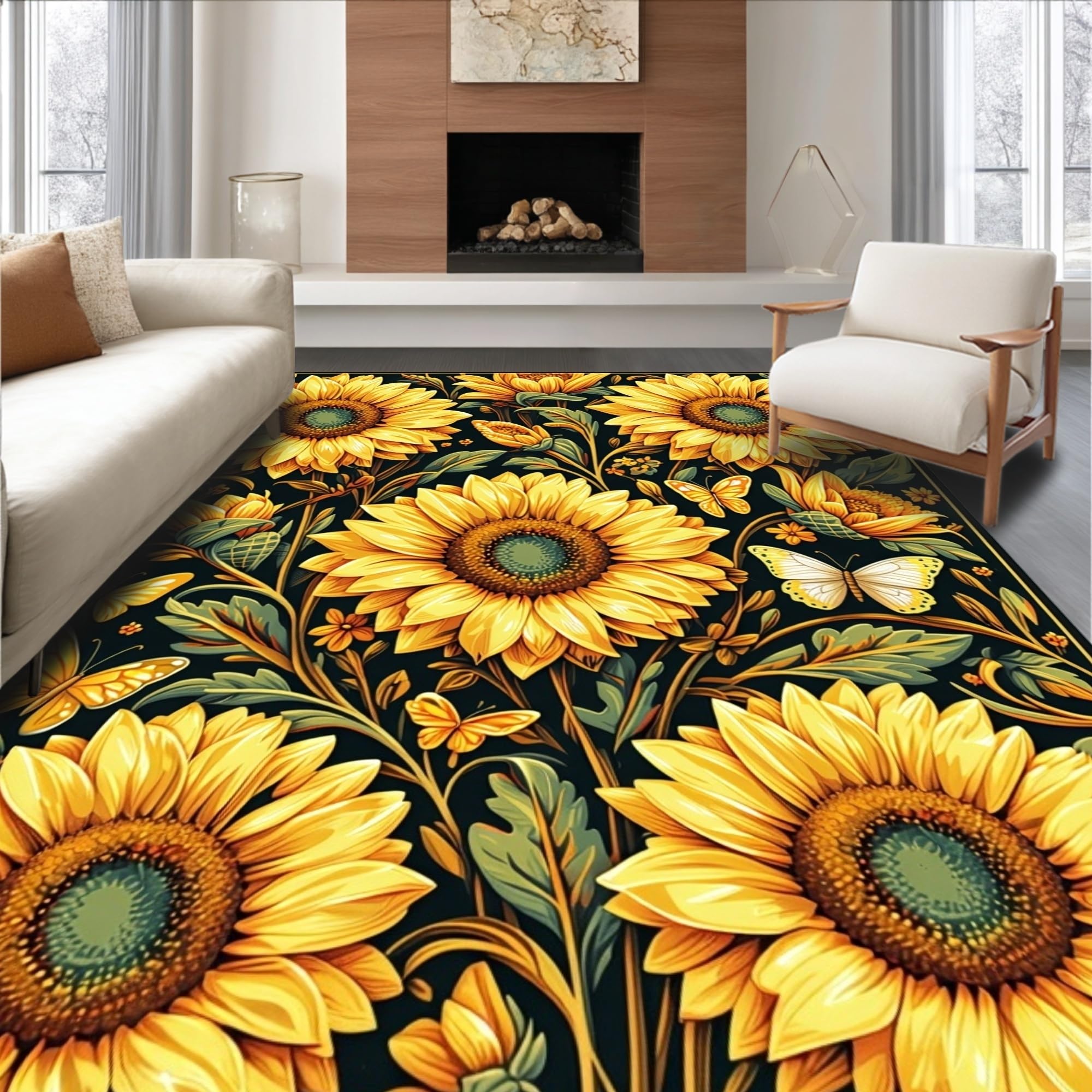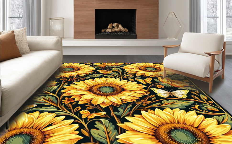 Ultra Soft Area Rug, Non Slip, Stain Resistant, Washable Area Rugs for Living Room, Bedroom, Sophisticated Retro Floral Patterns(Yellow) Overview: