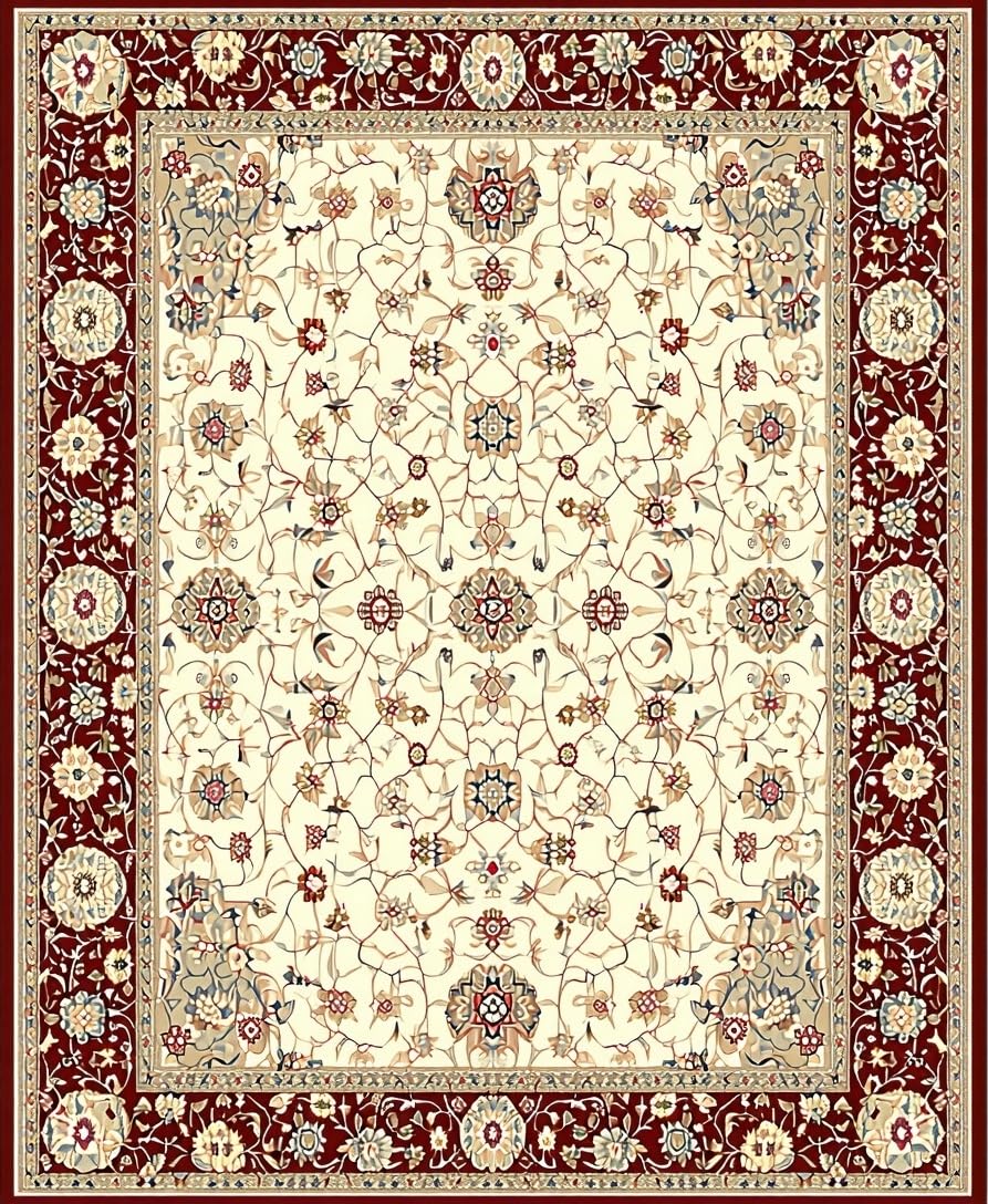Ultra Soft Area Rug, Non Slip, Stain Resistant, Washable Area Rugs for Living Room, Bedroom, Sophisticated Round with Vintage Floral Accents in Earthy Tones(Beige) Overview:
