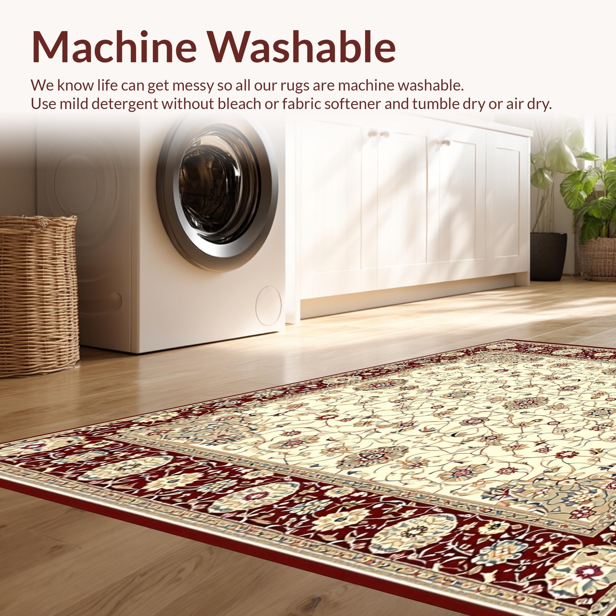 - Machine Washable: Our rugs can be easily thrown in the wash machine.