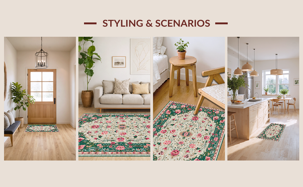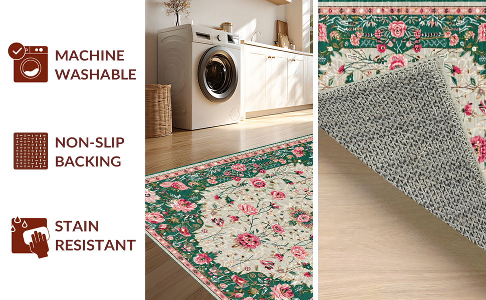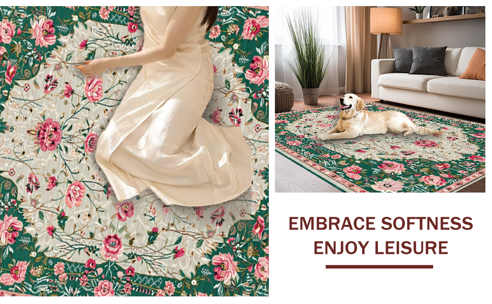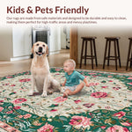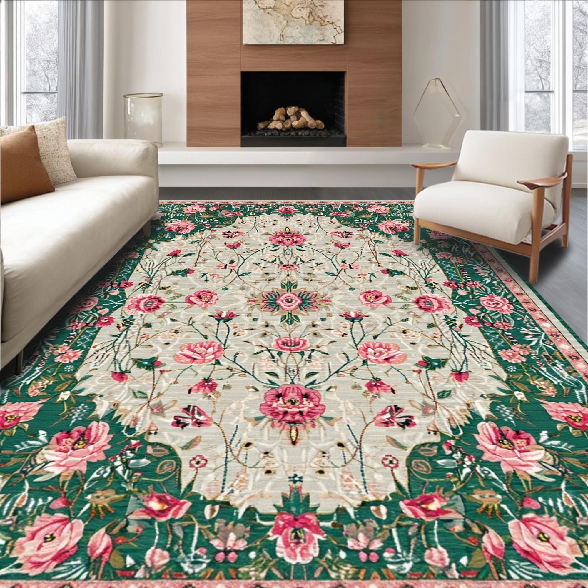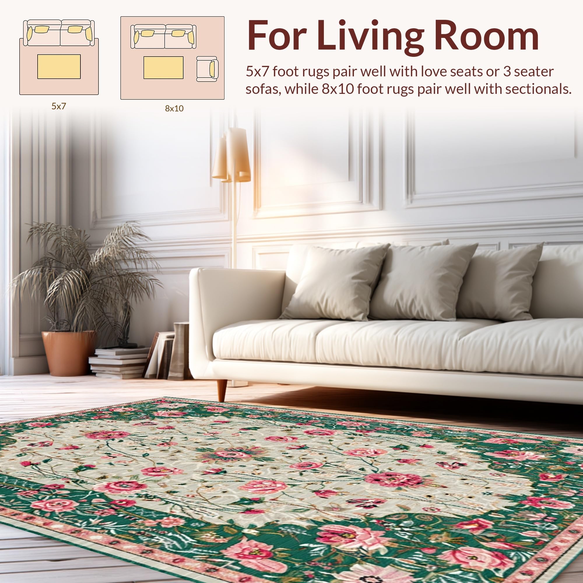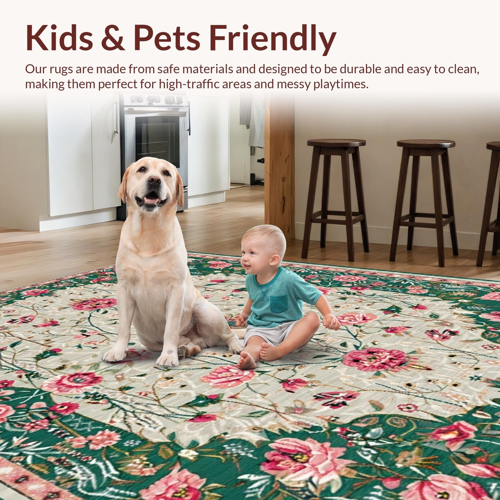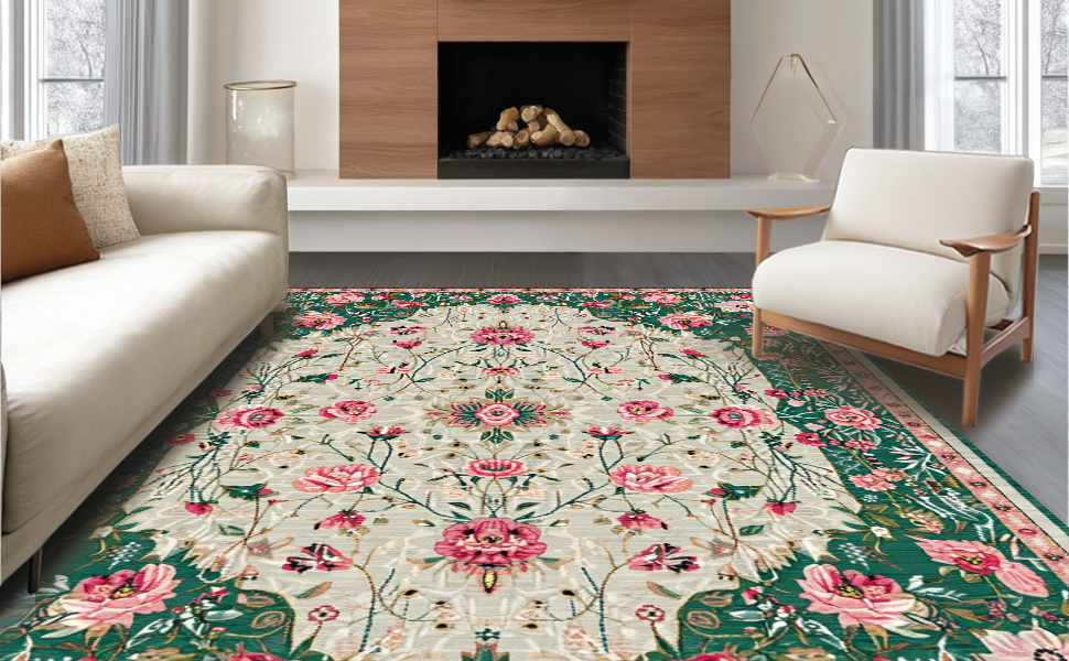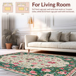 Ultra Soft Area Rug, Non Slip, Stain Resistant, Washable Area Rugs for Living Room, Bedroom, Sophisticated Rustic Blossom Theme(Green) Overview: