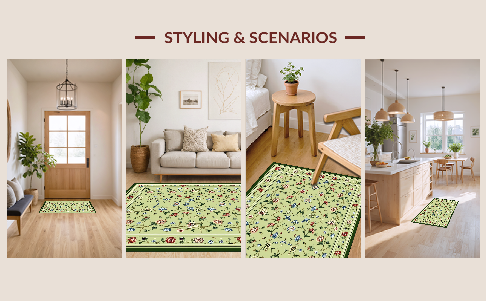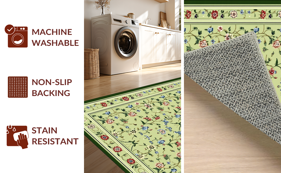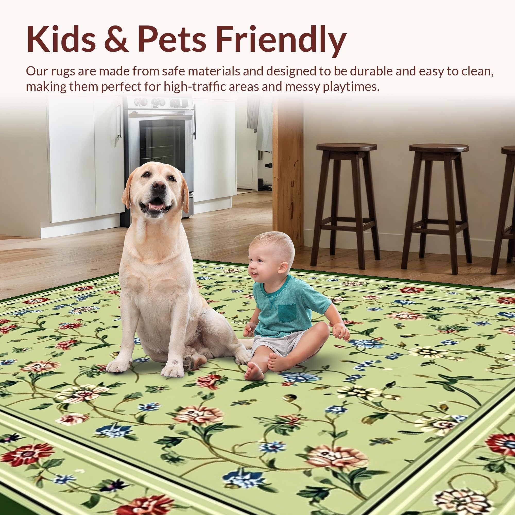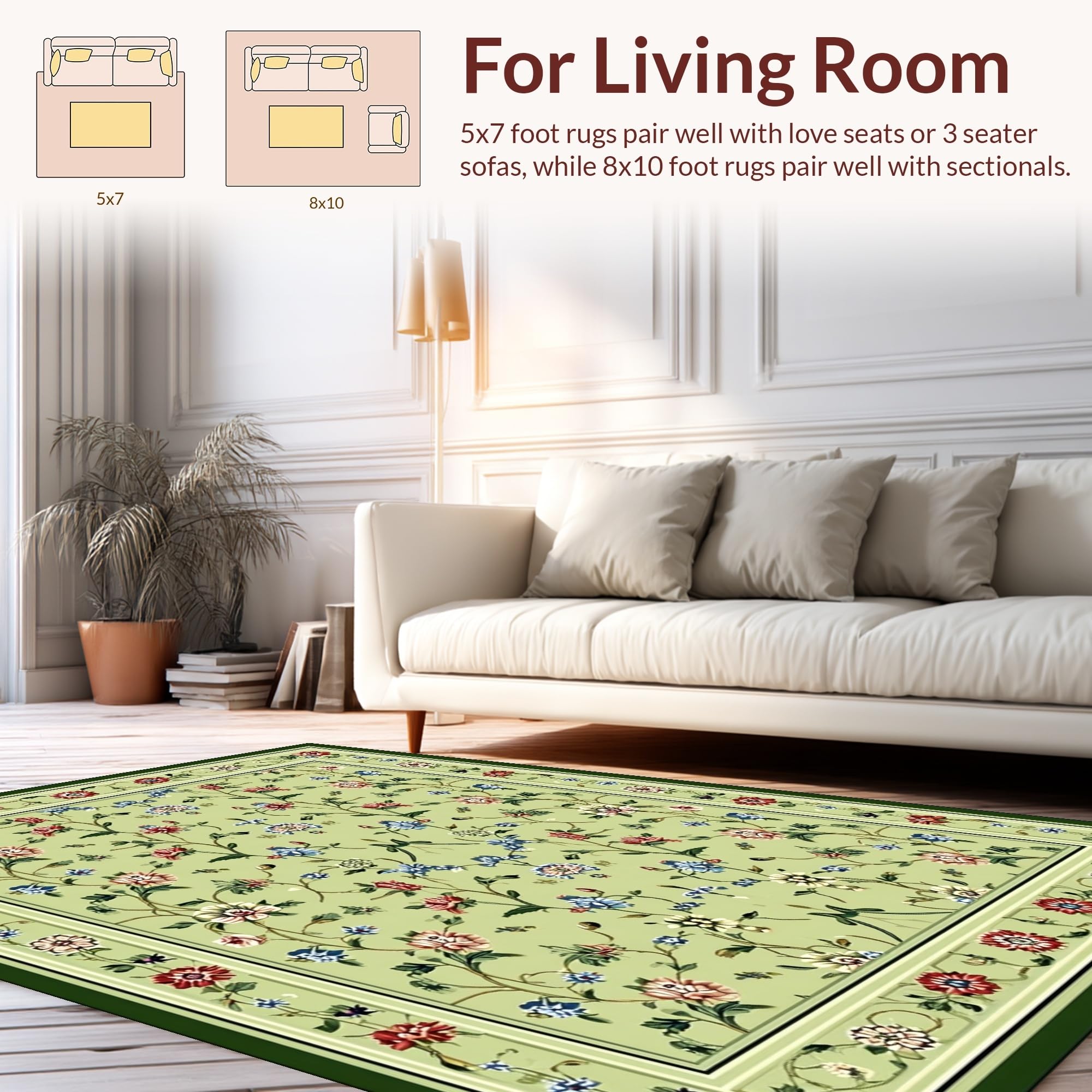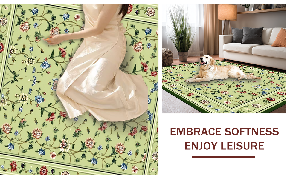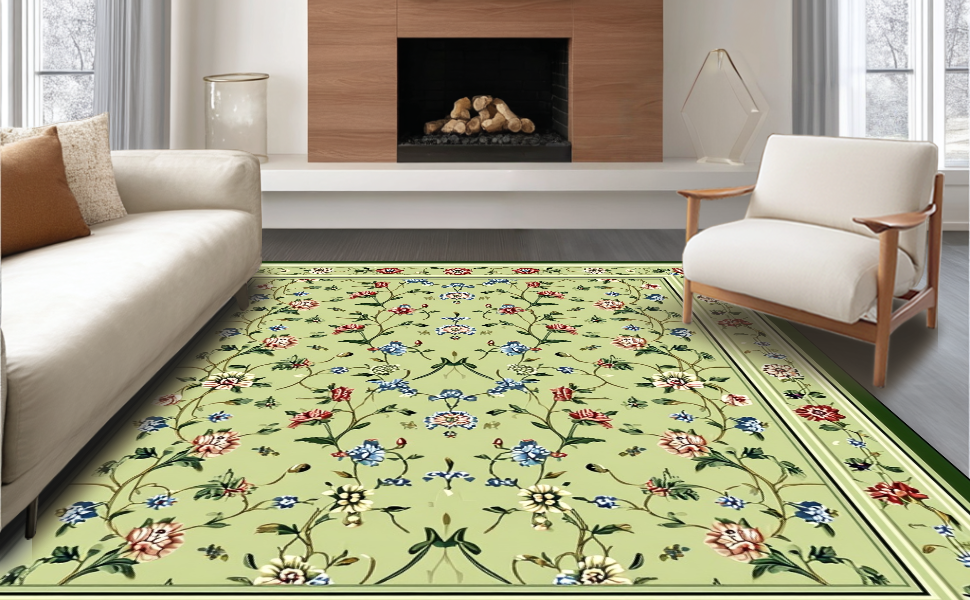 Ultra Soft Area Rug, Non Slip, Stain Resistant, Washable Area Rugs for Living Room, Bedroom, Sophisticated Sage Elegance(Green) Overview: