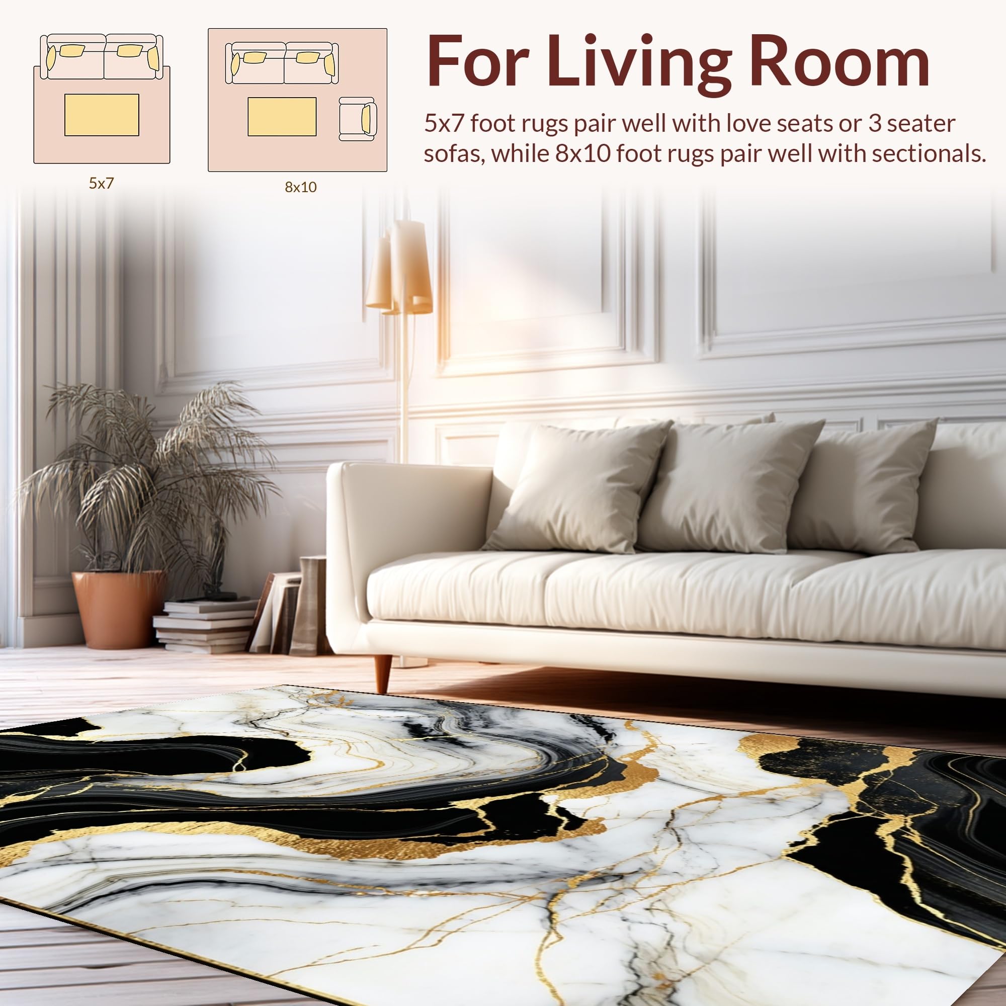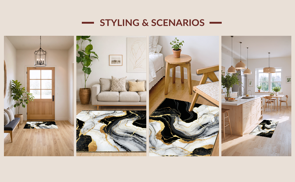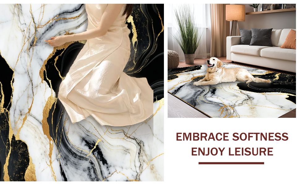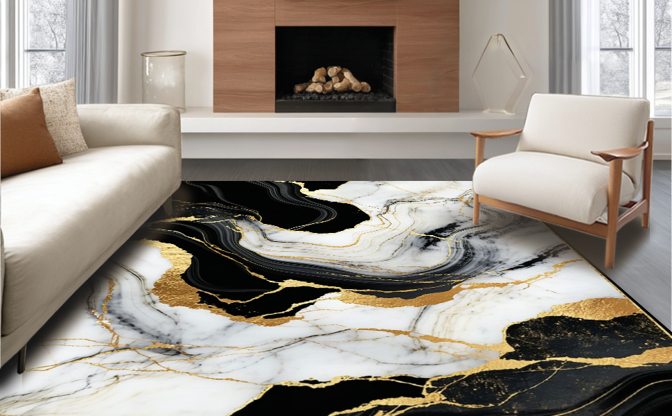 Ultra Soft Area Rug, Non Slip, Stain Resistant, Washable Area Rugs for Living Room, Bedroom, Sophisticated Sleek Color Fusion(Black) Overview: