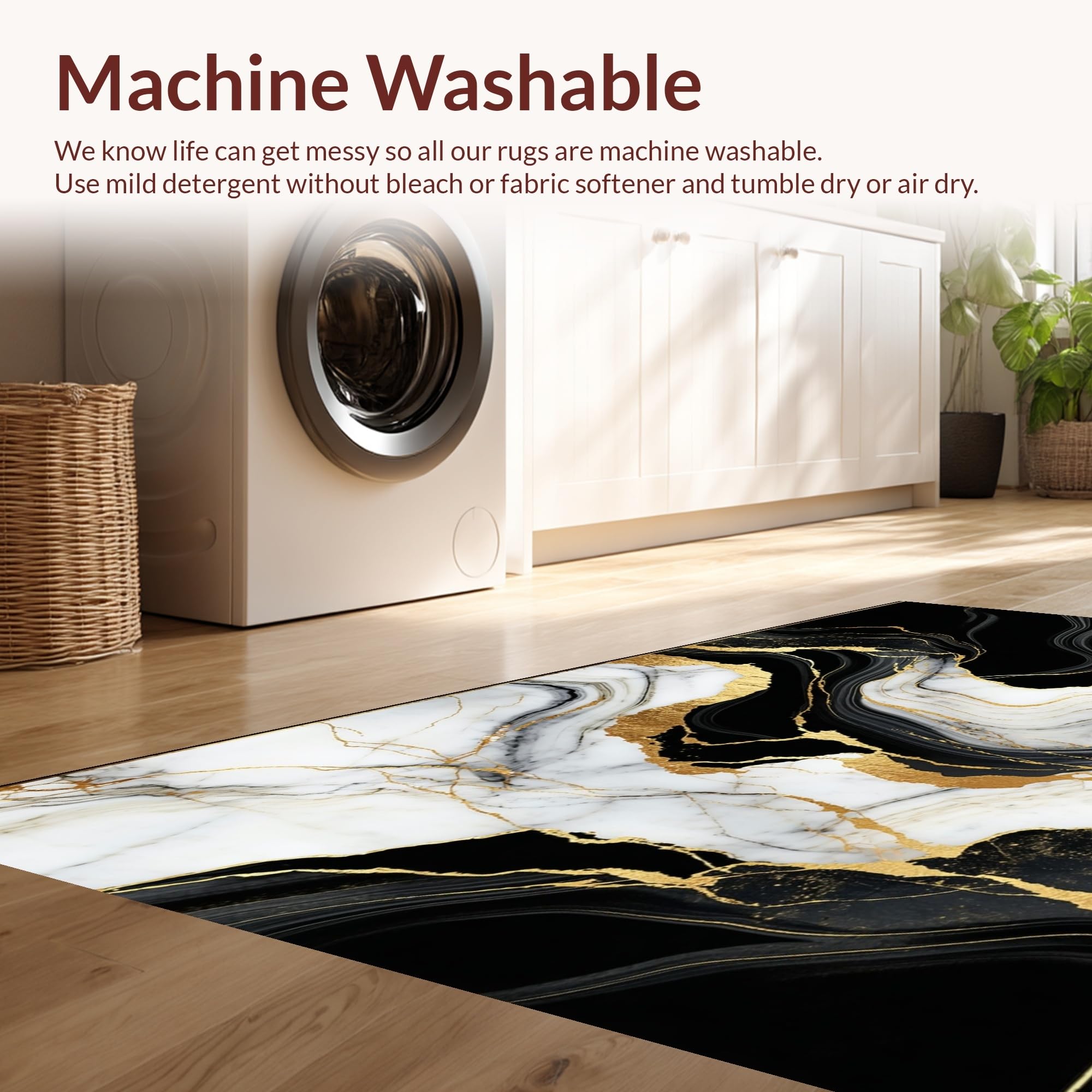 - Machine Washable: Our rugs can be easily thrown in the wash machine.